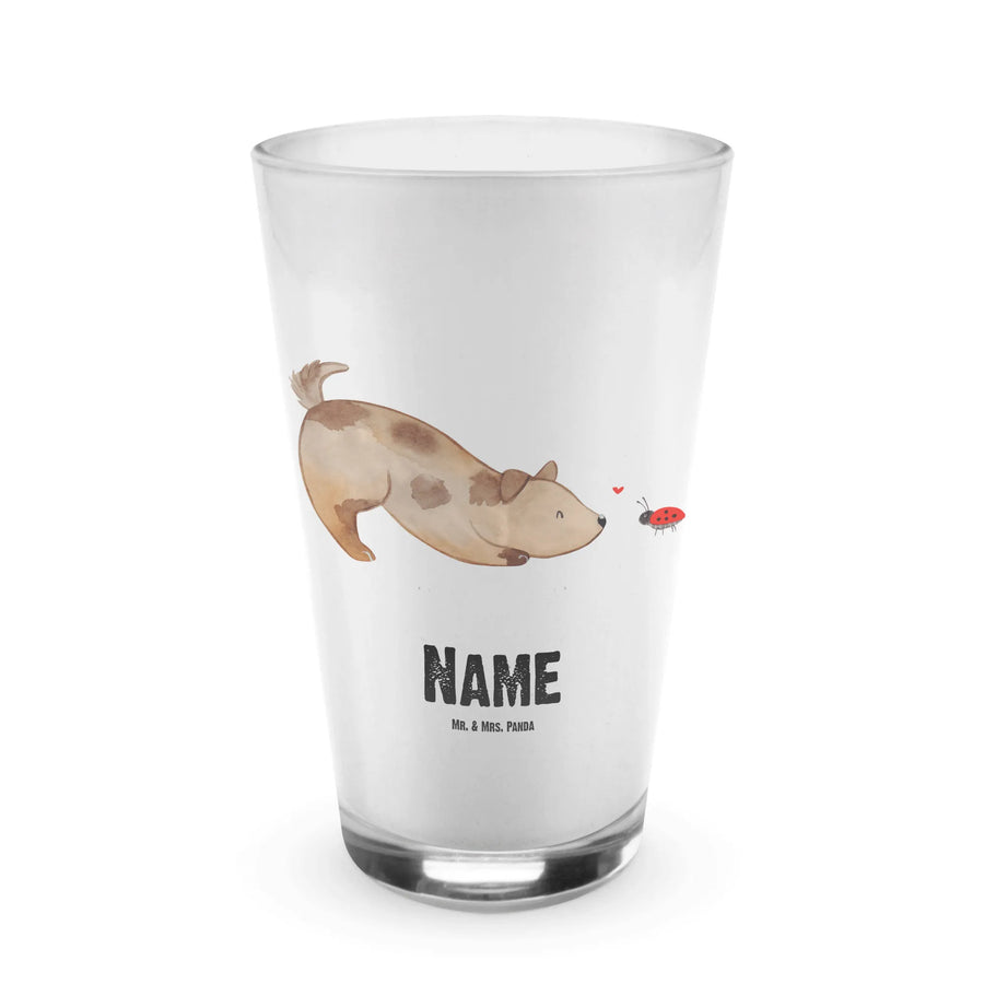 Das personalisierte Glas mit dem niedlichen Hund Marienkäfer aus der Hunde Kollektion von Mr. & Mrs. Panda ist das perfekte Geschenk für jeden Tierliebhaber und Hundebesitzer! Es ist nicht nur ein Trinkglas, sondern auch ein Ausdruck der Liebe zu unserem treuen Begleiter. Das liebevoll gestaltete Motiv zeigt einen fröhlichen Hund, der begeistert vor einem kleinen Marienkäfer sitzt. Ein echtes Highlight für jeden Hundebesitzer!