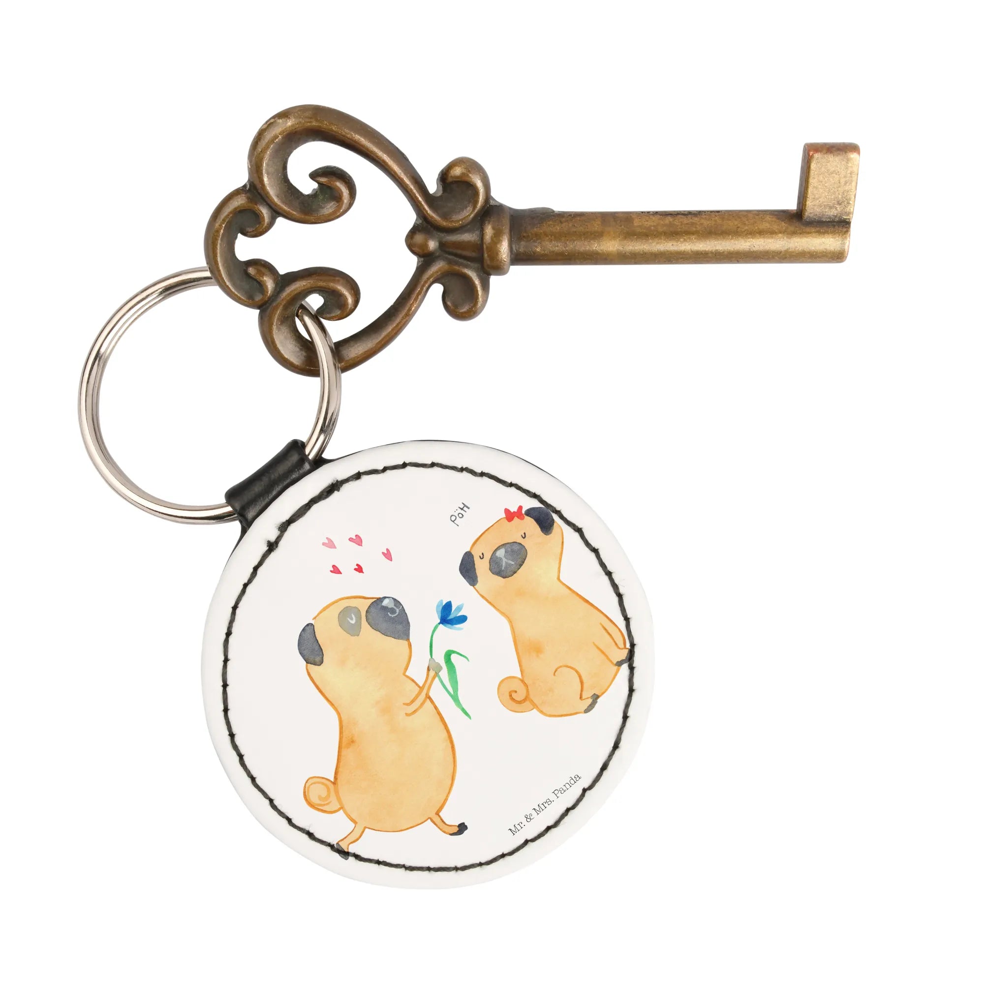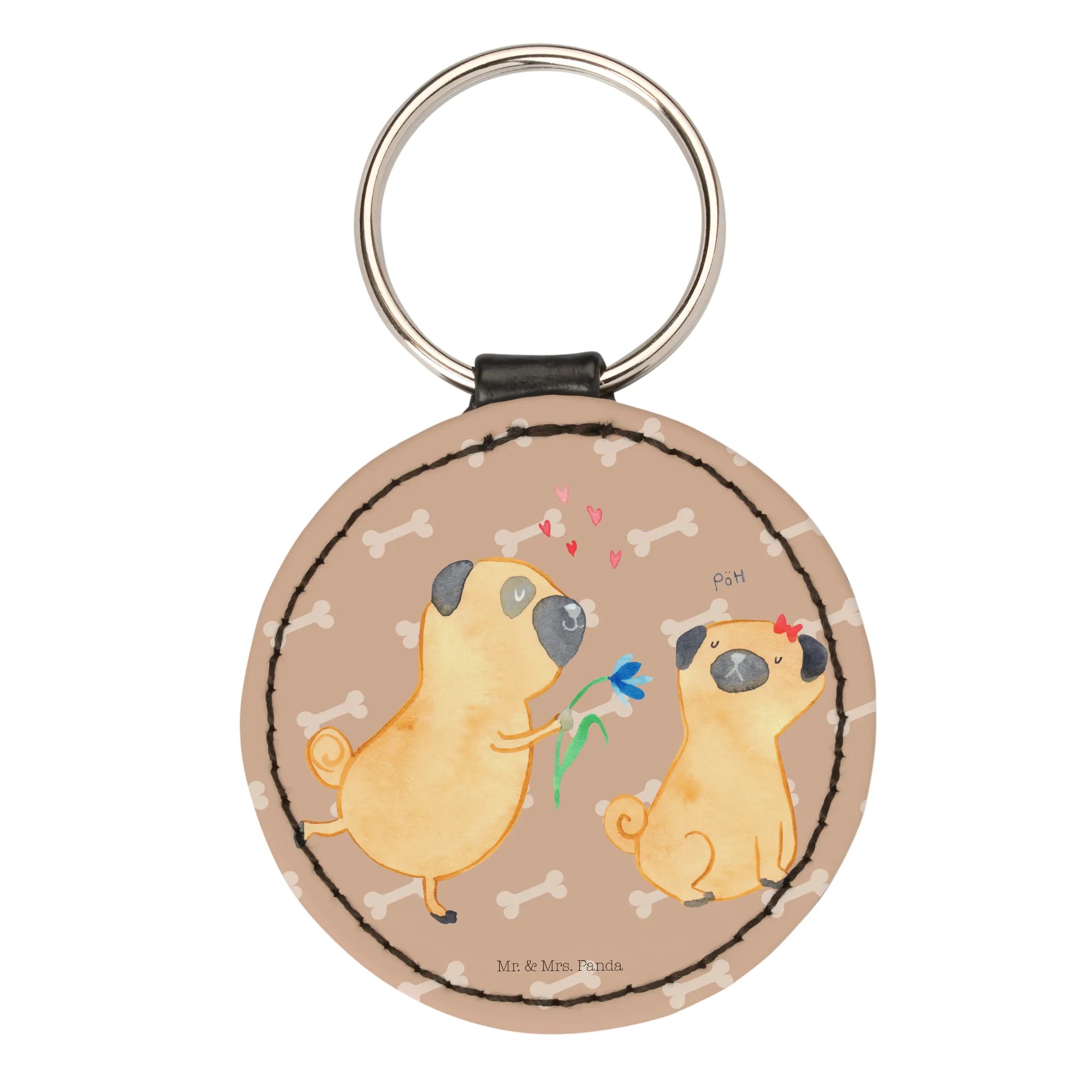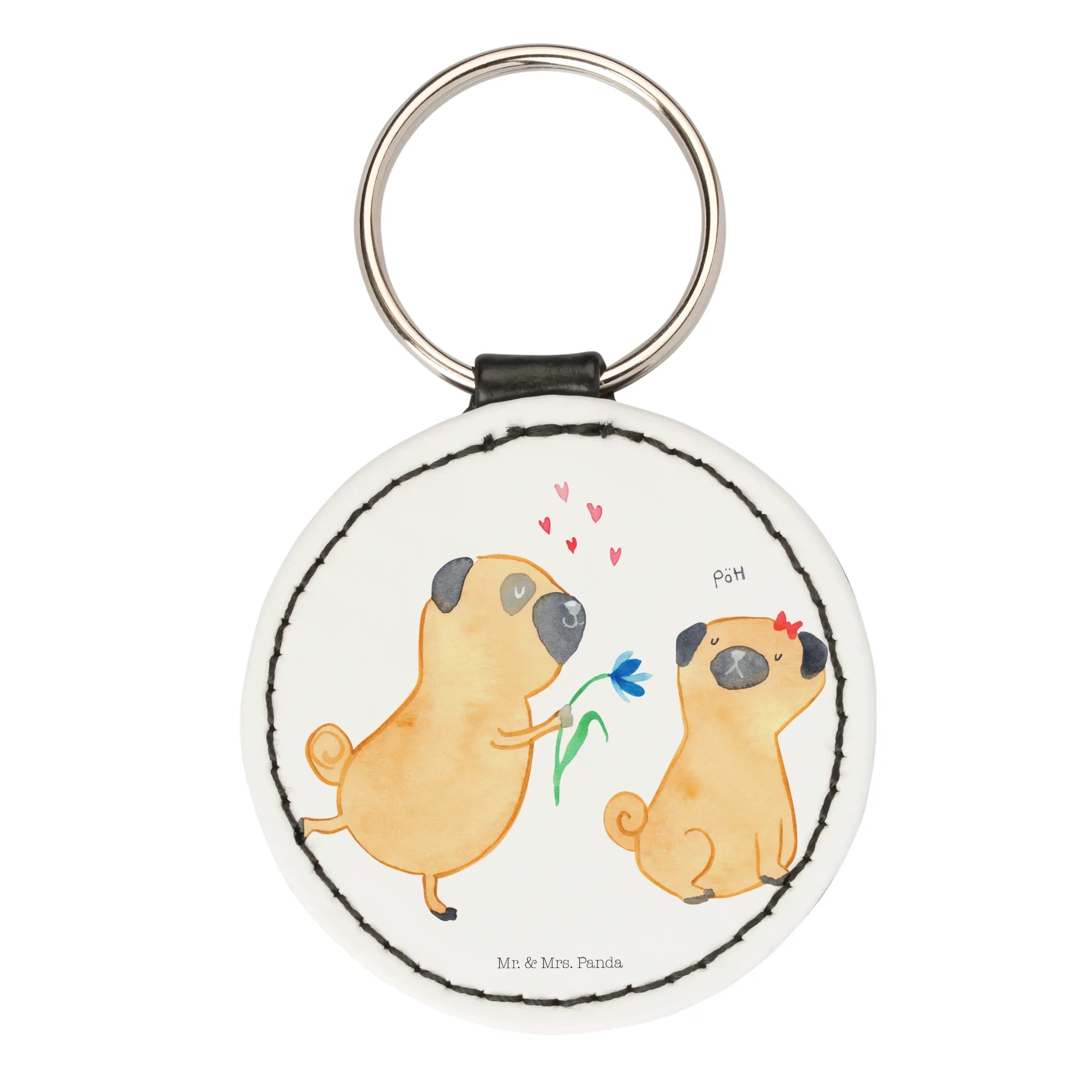 Du suchst nach dem perfekten Geschenk für einen Hundefreund oder Tierliebhaber? Dann ist der Rund Schlüsselanhänger "Mops verliebt" aus der bezaubernden Hundekollektion von Mr. & Mrs. Panda genau das Richtige für dich!