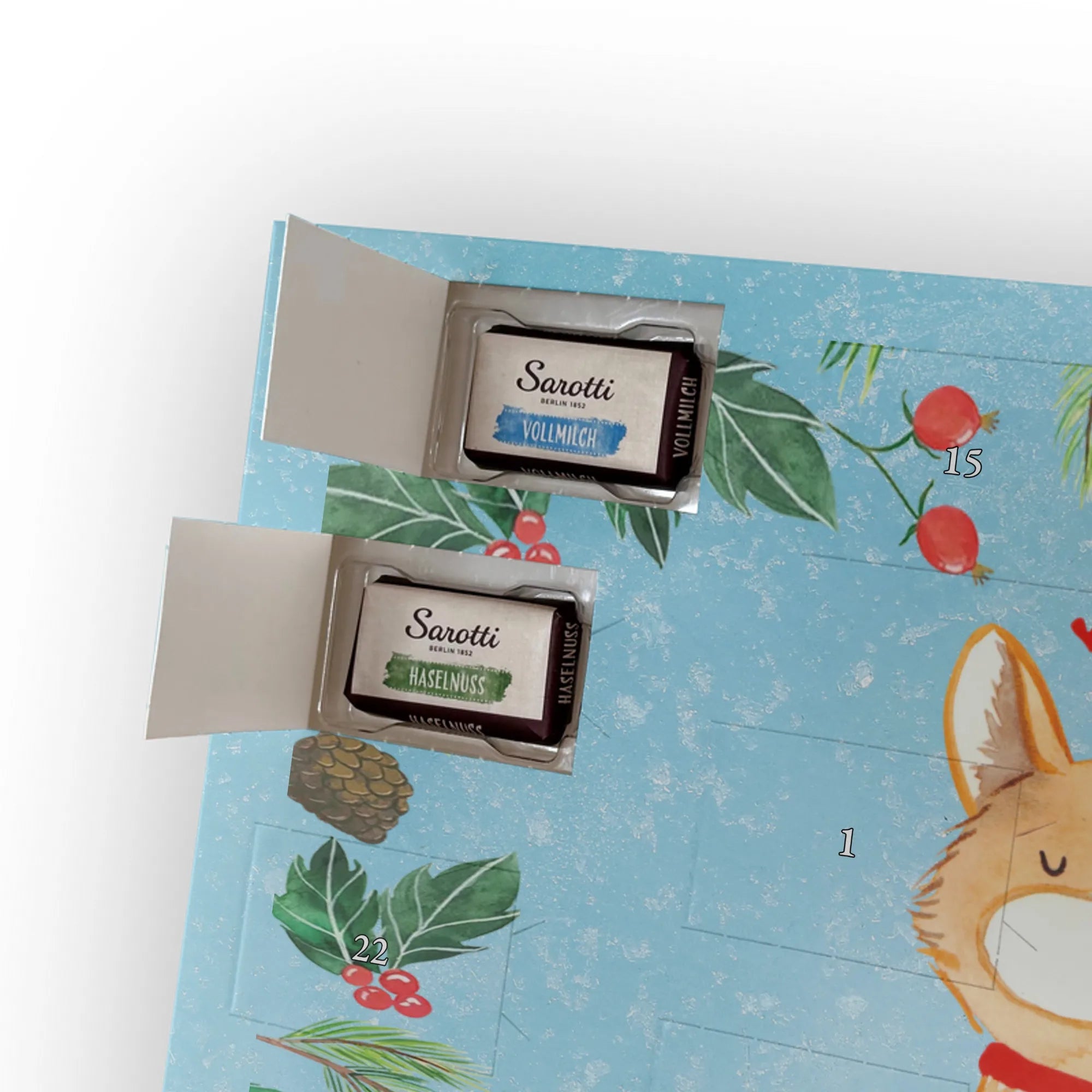 Adventskalender Schokolade von Mr. & Mrs. Panda – eine liebevolle Kombination aus hübschem Design und süßem Inhalt. Der Kalender ist bedruckt mit wunderschönen Motiven & Sprüchen von Mr. & Mrs. Panda und besticht durch brillante Druckqualität mit seidenmatter Oberflächenveredelung. Die Seitenflächen sind ebenfalls bedruckt, wodurch der Kalender rundum ein Hingucker ist. Er ist nicht personalisierbar. Maße: 325 mm x 225 mm x 27 mm. Besonders praktisch: Du kannst ihn sowohl aufgehängt als auch aufgestellt nutzen, je nachdem, wo er bei dir am schönsten wirkt. Gefüllt ist der Kalender mit Ritter Sport Schokowürfeln in verführerischen Sorten – Mousse au Chocolat, Schoko Crisp, Voll-Nuss in Nougatcreme, Karamell Duo, Joghurt und Erdbeer-Joghurt. Wichtiger Hinweis: Es handelt sich um einen Kalender gefüllt mit Ritter Sport Schokolade, nicht um einen Kalender der Marke Ritter Sport. Schenke deinen Liebsten oder dir selbst tägliche Schokoglücksmomente mit diesem charmanten Adventskalender.