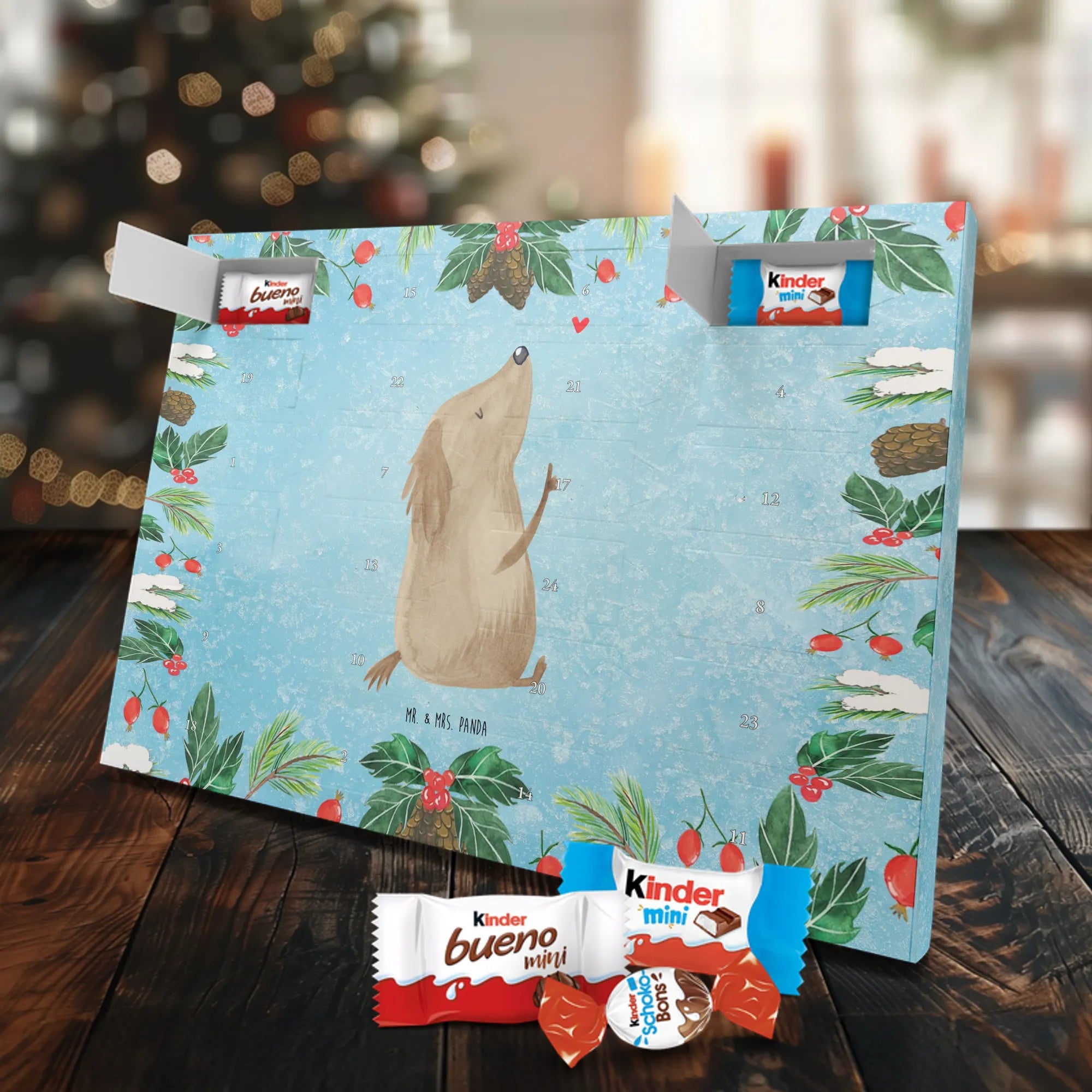 Unser Schokoladen Adventskalender von Mr. & Mrs. Panda bringt Charme und süße Überraschungen in deine Adventszeit. Liebevoll bedruckt mit wunderschönen Motiven & Sprüchen von Mr. & Mrs. Panda, ist dieser Kalender nicht personalisierbar, dafür aber mit hochwertiger Verarbeitung und stimmigem Design. Die brillante Druckqualität mit seidenmatter Oberflächenveredelung verleiht jedem Motiv eine edle Optik, und die bedruckten Seitenflächen runden das Gesamtbild ab. Maße: 355 mm x 245 mm x 11 mm. Eine praktische Besonderheit: kann aufgehängt oder aufgestellt werden – so passt er perfekt in jede Deko. Gefüllt mit Markenname Schokolade: Adventskalender gefüllt mit kinder® Schokolade. Inhalt: kinder® Schoko-Bons, kinder® Bueno mini und kinder® Schokolade mini. Mit 24 kleinen Leckereien hinter den Türchen ist dieser Kalender ideal für Kinder und alle Naschkatzen. Er eignet sich wunderbar als Adventsgeschenk oder als liebevolle Aufmerksamkeit für Kollegen und Freunde. Gönn dir oder anderen eine süße Adventszeit mit diesem bezaubernden Schokoladen Adventskalender!