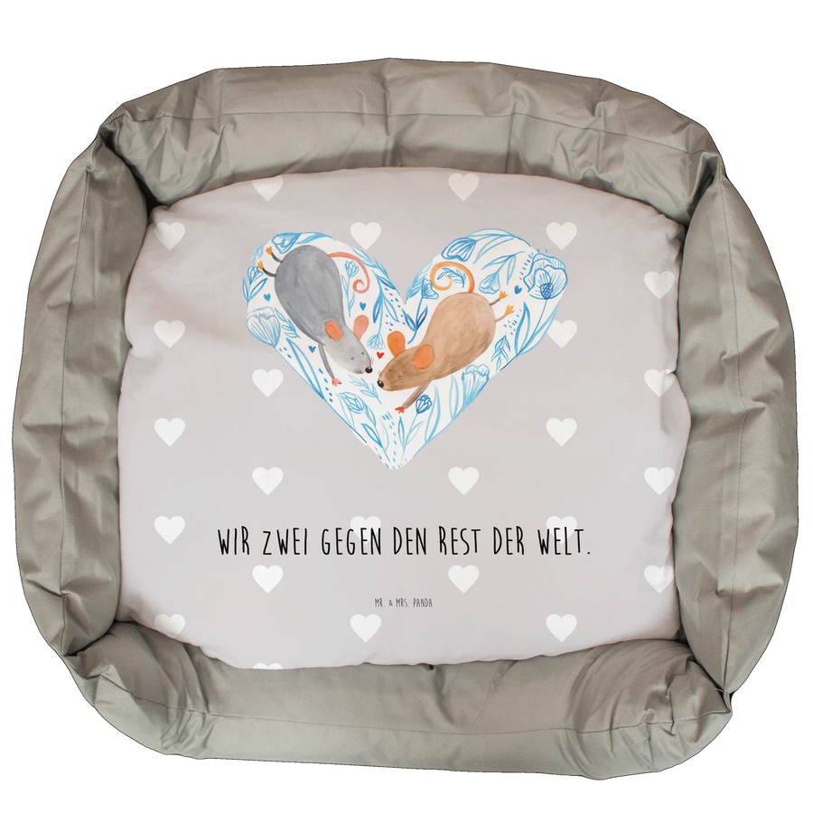 Das Hundebett Mäuse Herz von Mr. & Mrs. Panda ist das perfekte Geschenk für Hundeeltern, die ihren Vierbeinern einen Rückzugsort der besonderen Art bieten möchten. Mit einem liebevoll gestalteten Design, das zwei niedliche Mäuse in Herzform zeigt, bringt dieses Hunde-Accessoire sofort Freude und Behaglichkeit in jedes Zuhause. Die Mäuse sind in sanften Aquarellfarben gehalten, die eine warme und einladende Atmosphäre schaffen.