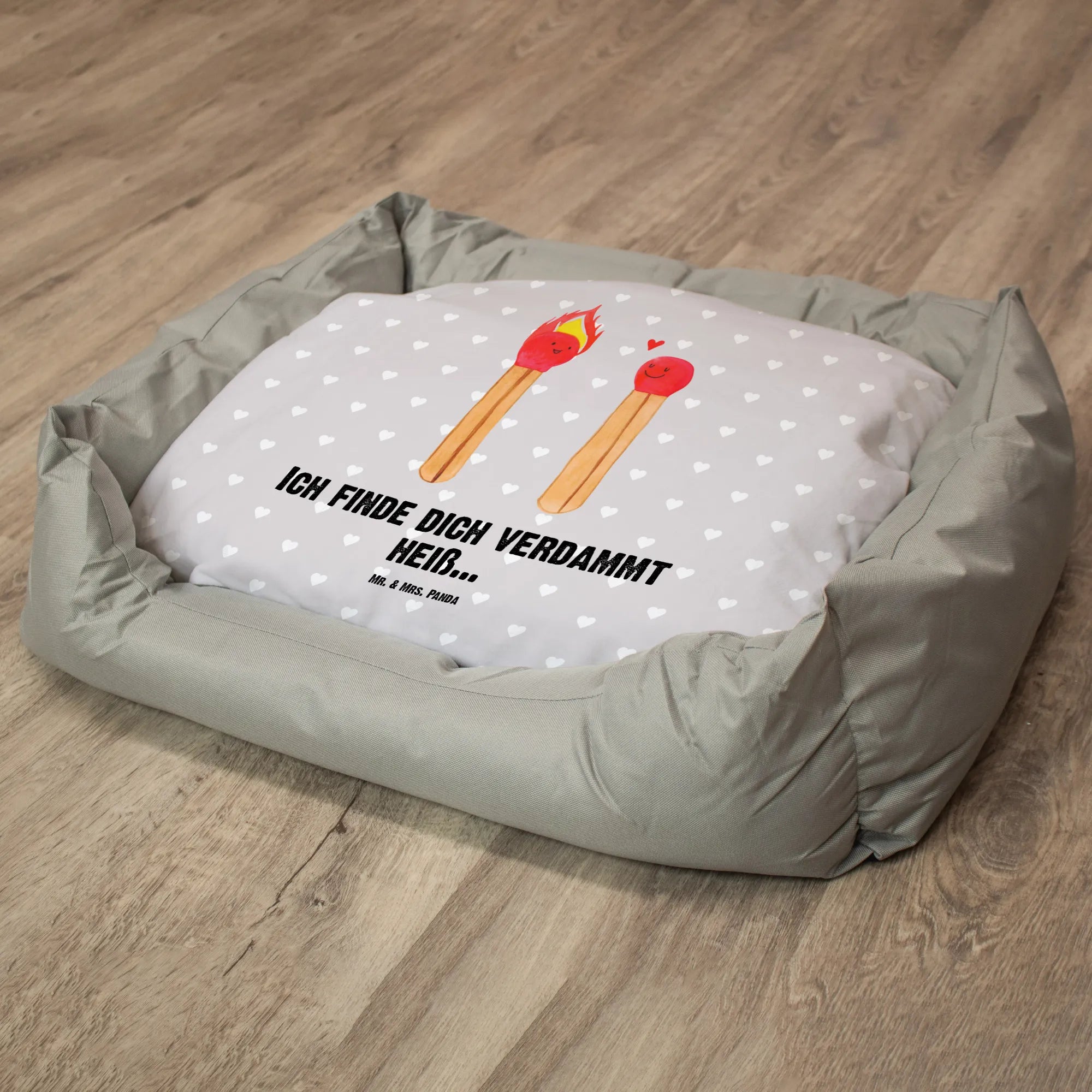 Das perfekte Hundebett von Mr. & Mrs. Panda mit dem bezaubernden Motiv der Streichhölzer ist mehr als nur ein Schlafplatz – es ist ein Rückzugsort voller Liebe und Geborgenheit für deinen treuen Vierbeiner. Mit seiner coolen Darstellung von zwei verliebten Streichhölzern, die lächeln und ein Herz miteinander verbinden, strahlt es Freude und Zuneigung aus.