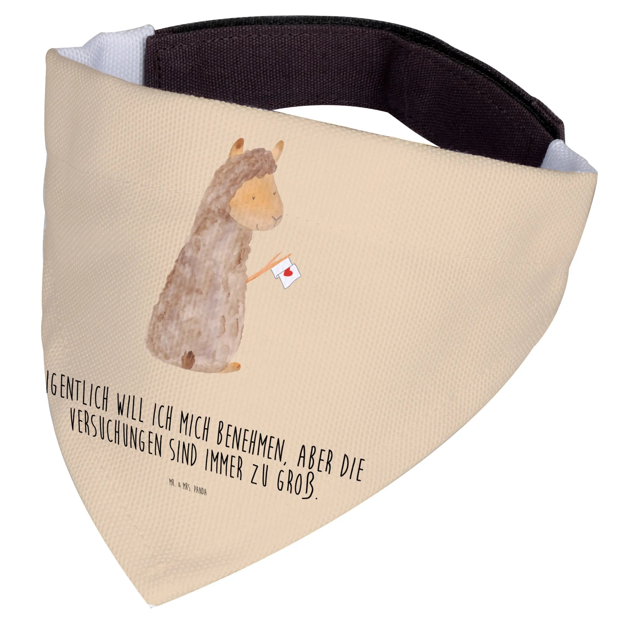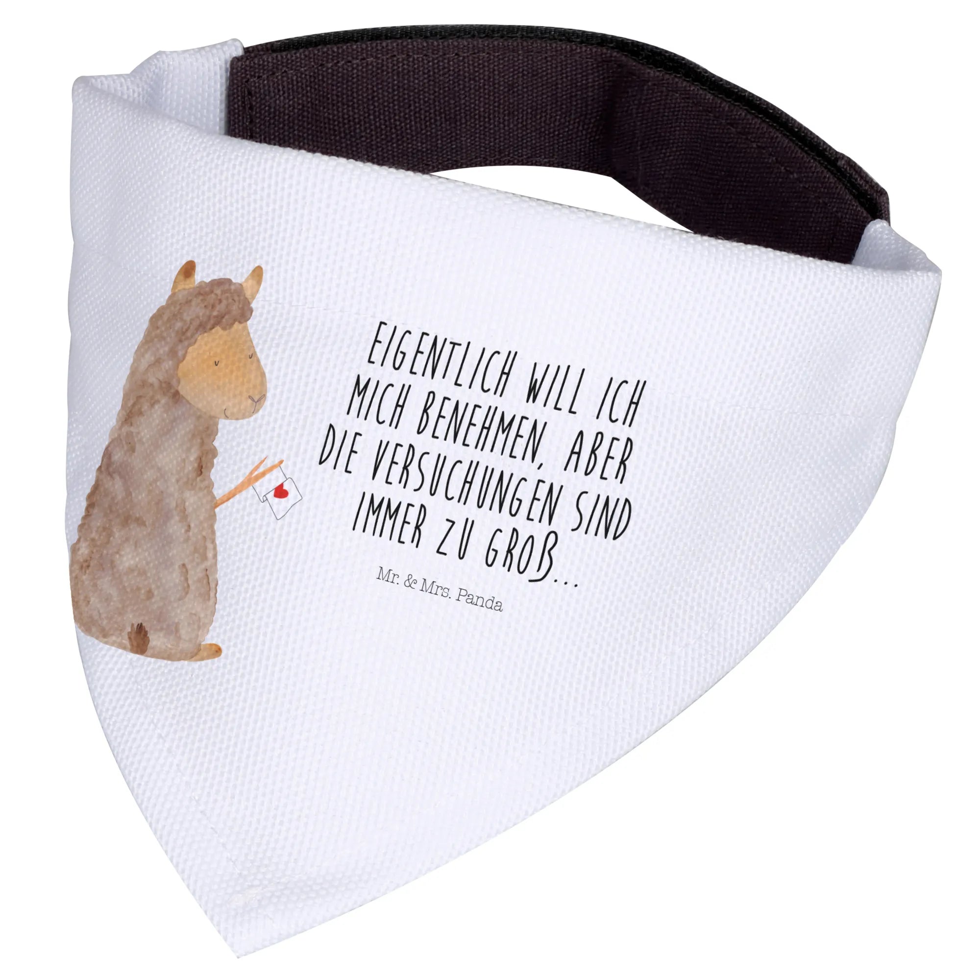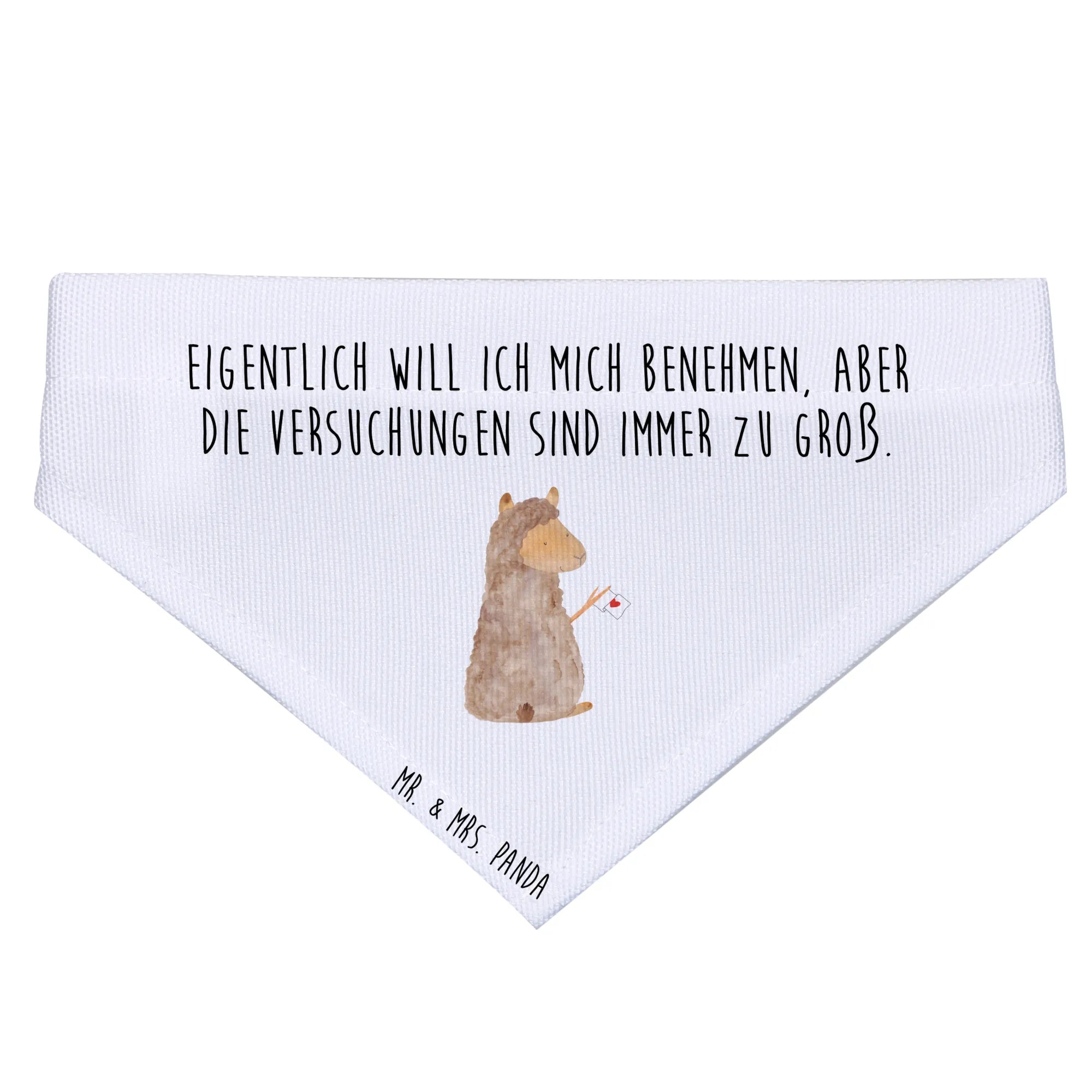 Das Hundehalstuch L mit dem süßen Alpaka-Motiv von Mr. & Mrs. Panda ist das perfekte Accessoire für große Hunde und ihre Besitzer. Egal, ob beim Spaziergang im Park oder bei einem Besuch bei Freunden, mit diesem Halstuch wird dein Vierbeiner garantiert zum Blickfang. Das niedliche Alpaka mit der herzlichen Botschaft ‘Eigentlich will ich mich benehmen, aber die Versuchungen sind immer zu groß’ bringt nicht nur Freude, sondern sorgt auch für viele Lächeln und gesellige Momente.