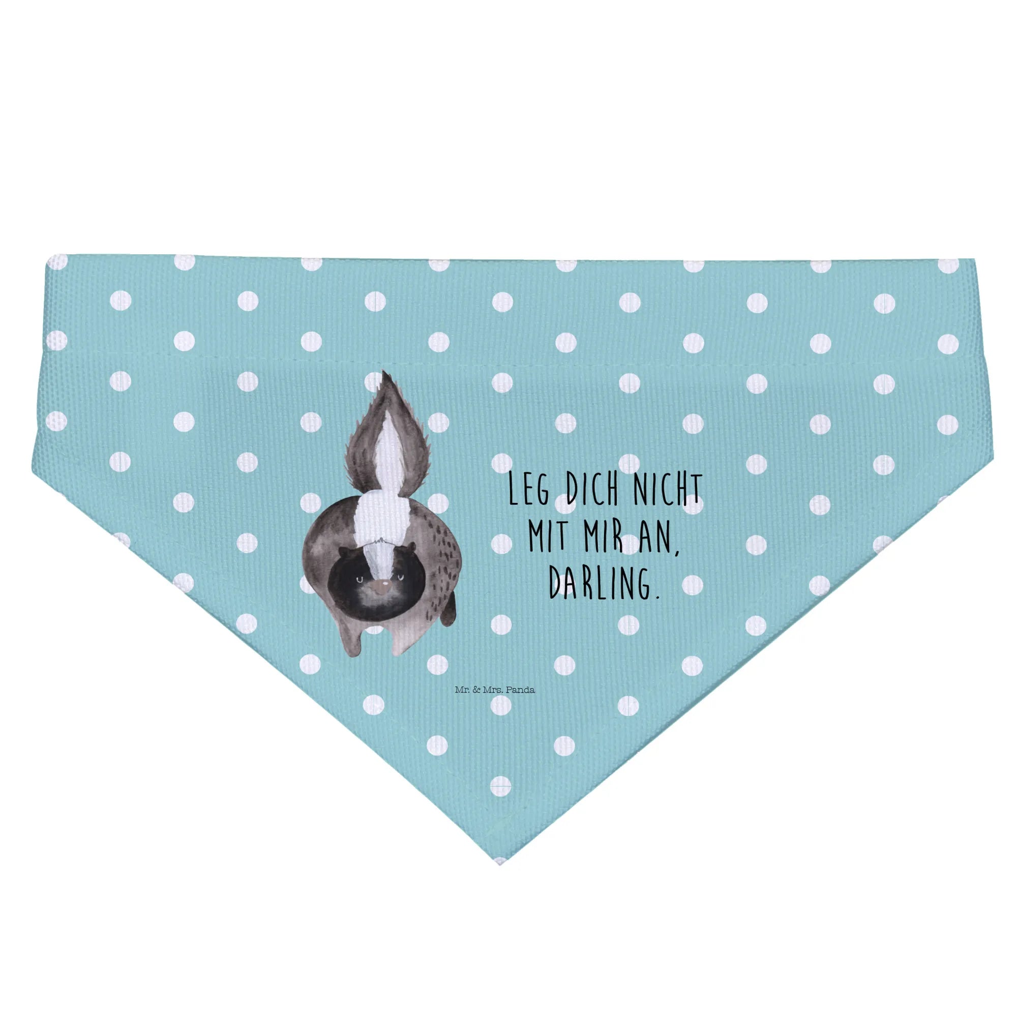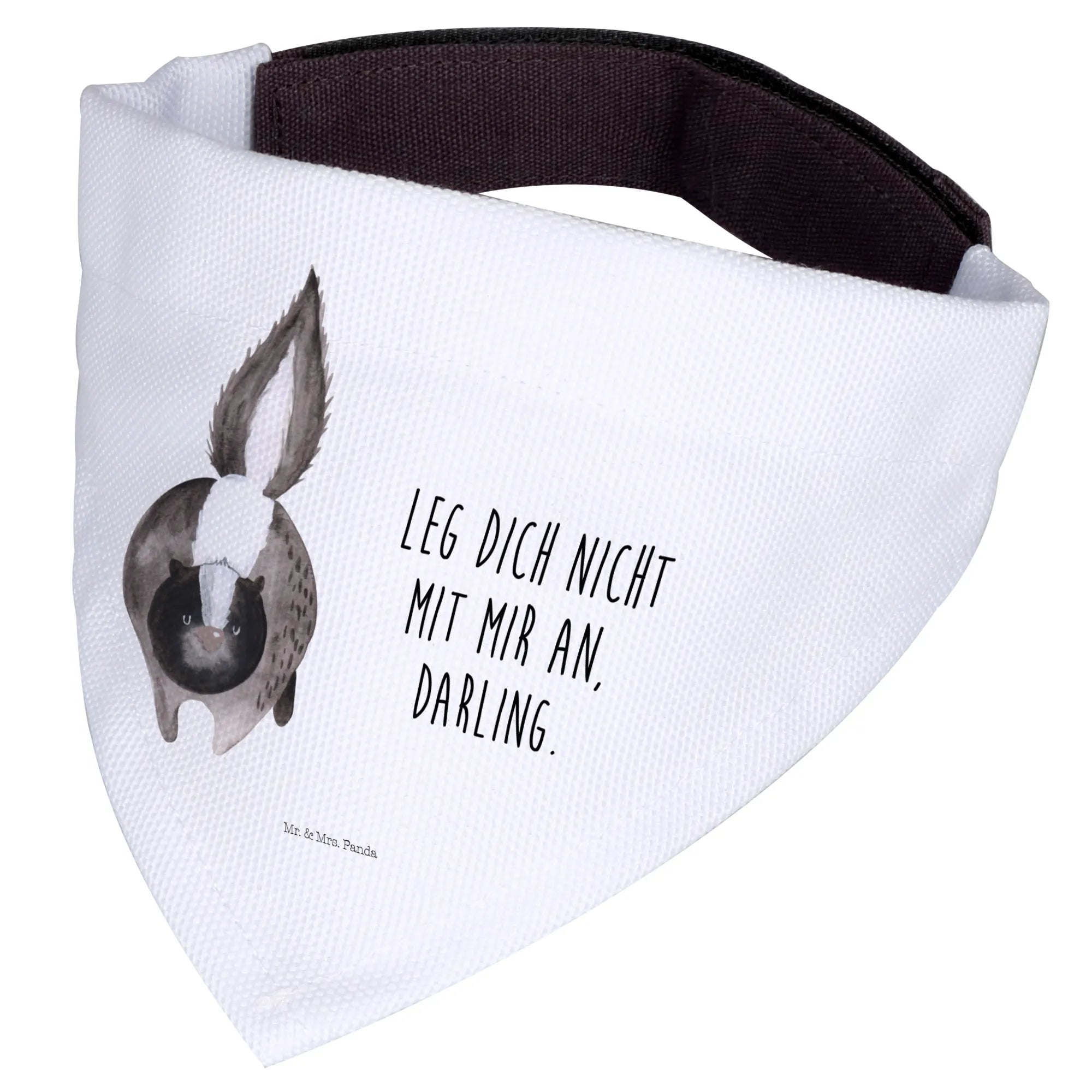 Der besondere Clou: Das niedliche Stinktier-Motiv besticht durch seine liebevolle Aquarellgestaltung und den Spruch 'Leg dich nicht mit mir an, Darling.' Jeder Hund, der dieses Halstuch trägt, wird zum ständigen Mittelpunkt der Aufmerksamkeit! Ideal für Spaziergänge im Park, Hundetreffen oder einfach nur für einen entspannten Tag zu Hause.