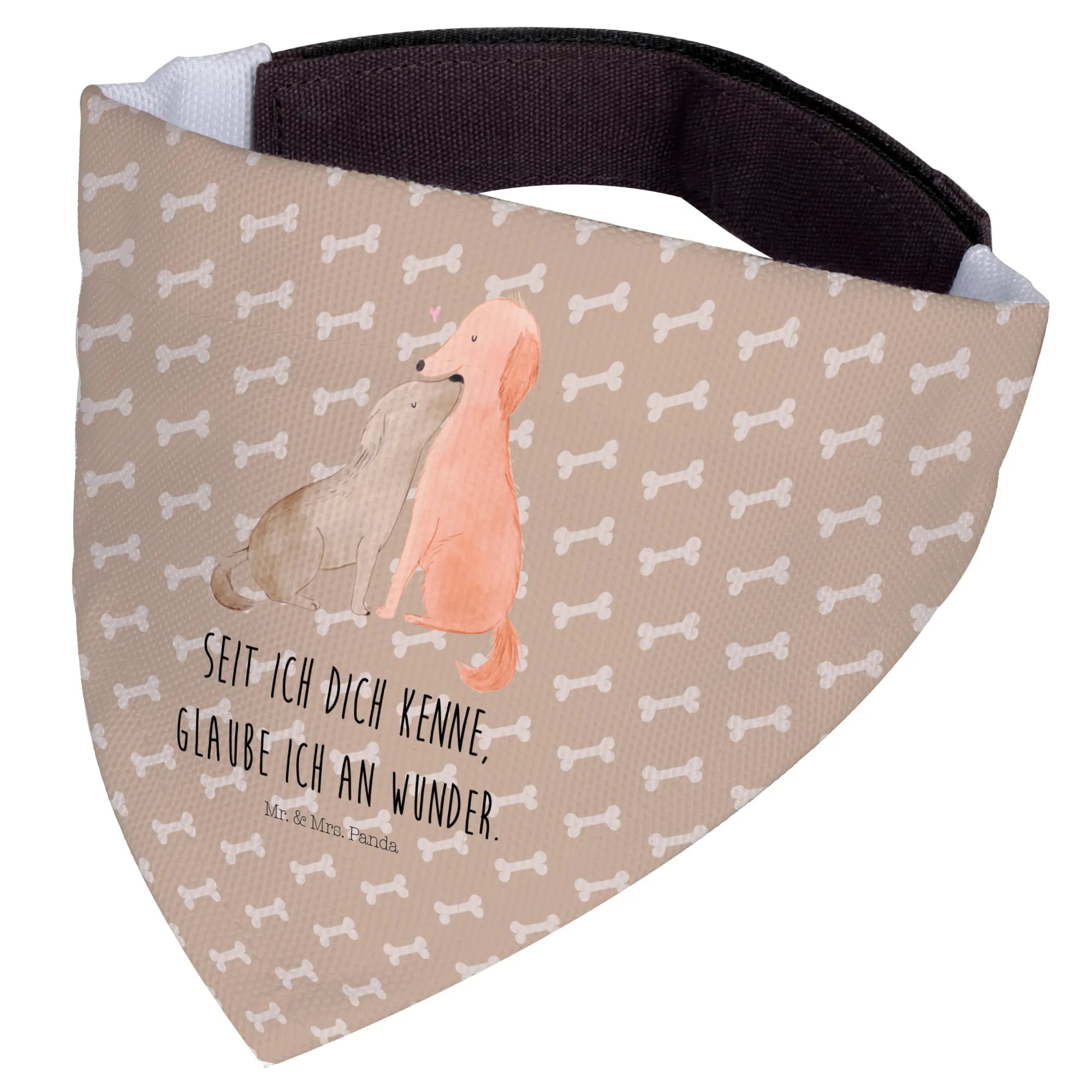 Das Hundehalstuch L mit dem Motiv Hunde Liebe ist das perfekte Geschenk für alle Hundebesitzer und Tierliebhaber. Dieses stilvolle Halstuch wurde mit viel Liebe von Mrs. Panda entworfen und zeigt zwei niedliche Hunde, die eng umschlungen sind – ein wunderbares Symbol für die innige Verbindung zwischen Mensch und Hund.
