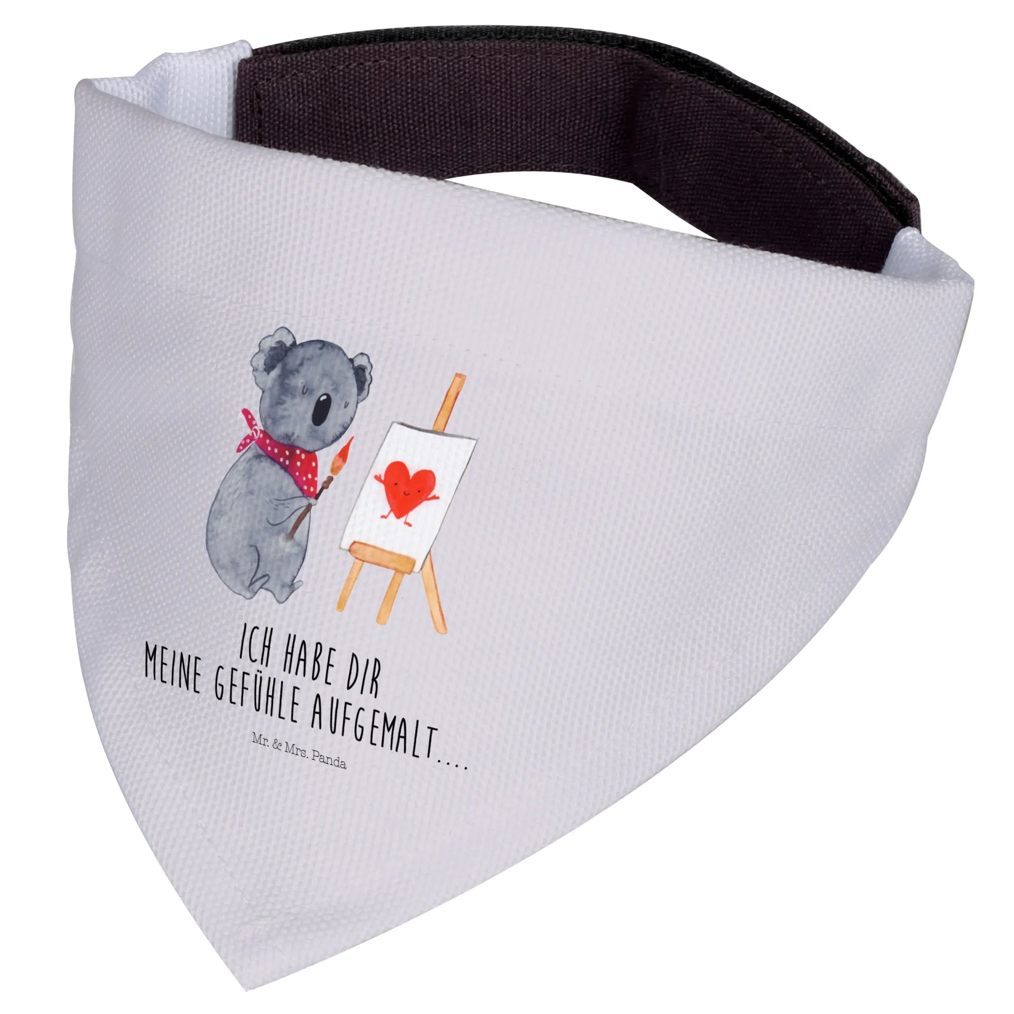 Die sanften Farben und das liebevolle Design machen das Halstuch nicht nur schön, sondern auch total bequem für Deinen Hund. Das Motiv 'Koala Künstler' mit dem Slogan 'Ich habe dir meine Gefühle aufgemalt....' sorgt für viele bewundernde Blicke.