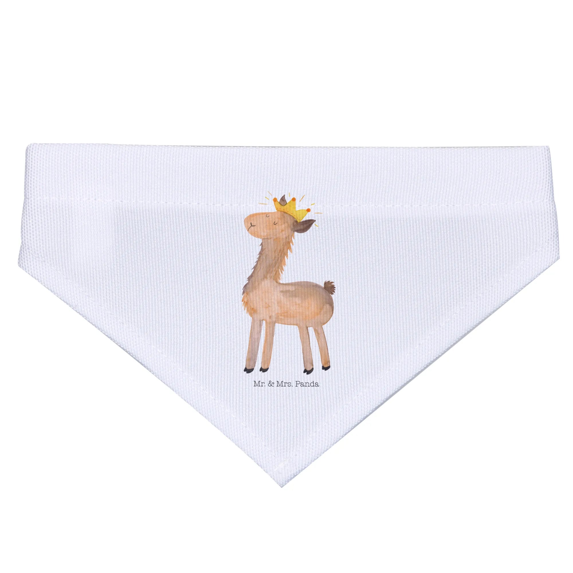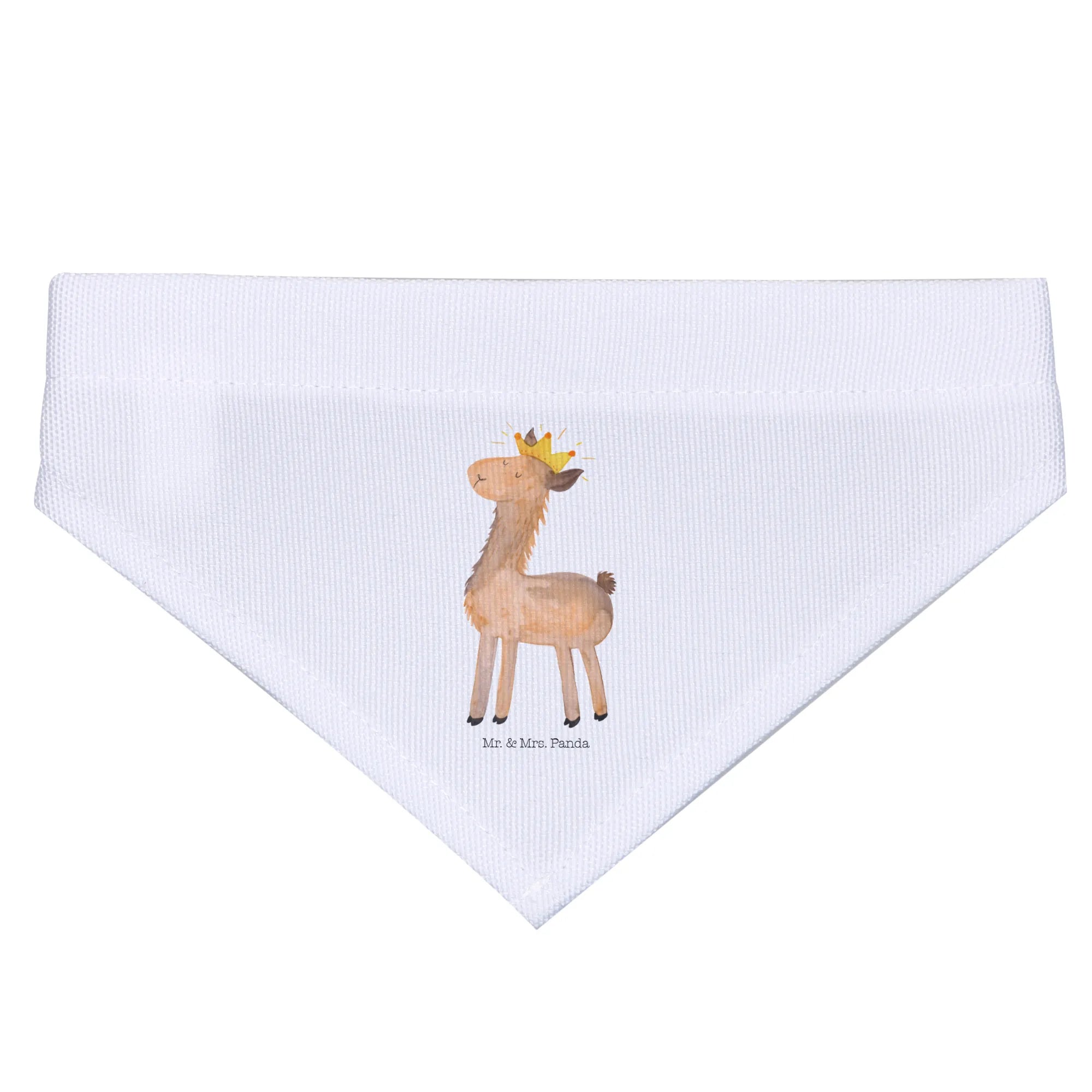 Das Hundehalstuch M mit dem süßen Lama König-Motiv ist das perfekte Accessoire für deinen mittelgroßen Hund! Bei Mr. & Mrs. Panda haben wir die Philosophie, dass jedes Tier ein einzigartiges Wesen ist, und unser Hundehalstuch spiegelt genau das wider. Es wurde speziell für alle Lamas-Liebhaber gestaltet und bringt die coole und trendige Ausstrahlung verspielter Lamas direkt zu deinem Liebling. Das Tuch ist nicht nur schön, sondern auch funktional. Es schützt den Hals deines Hundes und verleiht ihm einen charmanten Look für alle Anlässe.
