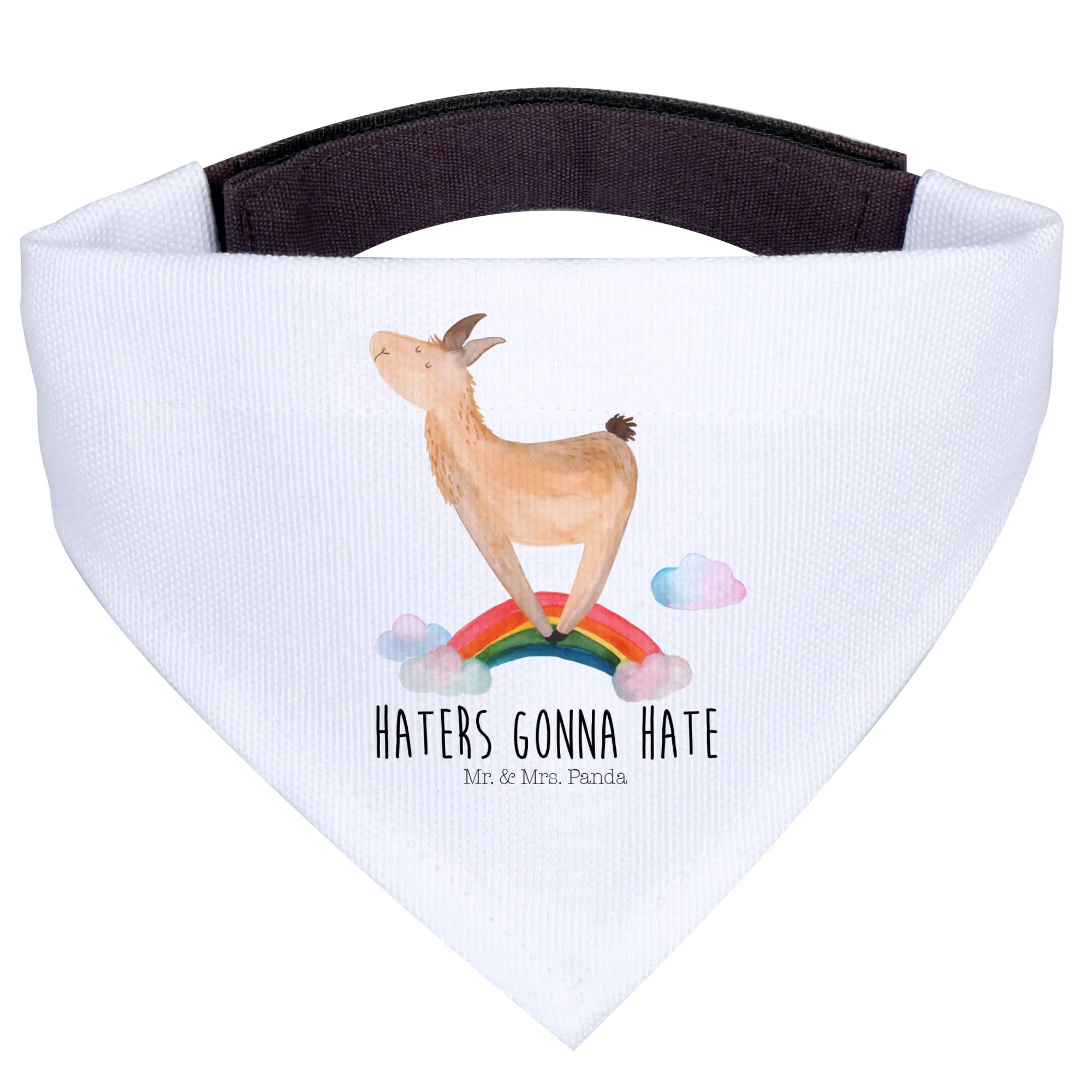 Das praktische Design sorgt dafür, dass das Halstuch leicht anzulegen und verstellbar ist. Der fröhliche Lama-Regenbogen sorgt für gute Laune und macht Deinen Hund zum Hingucker im Park! Damit ziehst Du nicht nur alle Blicke auf Dich, sondern zeigst auch, dass Du ein Herz für die coolsten Tiere der Welt hast. Die liebevollen Motive aus der Lama-Kollektion von Mr. & Mrs. Panda sind mit einer Portion Humor gestaltet, die jeder sofort erkennt. Wenn Du also auf der Suche nach einem einzigartigen Geschenk für einen Hundeliebhaber bist, dann ist dieses Hundehalstuch die perfekte Wahl.