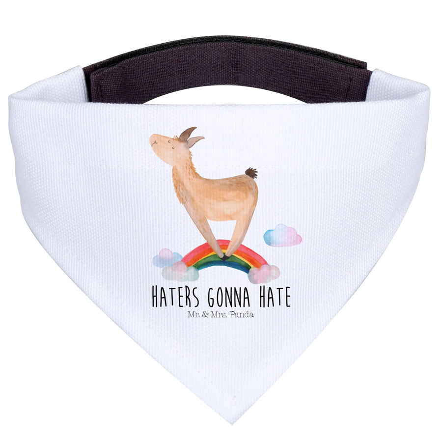 Das Hundehalstuch L mit dem bezaubernden Lama Regenbogen Motiv aus unserer exklusiven Lama-Kollektion ist das perfekte Geschenk für alle Hundebesitzer, die eine besondere Vorliebe für Fabelwesen und fröhliche Designs haben! Unser Halstuch ist nicht nur ein stylisches Accessoire für große Hunde, sondern auch ein Ausdruck von Individualität und einem kleinen Augenzwinkern im Alltag. Farbig, lebensfroh und mit dem stylishen Spruch "Haters gonna hate" verleiht es Deinem Vierbeiner einen charmanten Auftritt.