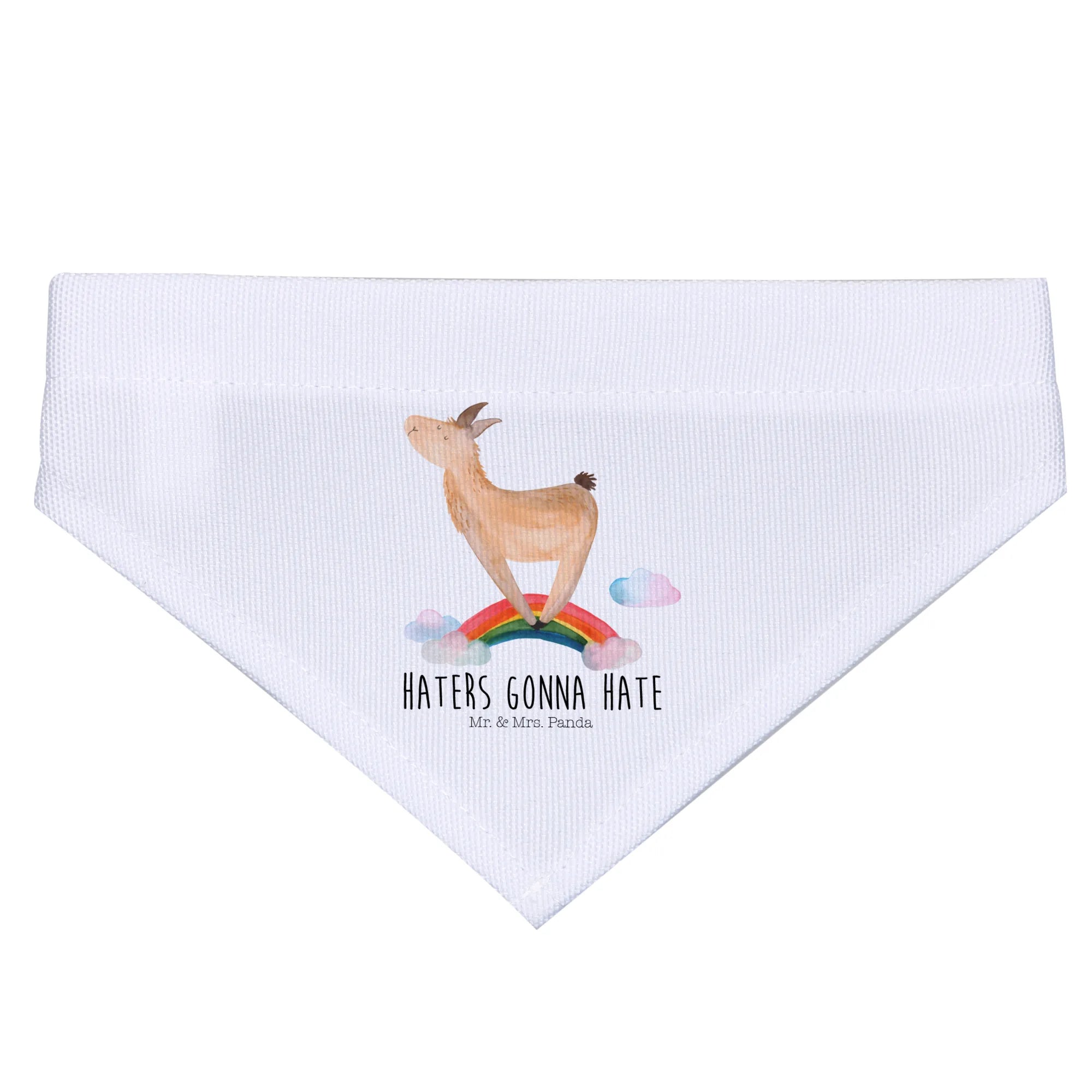 Das Material ist zudem pflegeleicht und kann problemlos gewaschen werden, sodass du lange Freude an diesem tollen Produkt hast. Und ganz gleich, ob dein Hund ein wahrer Außenseiter oder ein verspielter Abenteurer ist, er wird in diesem Halstuch seine Freiheit und seinen individuellen Stil zeigen. Es ist die perfekte Kombination aus Funktionalität und Stil. Verschenke ein Stück Freiheit und Freude mit dem Lama Regenbogen Halstuch und lass deinen Hund in den Mittelpunkt der Aufmerksamkeit treten. Ein Halstuch, das Liebe ausstrahlt und mit dem motto "Haters gonna hate" jedem Kind und Erwachsenen ein Lächeln aufs Gesicht zaubert!