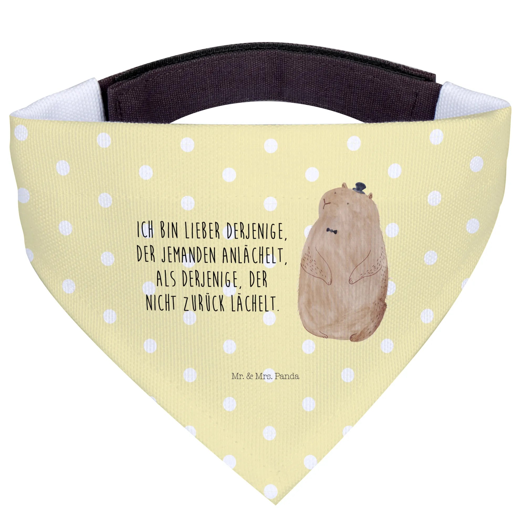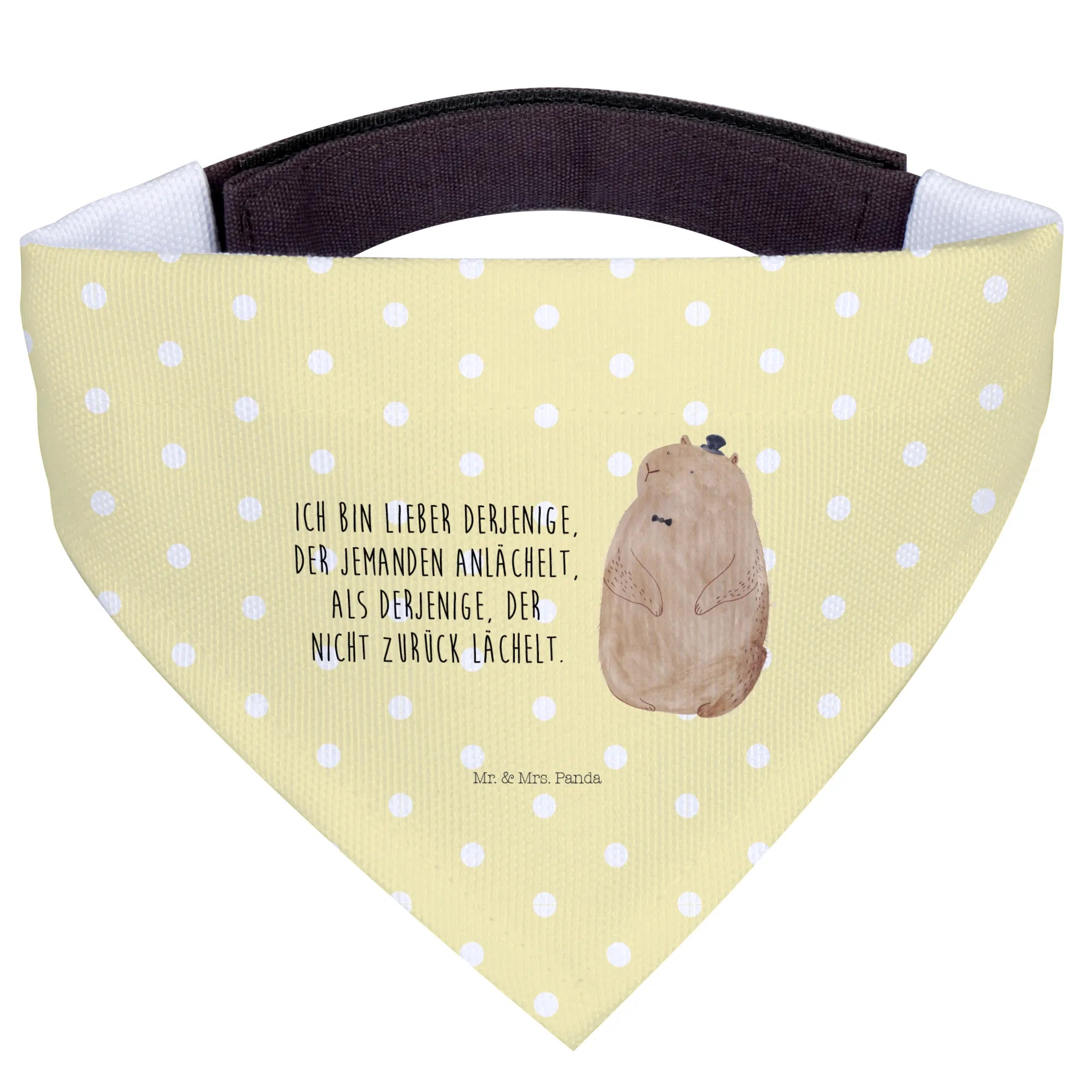 Der Spruch ‘Ich bin lieber derjenige, der jemanden anlächelt, als derjenige, der nicht zurück lächelt’ passt perfekt zu diesem fröhlichen Halstuch und wird sicher auch dich zum Schmunzeln bringen. Freue dich auf unvergessliche Momente mit deinem Hund und dem neuen Hundehalstuch von Mr. & Mrs. Panda.
