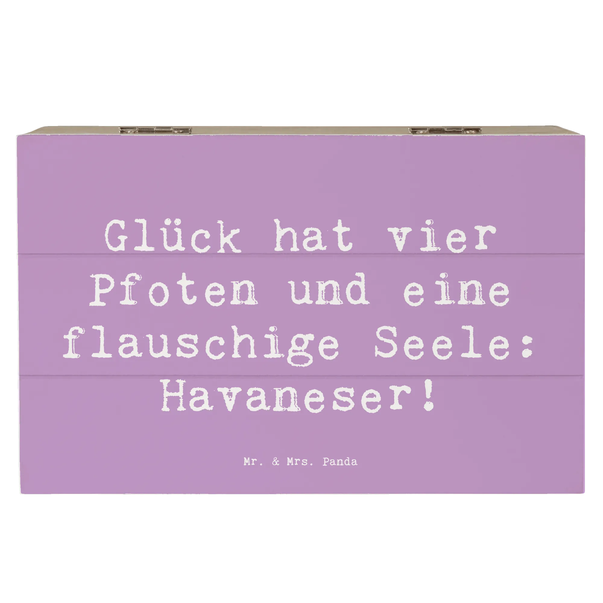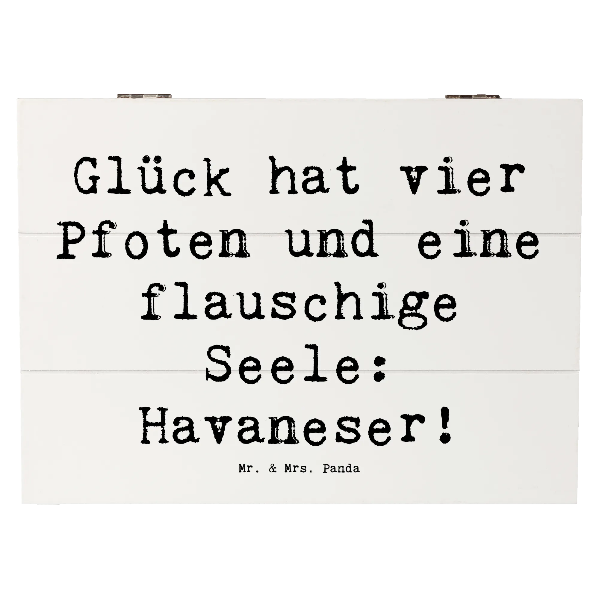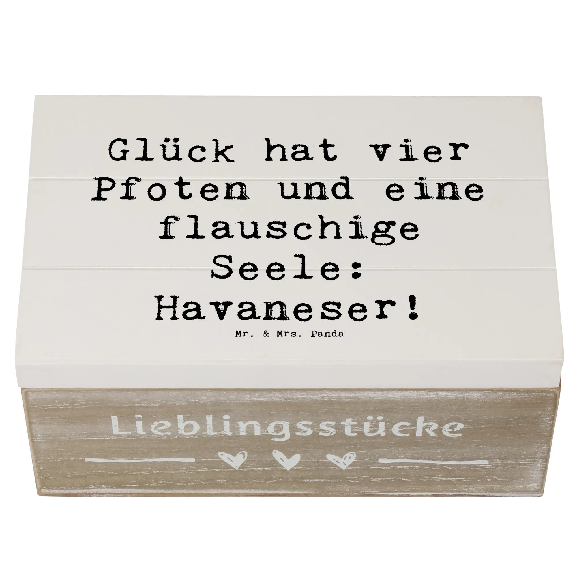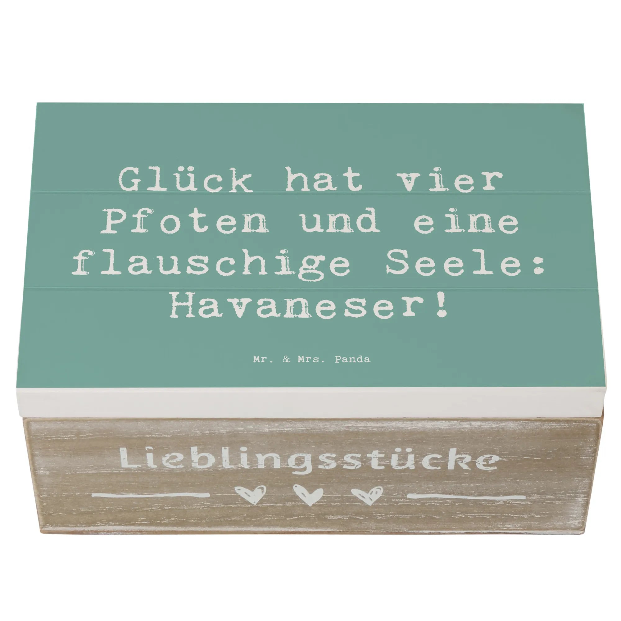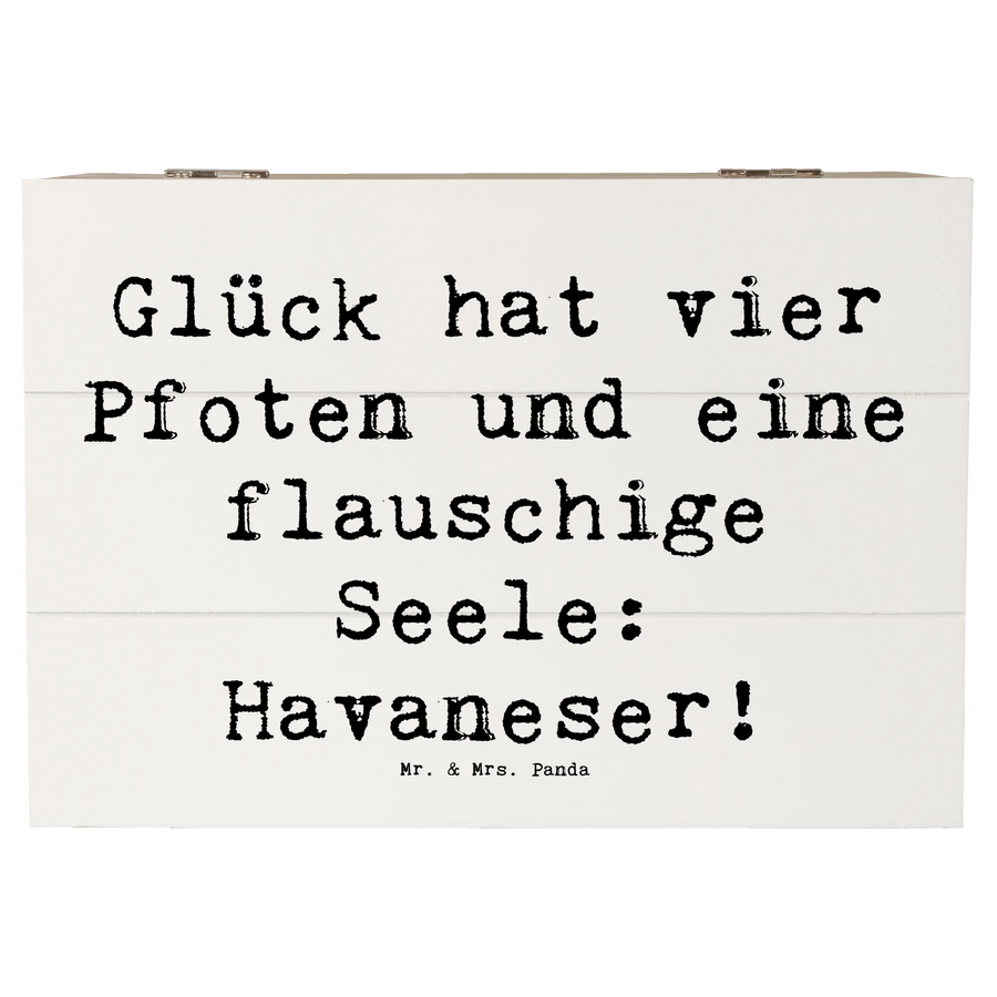 Entdecke die bezaubernde Holzkiste von Mr. & Mrs. Panda, die perfekt für alle Hundefans und besonders für Liebhaber der Hunderasse Havaneser ist! Diese liebevoll gestaltete Kiste mit dem Motto "Glück hat vier Pfoten und eine flauschige Seele: Havaneser!" bietet nicht nur Platz für die schönsten Erinnerungen, sondern ist auch eine herrlich dekorative Aufbewahrungslösung für alle Schätze, die Du sammeln möchtest.