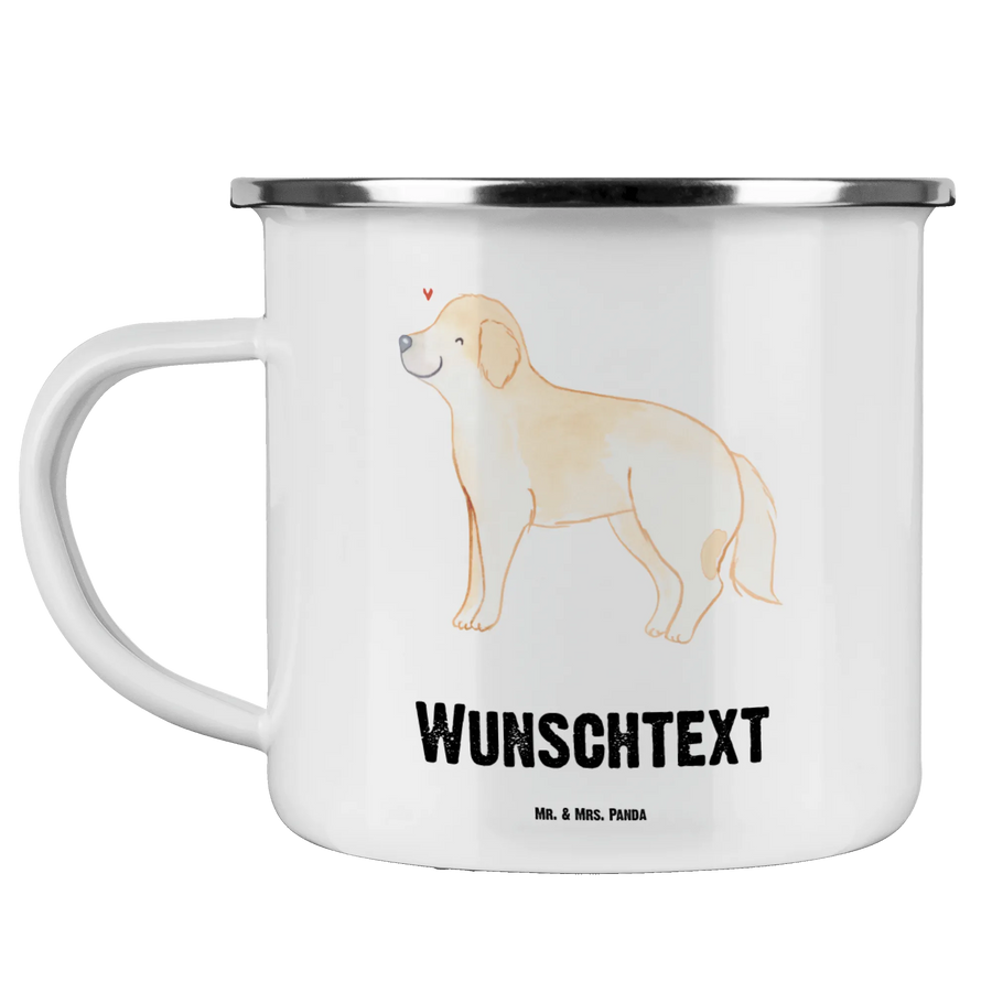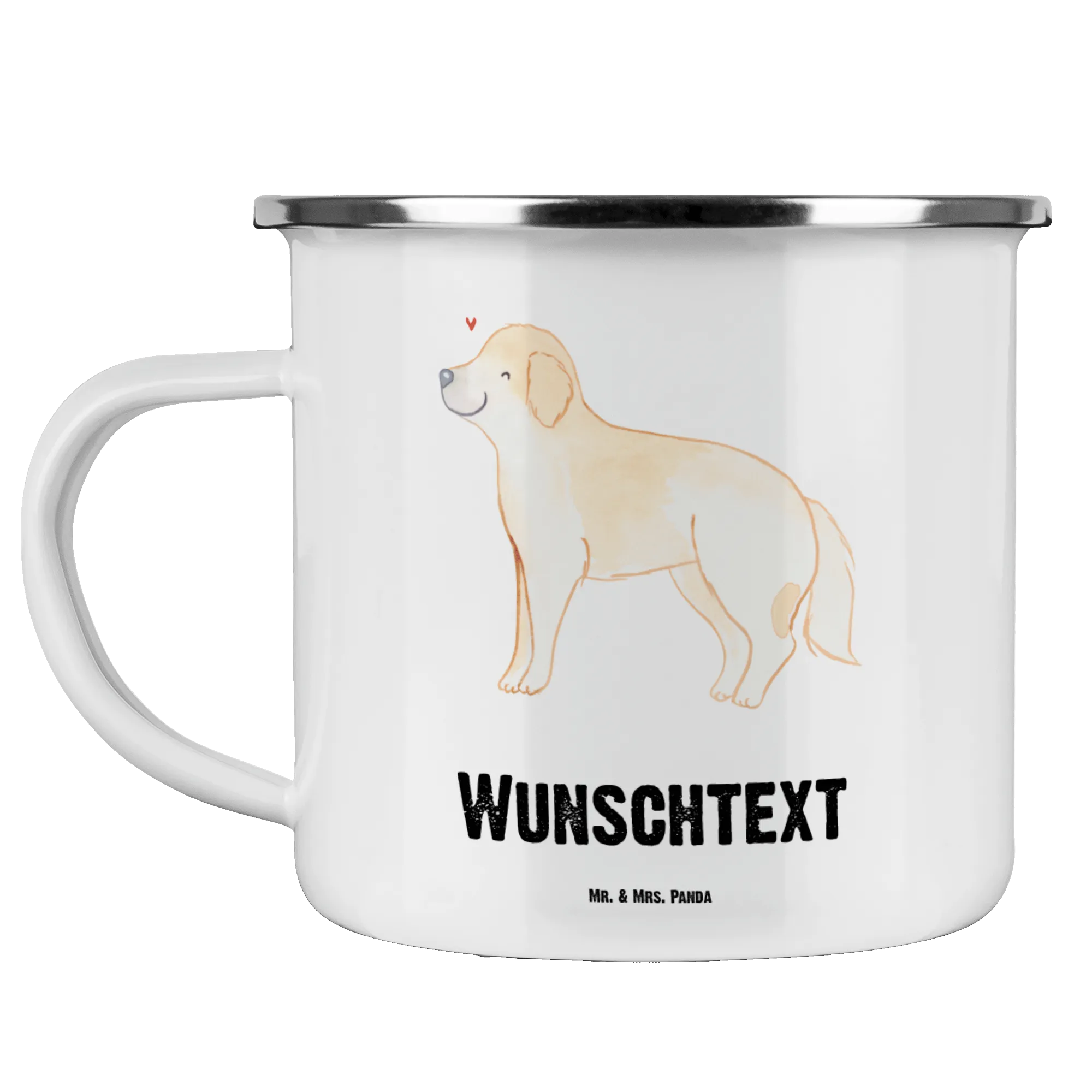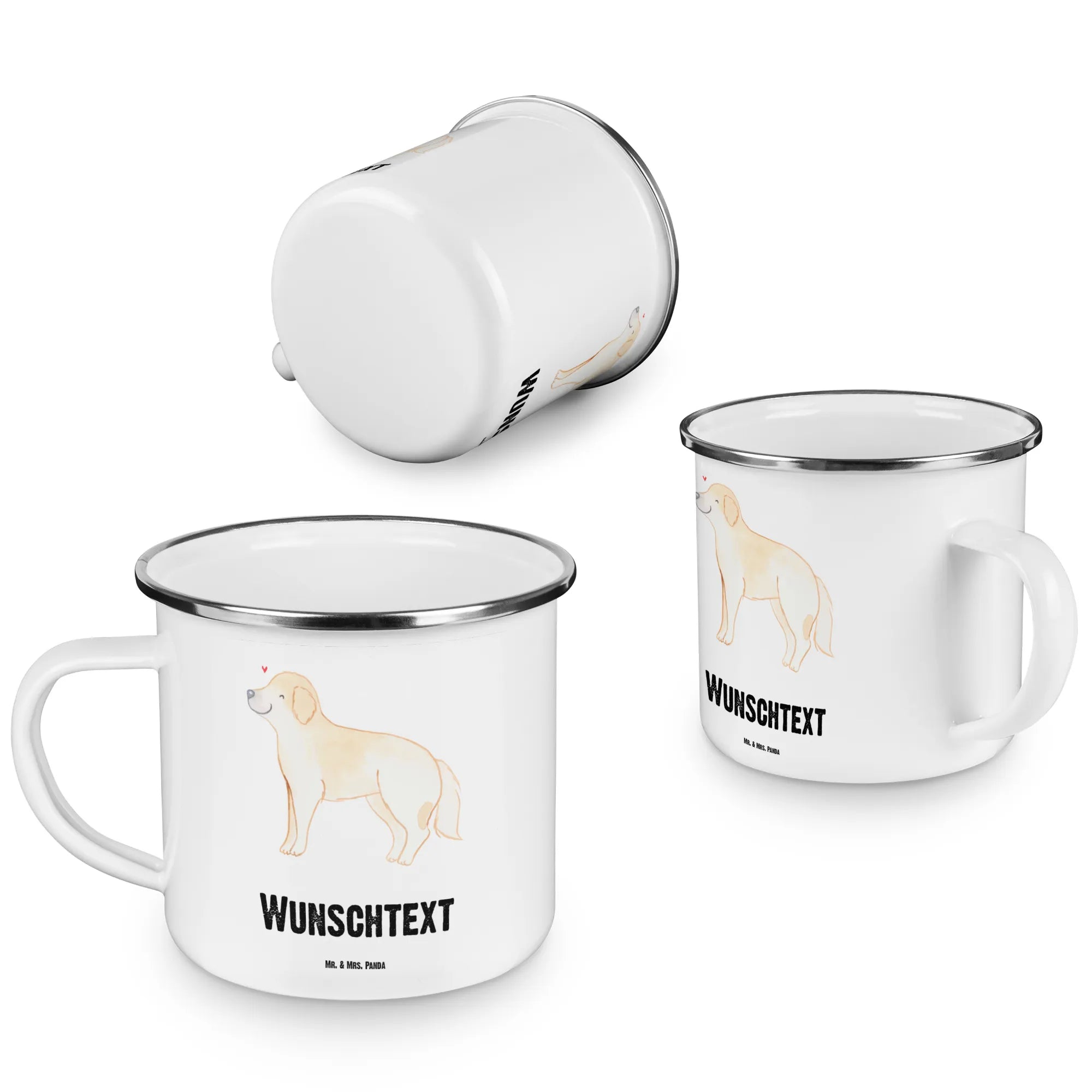Ein treuer Begleiter für unterwegs und zu Hause: Die personalisierte Emaille Tasse "Golden Retriever Lebensretter"