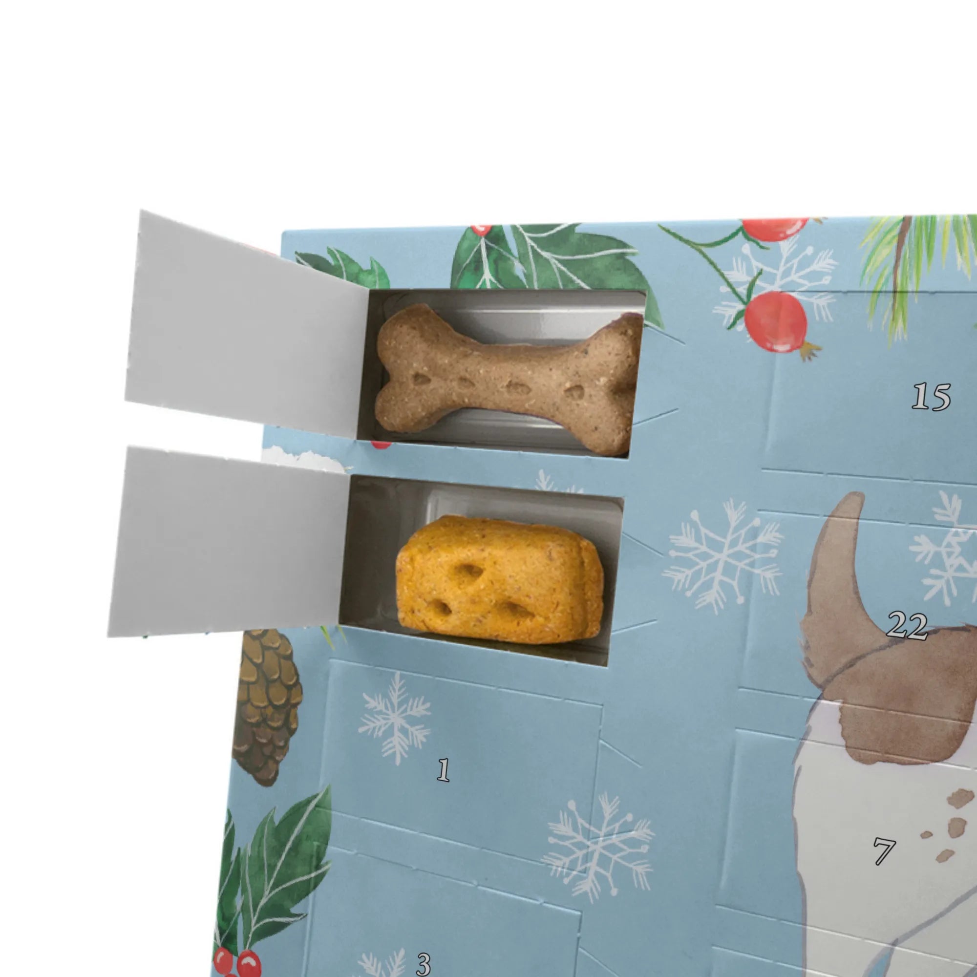Wunderschöner Personalisierter Hunde Adventskalender von Mr. & Mrs. Panda – perfekt für alle Hundemenschen, die ihren Vierbeiner zur Adventszeit verwöhnen möchten. Unser Adventskalender ist liebevoll bedruckt mit bezaubernden Motiven und frechen Sprüchen von Mr. & Mrs. Panda und lässt sich ganz einfach mit deinem Wunschnamen oder Wunschtext personalisieren. Die brillante Druckqualität mit seidenmatter Oberflächenveredelung sorgt für einen edlen Look, und die bedruckten Seitenflächen machen den Kalender rundum schön. Gefüllt ist er mit 24 Premium-Hundekuchen in vier verschiedenen Sorten: Beef Cake Mix, Mini Knabberknochen, Käse Snack und Panino Röllchen – alles luftig gebacken aus hochwertigen Zutaten. Zutaten: Getreide, Glucose, Fleisch und tierische Nebenerzeugnisse, Öle und Fette, Mineralstoffe. Maße: 325 mm x 225 mm x 27 mm. Der Kalender ist vielseitig: Du kannst ihn aufstellen oder aufgehängt präsentieren – je nachdem, wie es bei euch zuhause am schönsten aussieht. Besonderer Hinweis: Ohne Konservierungsstoffe. Ein tolles Geschenk für Hund und Halter, das schon beim Öffnen Vorfreude und ein Lächeln schenkt. Mach den Advent zu einem besonderen Erlebnis für deinen Hund mit diesem persönlichen Adventskalender von Mr. & Mrs. Panda.
