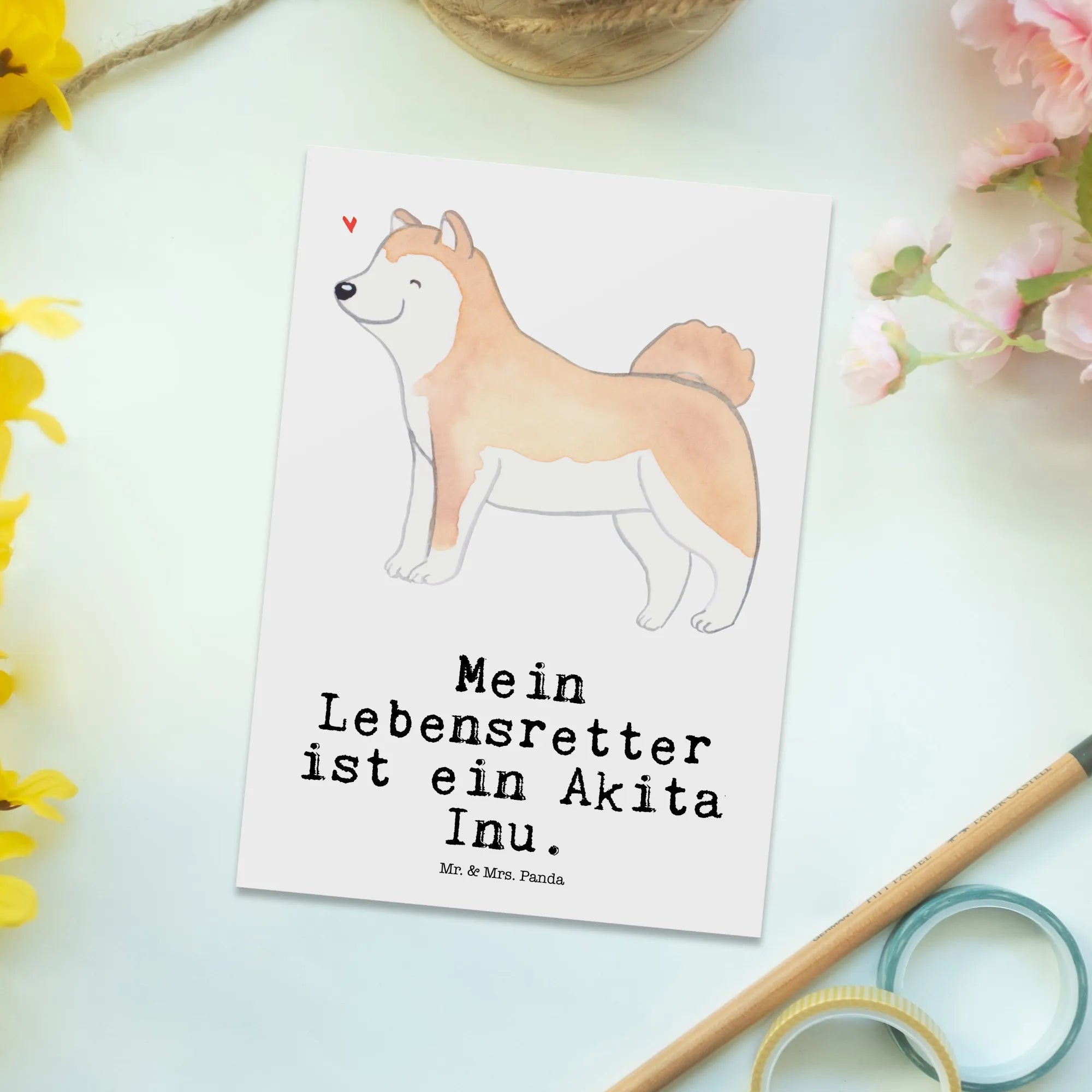Postkarte Akita Inu Lebensretter - mit Spruch - Weiß