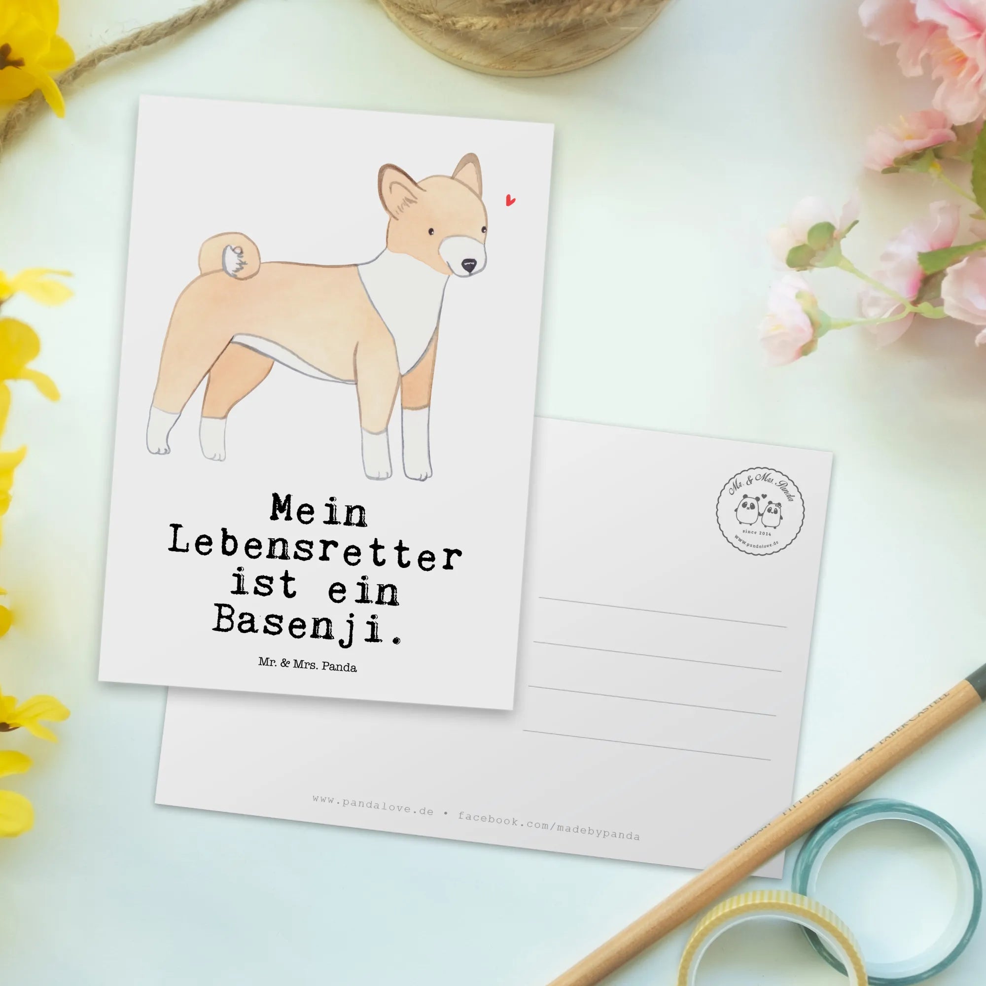 Postkarte Basenji Lebensretter - mit Spruch - Weiß
