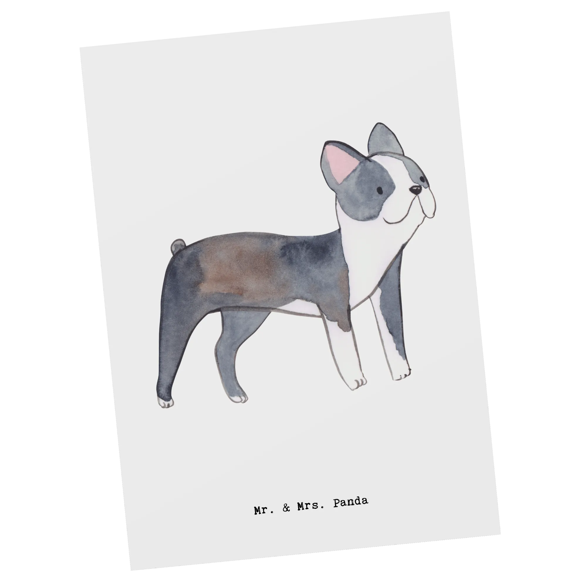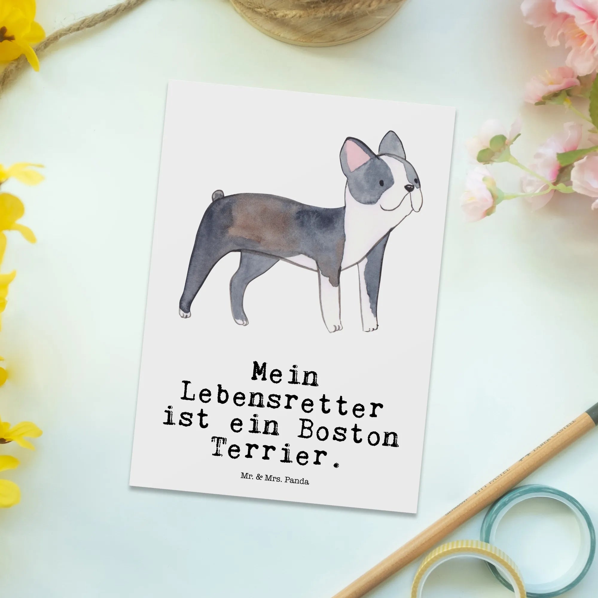 Postkarte Boston Terrier Lebensretter - mit Spruch - Weiß