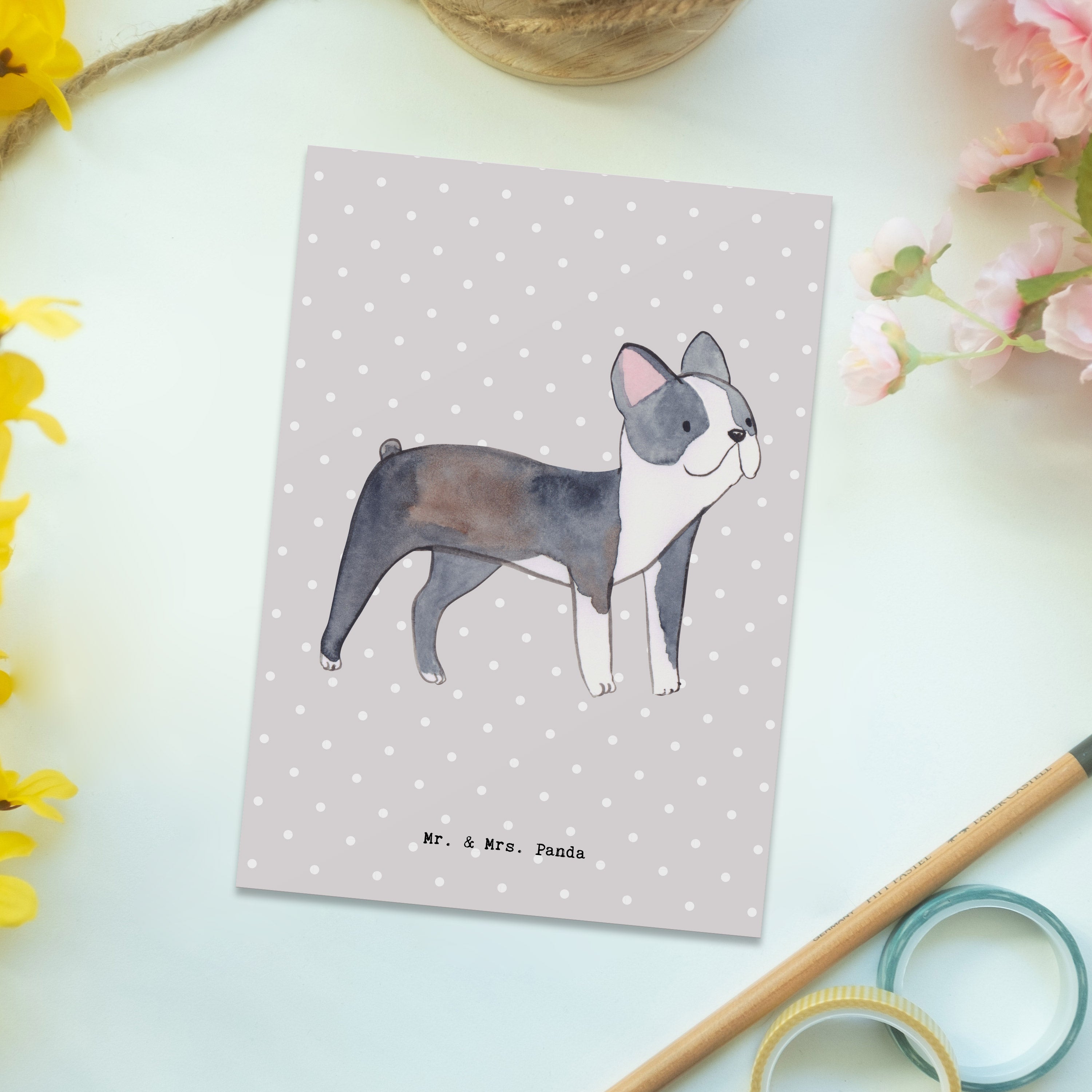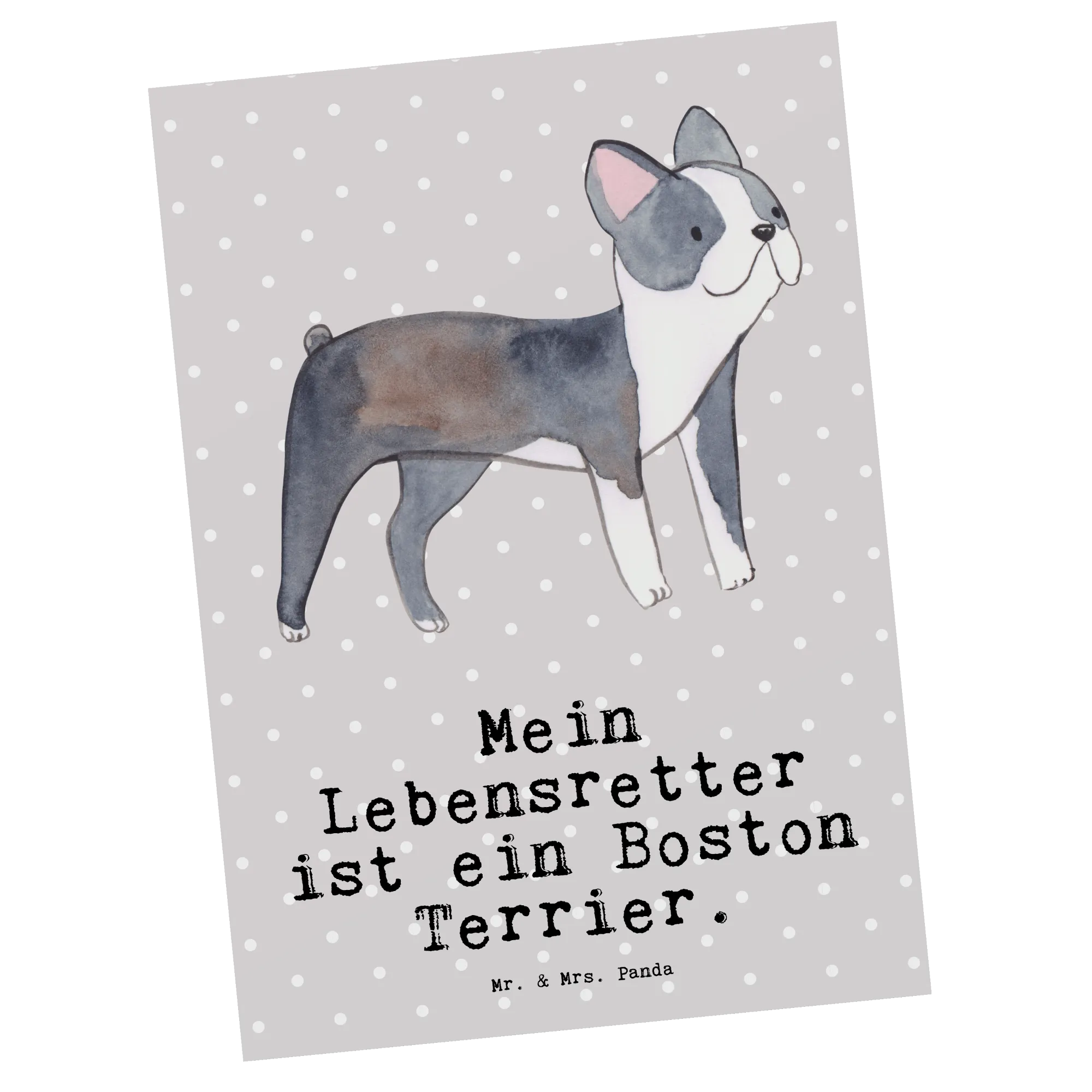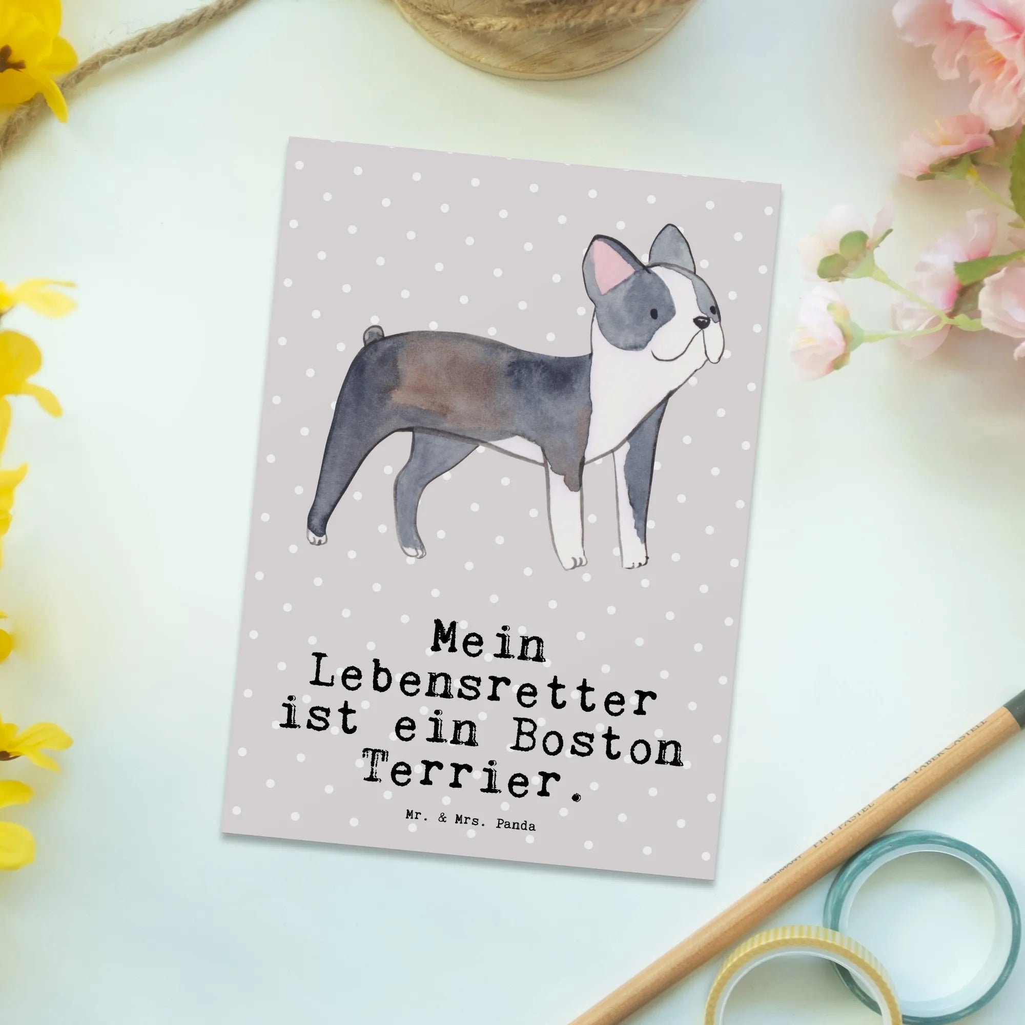 Suchst du nach einem perfekten Geschenk für Hundeliebhaber und Boston Terrier Fans? Diese einzigartige Postkarte von Mr. & Mrs. Panda ist die absolut richtige Wahl! Mit dem liebevollen Slogan "Mein Lebensretter ist ein Boston Terrier" zeigt sie die besondere Verbindung zwischen Mensch und Hund.