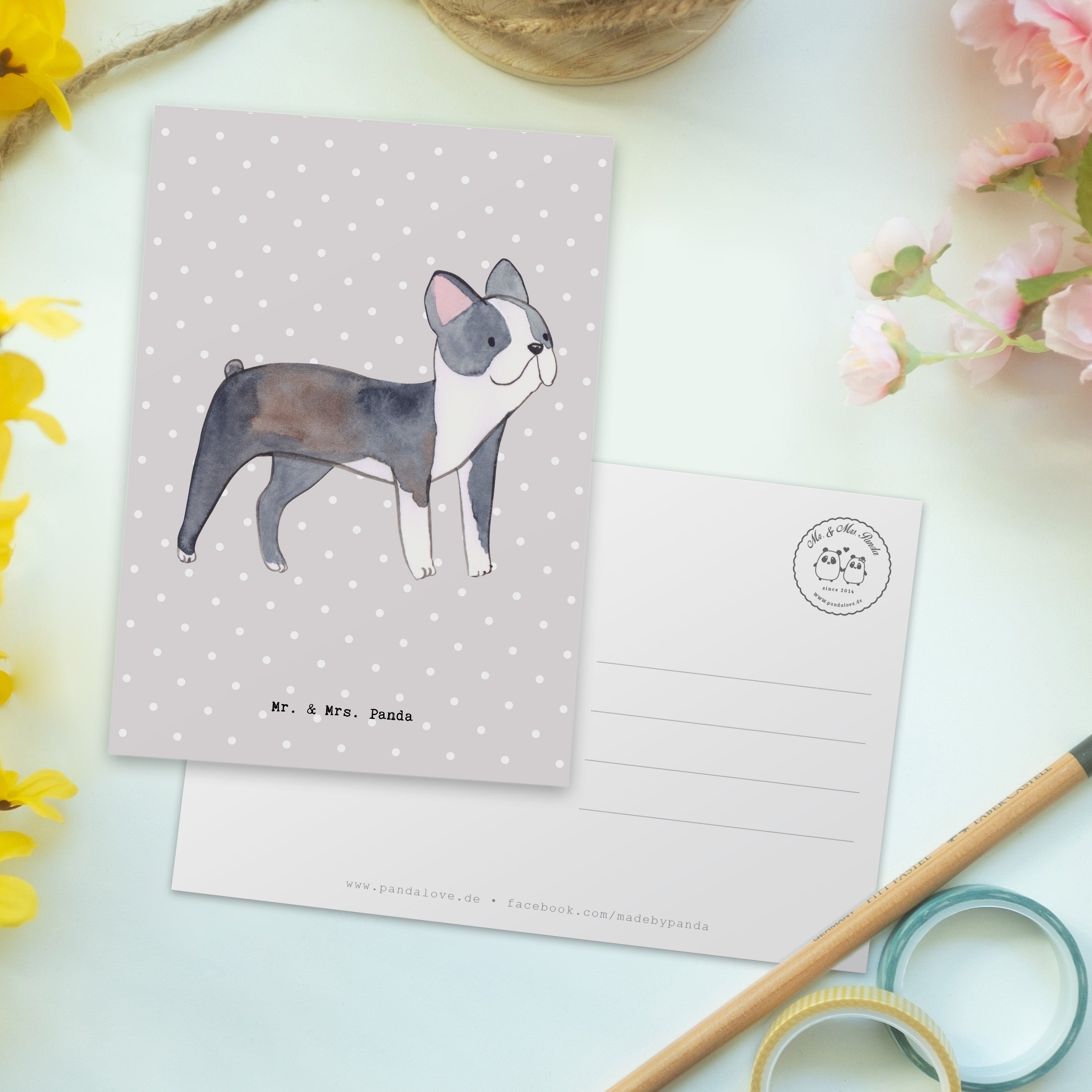 Du suchst nach dem perfekten Geschenk für einen Hundeliebhaber oder vielleicht für dich selbst? Unsere einzigartige Postkarte "Mein Lebensretter ist ein Boston Terrier" von Mr. & Mrs. Panda ist genau das, was du brauchst! Diese charmante Karte zeigt einen entzückenden Boston Terrier, dessen liebevolle Augustinität sofort die Herzen der Tierfreunde erobert.