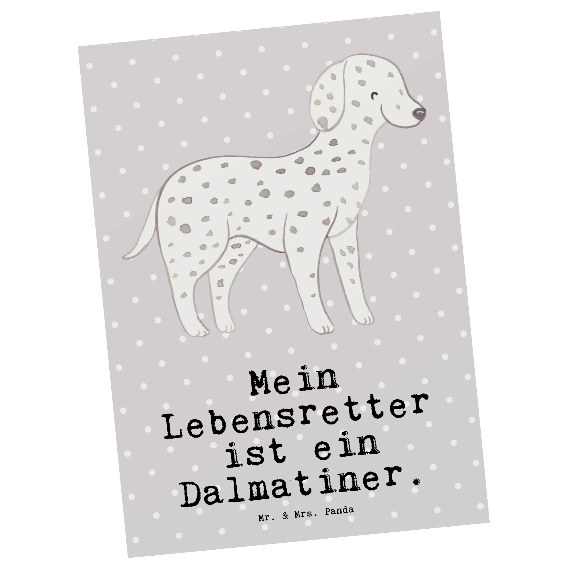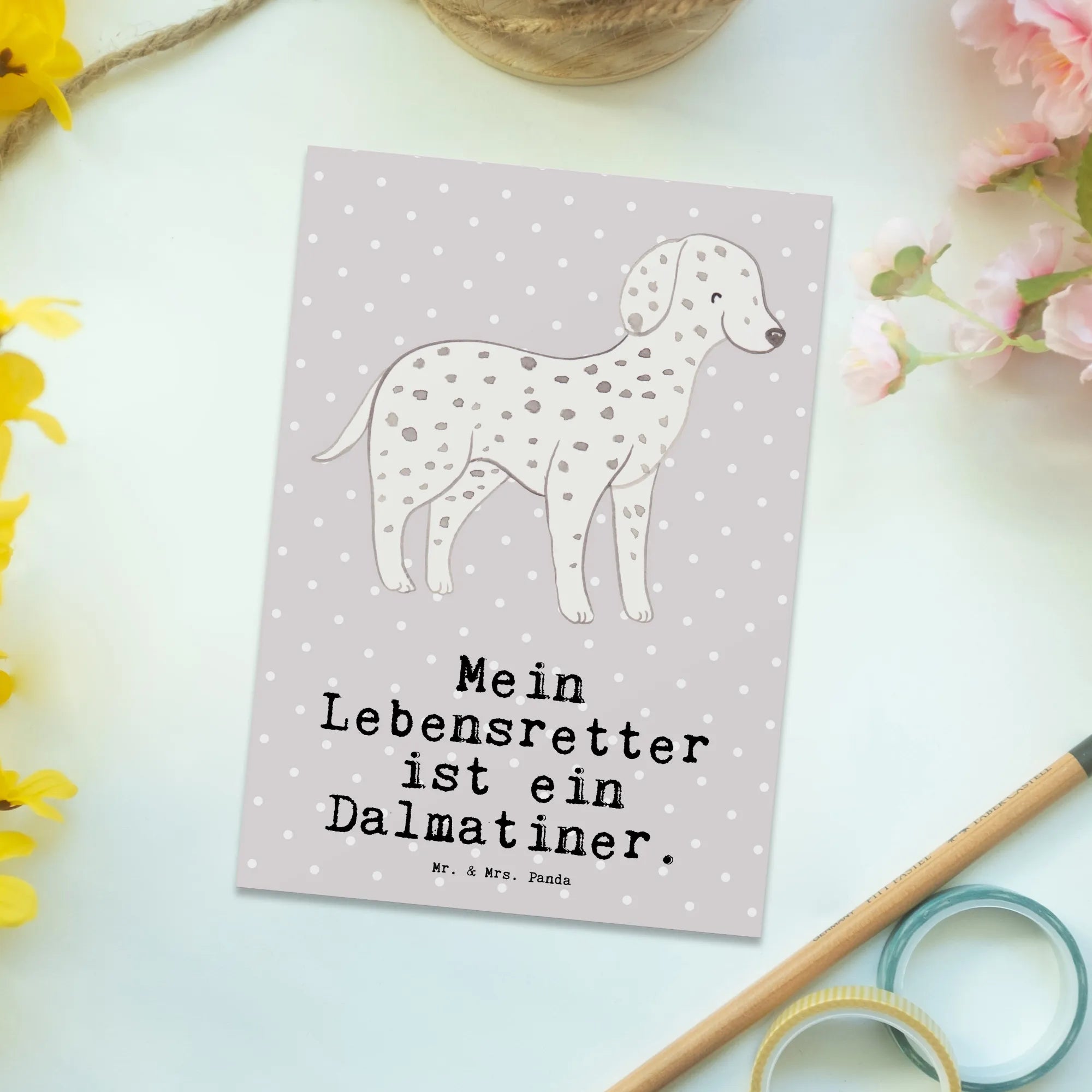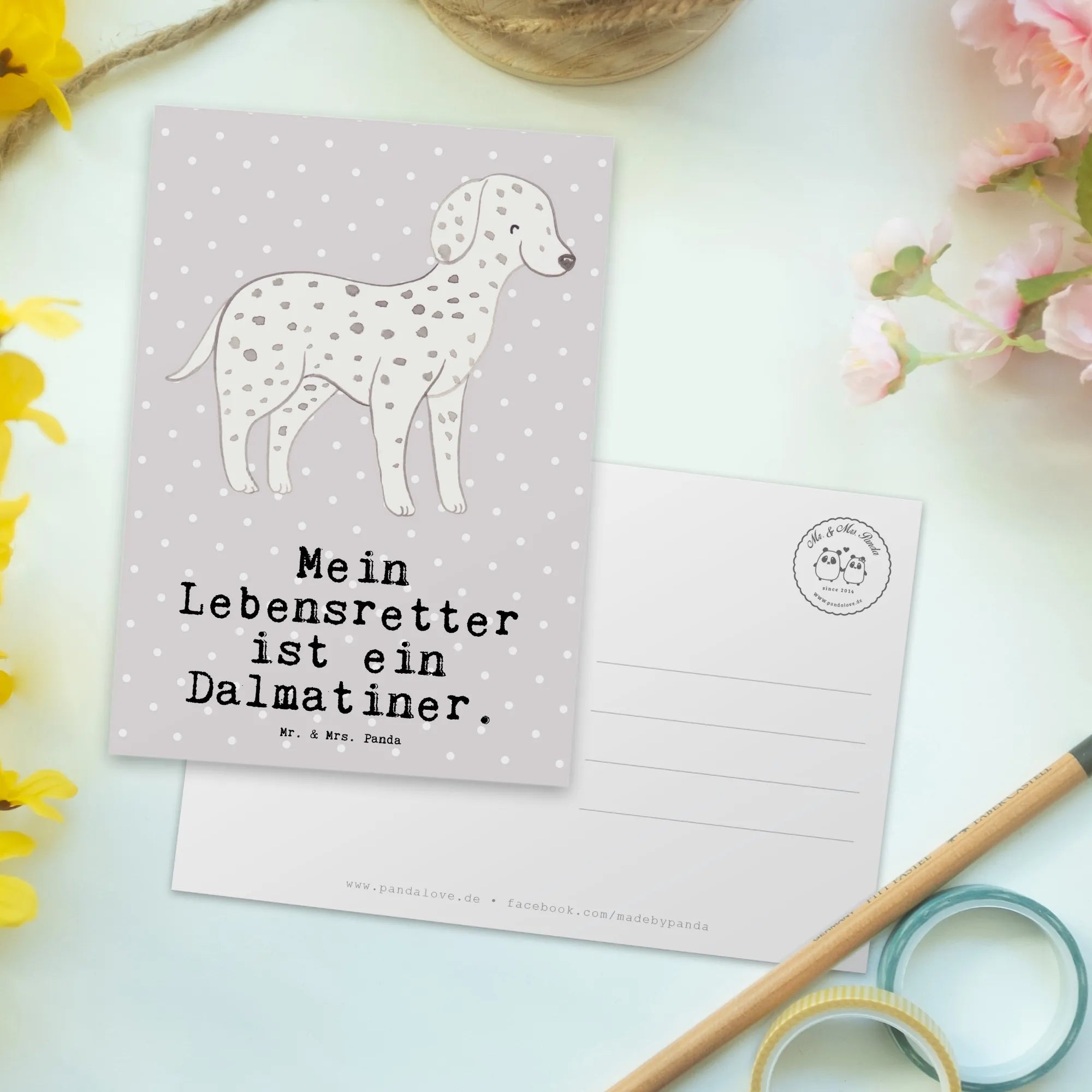 Eine einzigartige Postkarte von Mr. & Mrs. Panda, die den stilvollen Dalmatiner mit dem sprühenden Slogan "Mein Lebensretter ist ein Dalmatiner" ziert. Diese Karte ist nicht nur ein hübsches Design, sondern auch eine herzliche Botschaft, die perfekt für Hundebesitzer und Tierfreunde ist. Sie eignet sich hervorragend als Geburtstagskarte, zum Gratulieren oder einfach nur, um einem lieben Menschen zu danken.