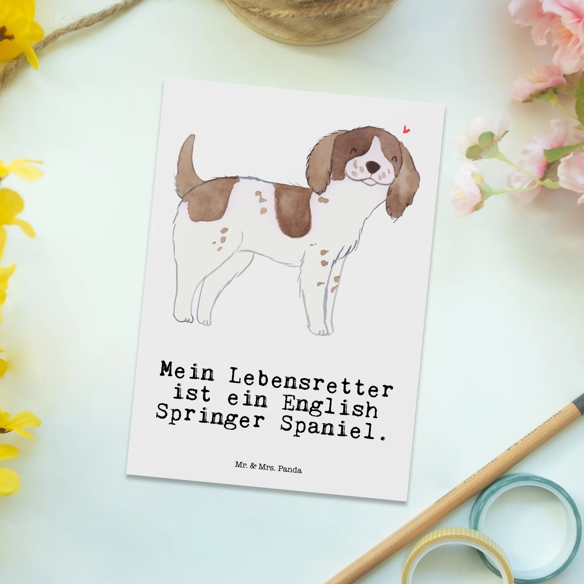 Postkarte English Springer Spaniel Lebensretter - mit Spruch - Weiß