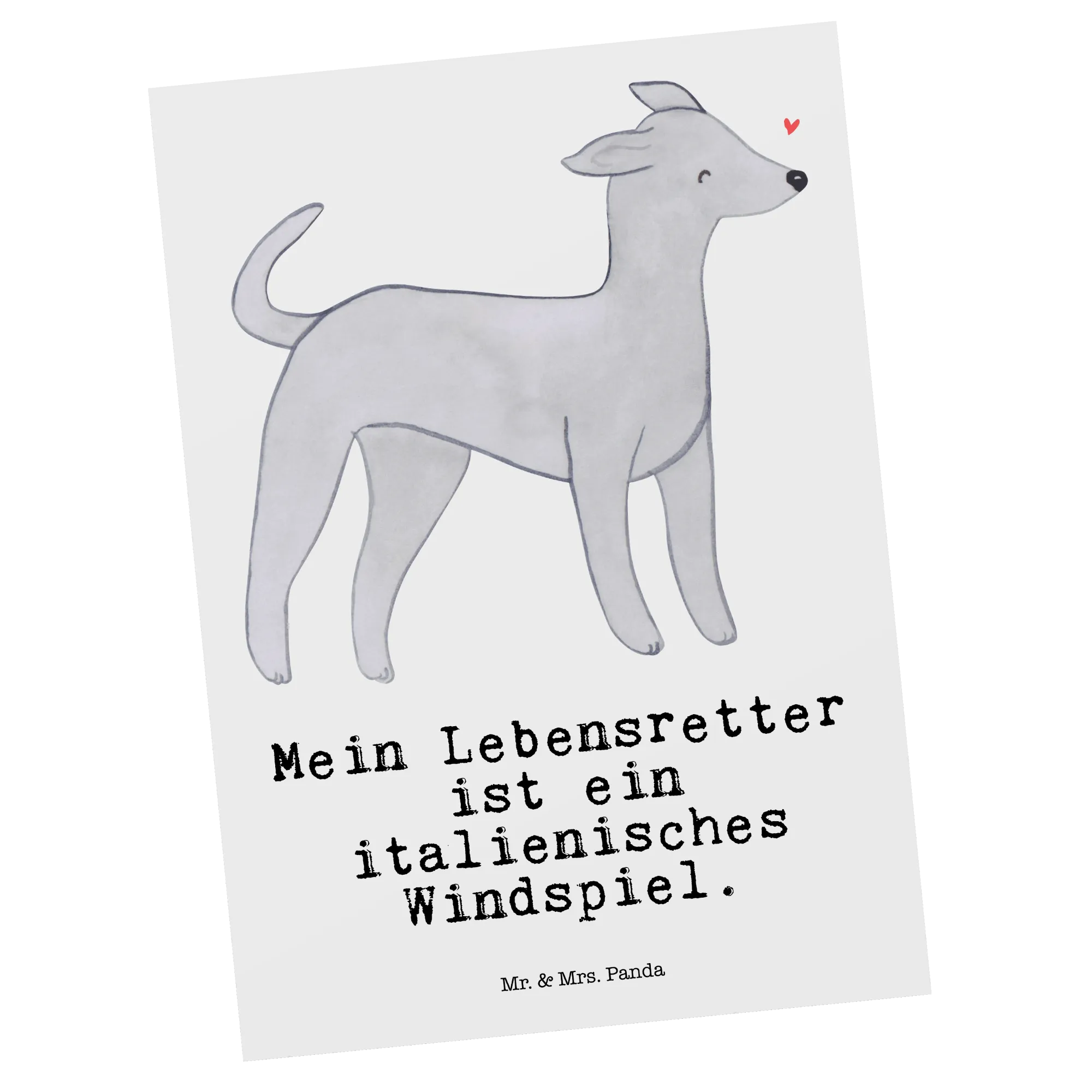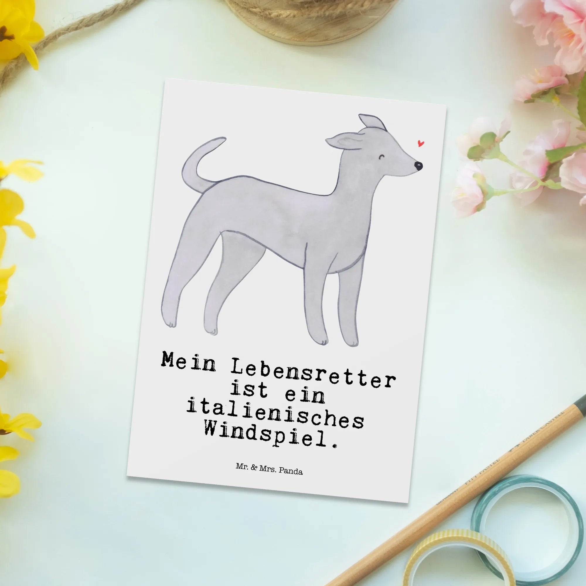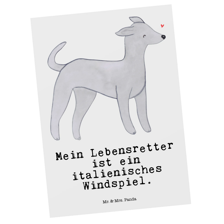 Suchst du nach einem ganz besonderen Geschenk für einen Hundeliebhaber? Diese einzigartige Postkarte von Mr. & Mrs. Panda mit dem charmanten Motif "Italienisches Windspiel Lebensretter" ist das perfekte Präsent! Auf dieser detailreich gestalteten Karte steht ein elegantes italienisches Windspiel im sanften Aquarellstil, mit großen, aufgestellten Ohren und einem verspielten kleinen roten Herzchen, das ihm eine liebevolle Note verleiht.