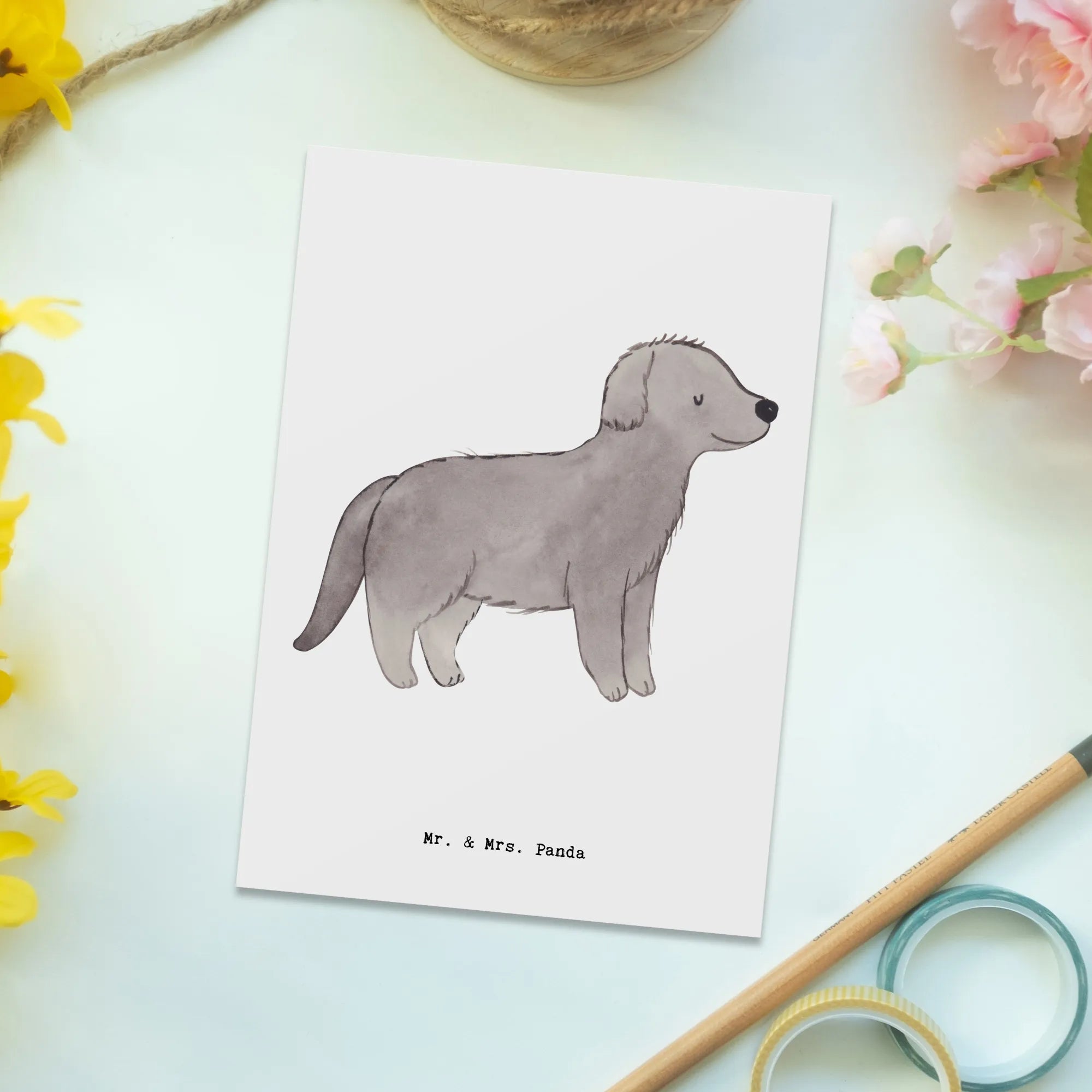 Du liebst Hunde? Dann ist die einzigartige Postkarte "Neufundländer Lebensretter" von Mr. & Mrs. Panda das perfekte Geschenk für dich oder jeden Hundefreund! Diese liebevoll gestaltete Karte zeigt einen freundlich lächelnden Neufundländer, der mit sanften Konturen und zarten Farbverläufen in Grautönen strahlt.