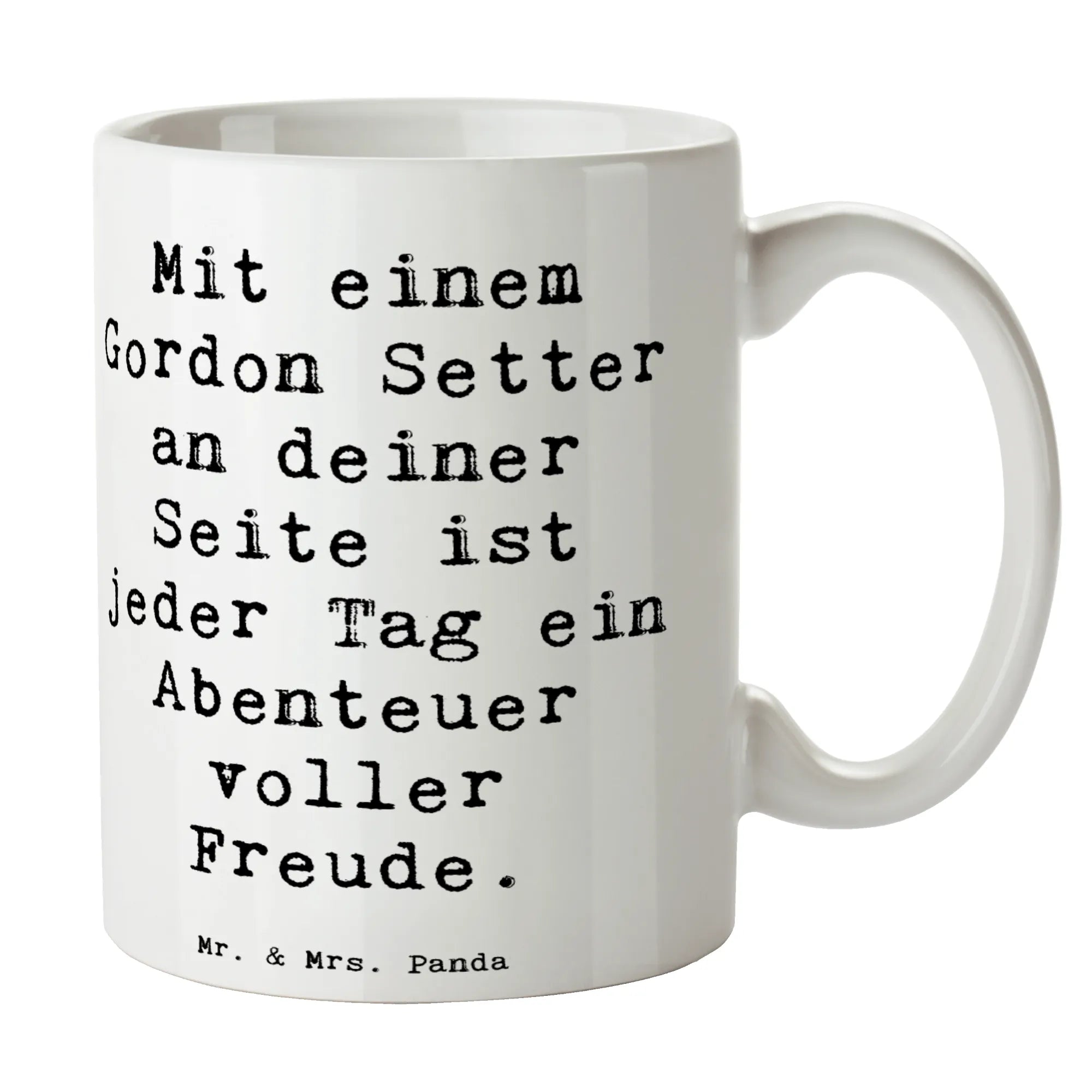 Unsere Mr. & Mrs. Panda Kaffeetasse trägt den herzlichen Spruch „Mit einem Gordon Setter an deiner Seite ist jeder Tag ein Abenteuer voller Freude.“ und ist ein liebevolles Geschenk für Hundemenschen. Das handgezeichnete Motiv aus der Hunderassen-Kollektion von Mrs. Panda fängt den Charakter des Gordon Setters spielerisch ein und sorgt für gute Laune bei jeder Tasse Kaffee oder Tee.