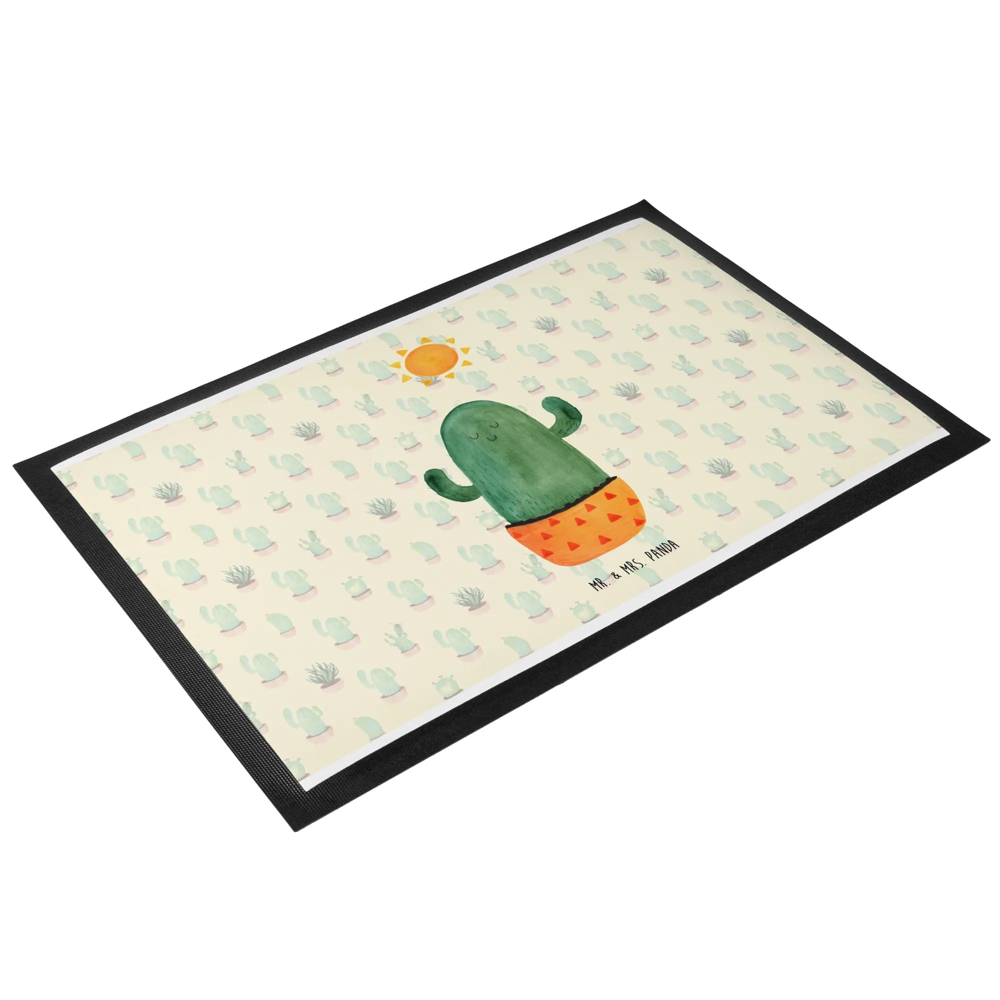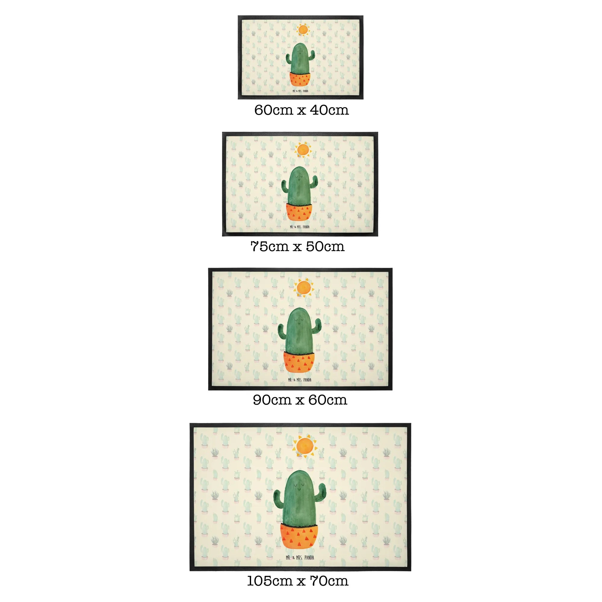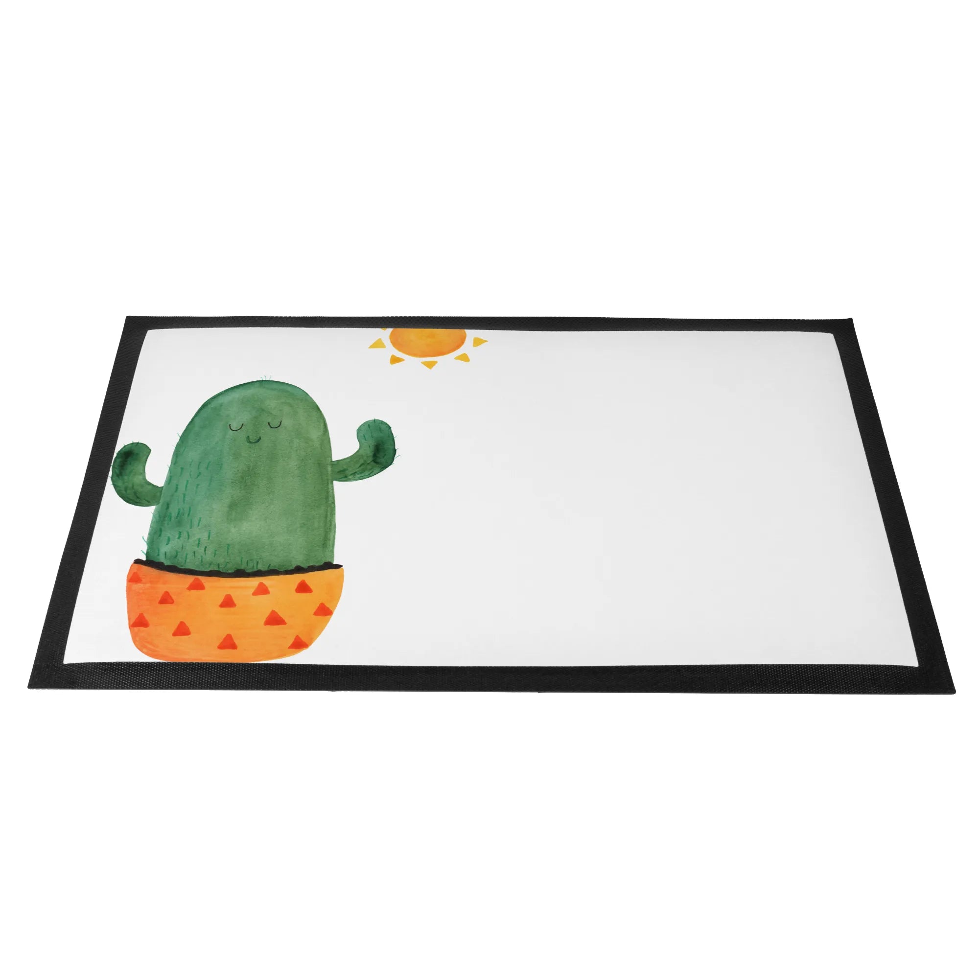 Die Fußmatte Kaktus Sonnenanbeter von Mr. & Mrs. Panda ist nicht nur ein wunderbarer Türvorleger, sondern auch ein echtes Wohnaccessoire mit Herz. Mit einem niedlichen Kaktus, der sich glücklich in die Sonne lächelt, bringt diese Matte das fröhliche Flair des Sommers direkt zu dir vor die Tür. Das Design wurde mit viel Liebe und in Aquarelltechnik von Mrs. Panda gezeichnet und lässt jedes Mal ein Lächeln auf dein Gesicht zaubern, wenn du nach Hause kommst.