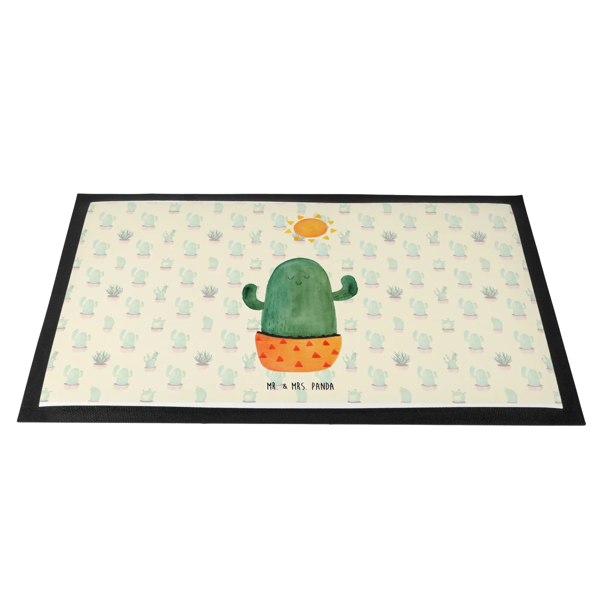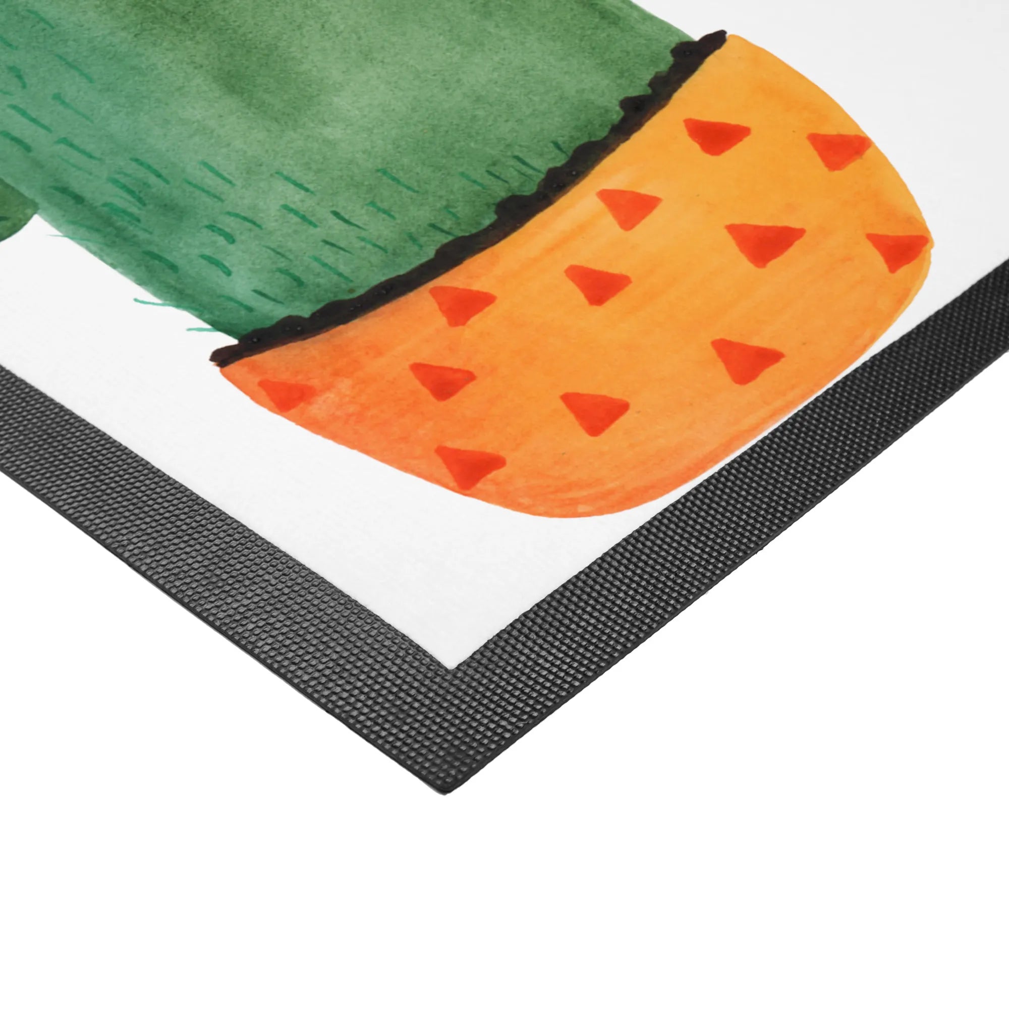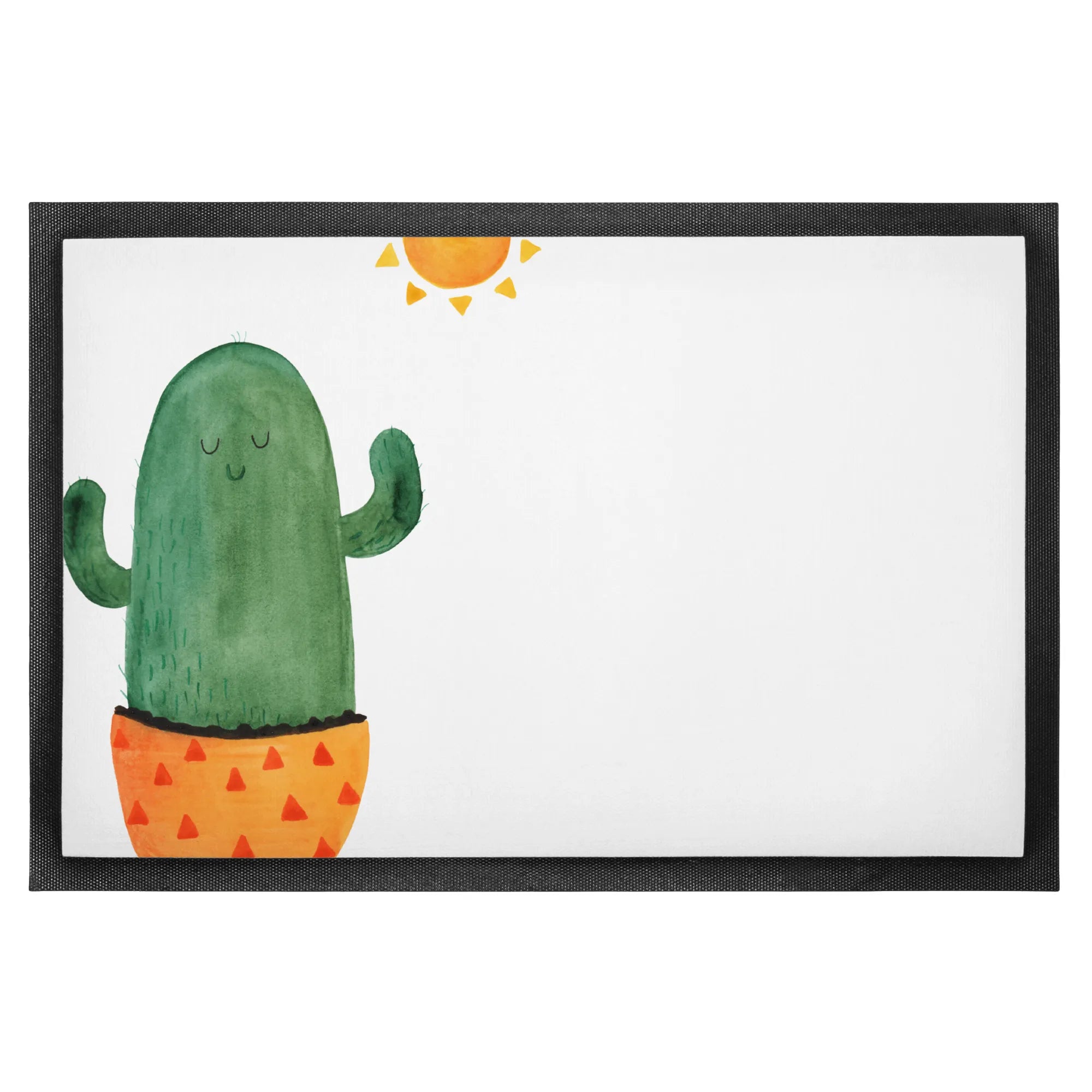 Die Fußmatte Kaktus Sonnenanbeter von Mr. & Mrs. Panda ist nicht nur ein wunderbarer Türvorleger, sondern auch ein echtes Wohnaccessoire mit Herz. Mit einem niedlichen Kaktus, der sich glücklich in die Sonne lächelt, bringt diese Matte das fröhliche Flair des Sommers direkt zu dir vor die Tür. Das Design wurde mit viel Liebe und in Aquarelltechnik von Mrs. Panda gezeichnet und lässt jedes Mal ein Lächeln auf dein Gesicht zaubern, wenn du nach Hause kommst.