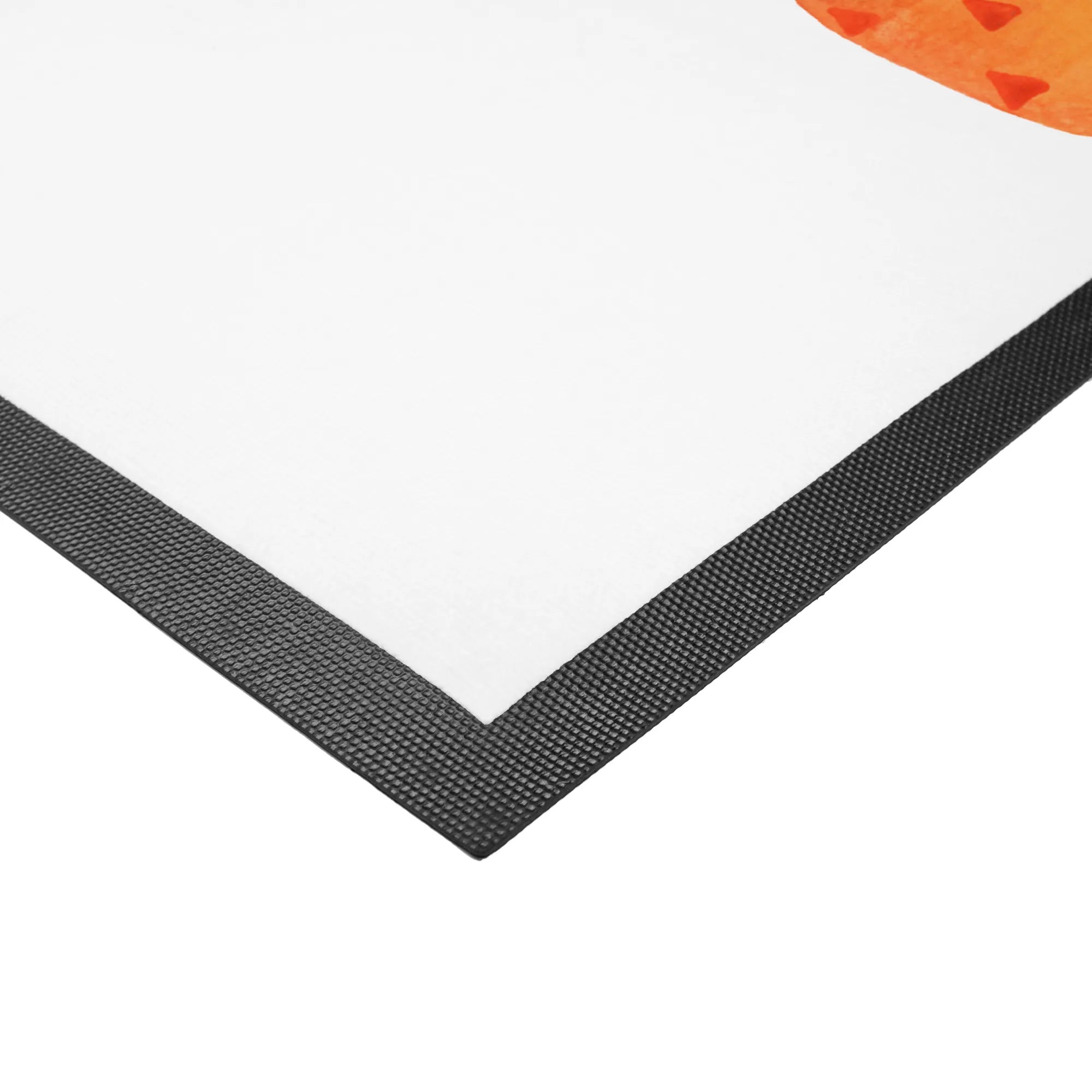 Die Fußmatte hat die Maße 60 x 90 cm und besteht aus robustem Polyesterfilz, das extrem abriebfest und wetterbeständig ist. Ihre rutschfeste Gummirückseite sorgt dafür, dass sie in jedem Wetter an ihrem Platz bleibt und dennoch einen hohen Komfort bietet. Außerdem ist die Matte pflegeleicht; du kannst sie einfach ausklopfen oder sogar bei Bedarf bis 30°C waschen. Der breite Gummirand verhindert das Ausfransen und sorgt für zusätzliche Stabilität. Diese Schmutzfangmatte ist sowohl für den Innen- als auch für den Außenbereich geeignet und vereint Funktionalität mit niedlichem Design.