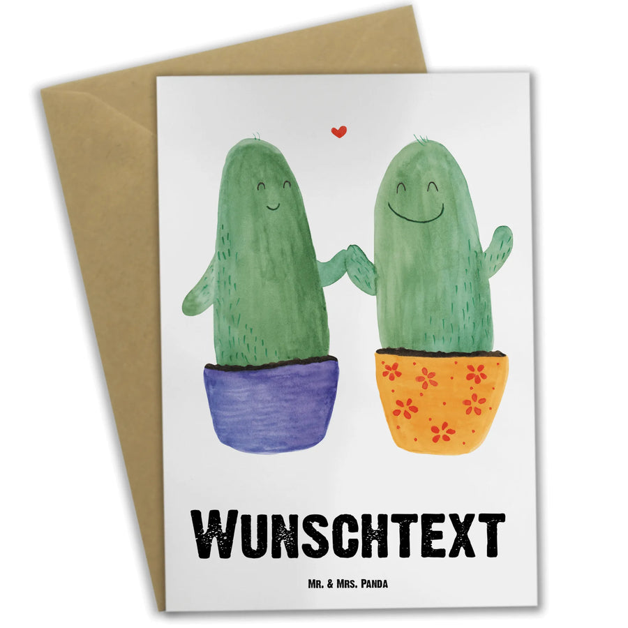 Die personalisierte Grußkarte mit dem Motiv "Kaktus Liebe" aus der Kaktus-Kollektion von Mr. & Mrs. Panda ist das perfekte Geschenk für alle, die kreative, individuelle Grüße lieben. Diese wunderschöne und einzigartige Karte ist mit zwei fröhlichen Kakteen illustriert, die einander glücklich anschauen. Mrs. Panda hat dieses niedliche Motiv mit viel Liebe und im Aquarell-Stil handgezeichnet.