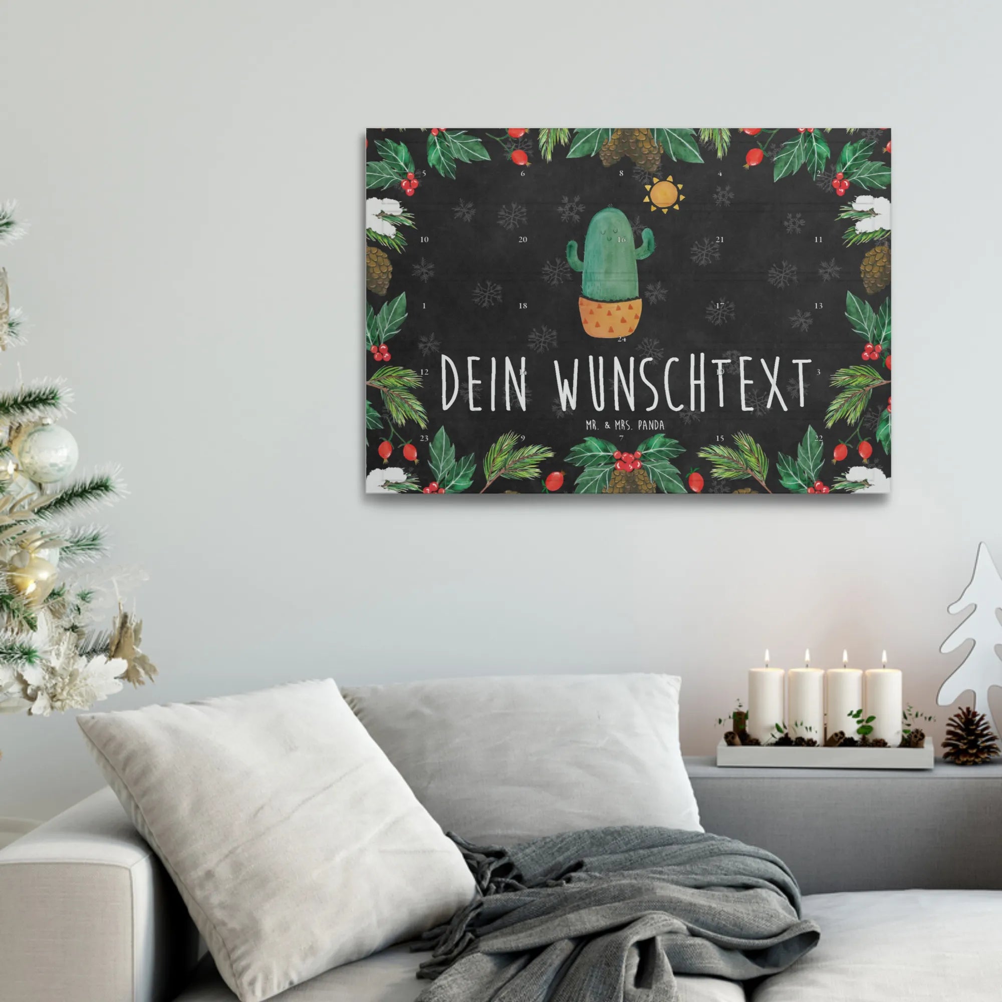 Entdecke unseren wundervollen personalisierten Tee Adventskalender mit dem liebevollen Motiv 'Kaktus Sonnenanbeter' aus der fantastischen Kaktus-Kollektion von Mr. & Mrs. Panda! 🌵