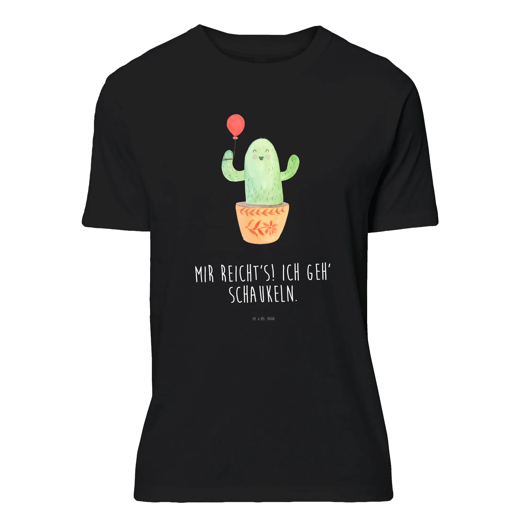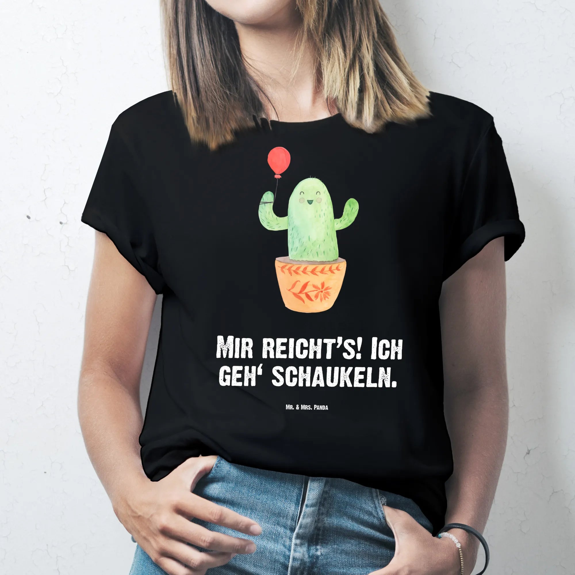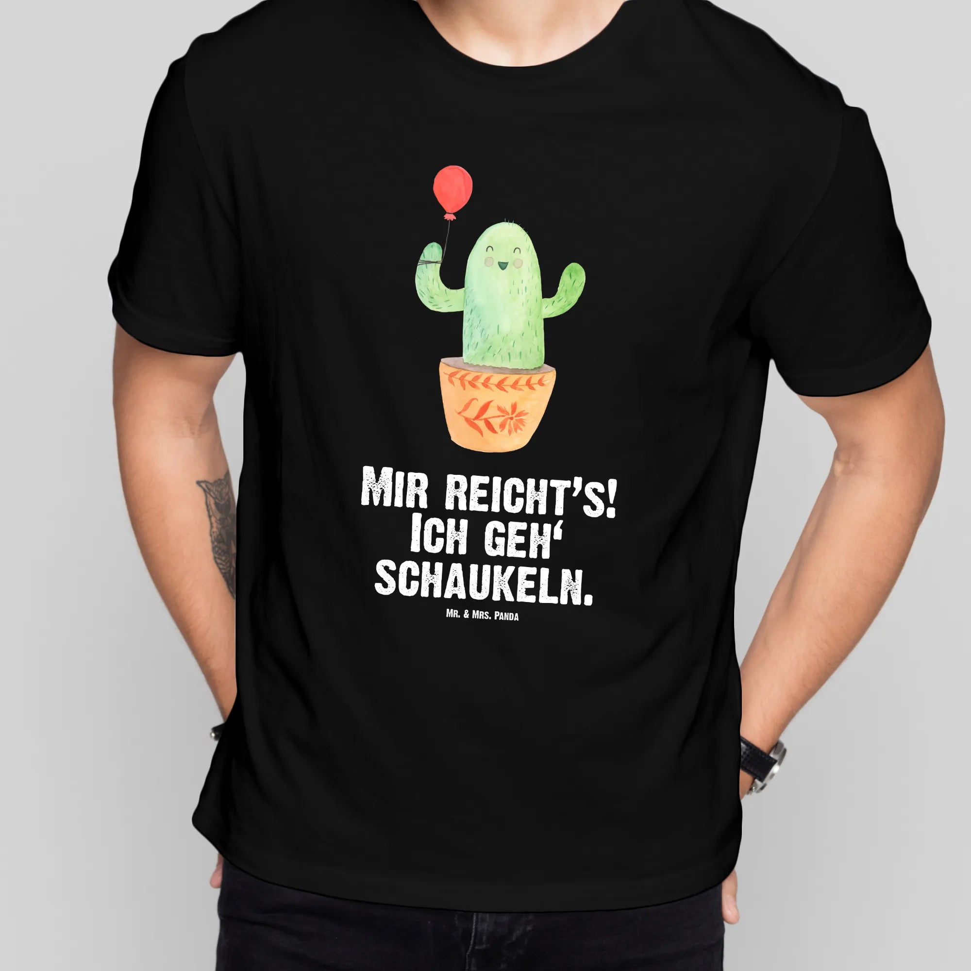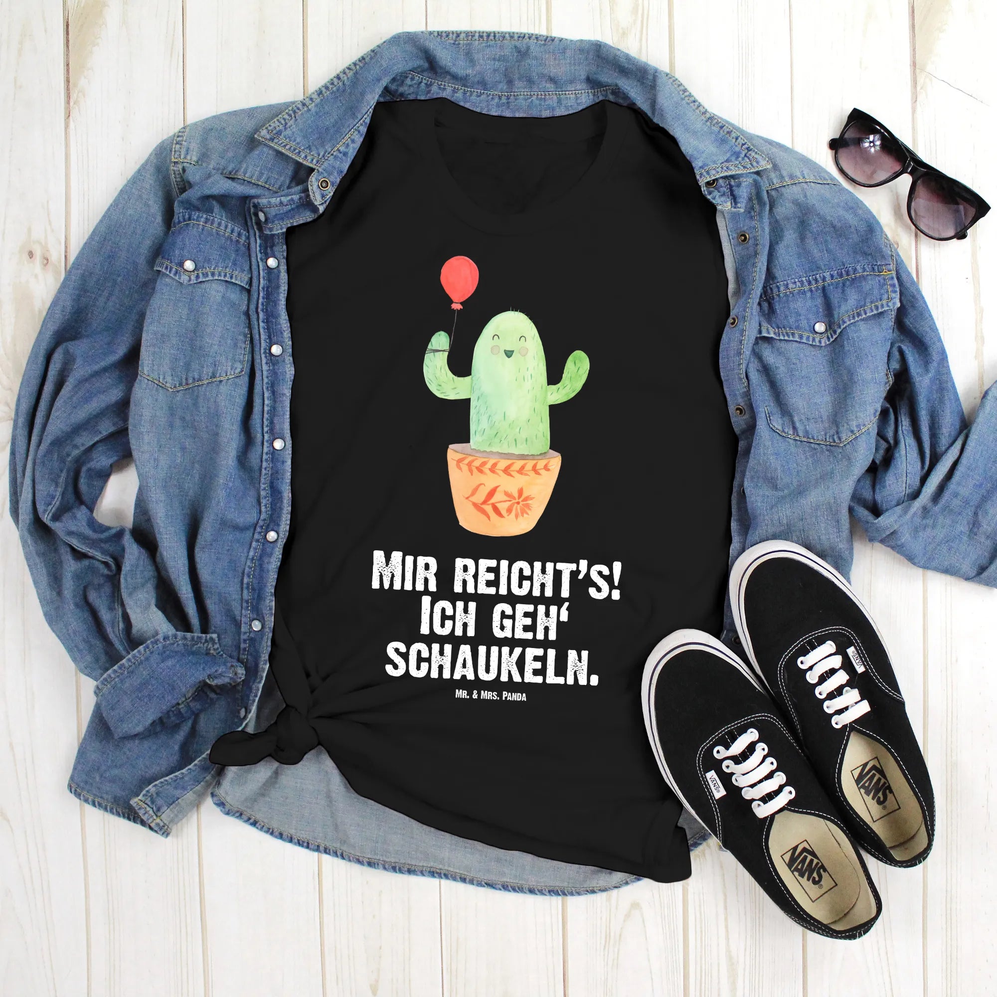 Das Design zeigt einen fröhlichen, kleinen Kaktus, der liebevoll von Mrs. Panda in Aquarellfarben gezeichnet wurde. Er hält einen bunten Luftballon fest – ein Bild voller Optimismus und kleiner Ironie. Begleitet wird dieses süße Motiv von dem Spruch 'Mir reicht’s! Ich geh‘ schaukeln.', der sofort ein Lächeln auf die Lippen zaubert. Dieses Shirt ist aus hochwertiger Baumwolle gefertigt, was es besonders weich und angenehm auf der Haut macht. ☁️