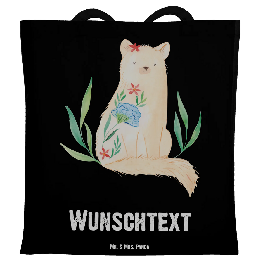 Personalisierte Tragetasche Katze Blumen - Schwarz