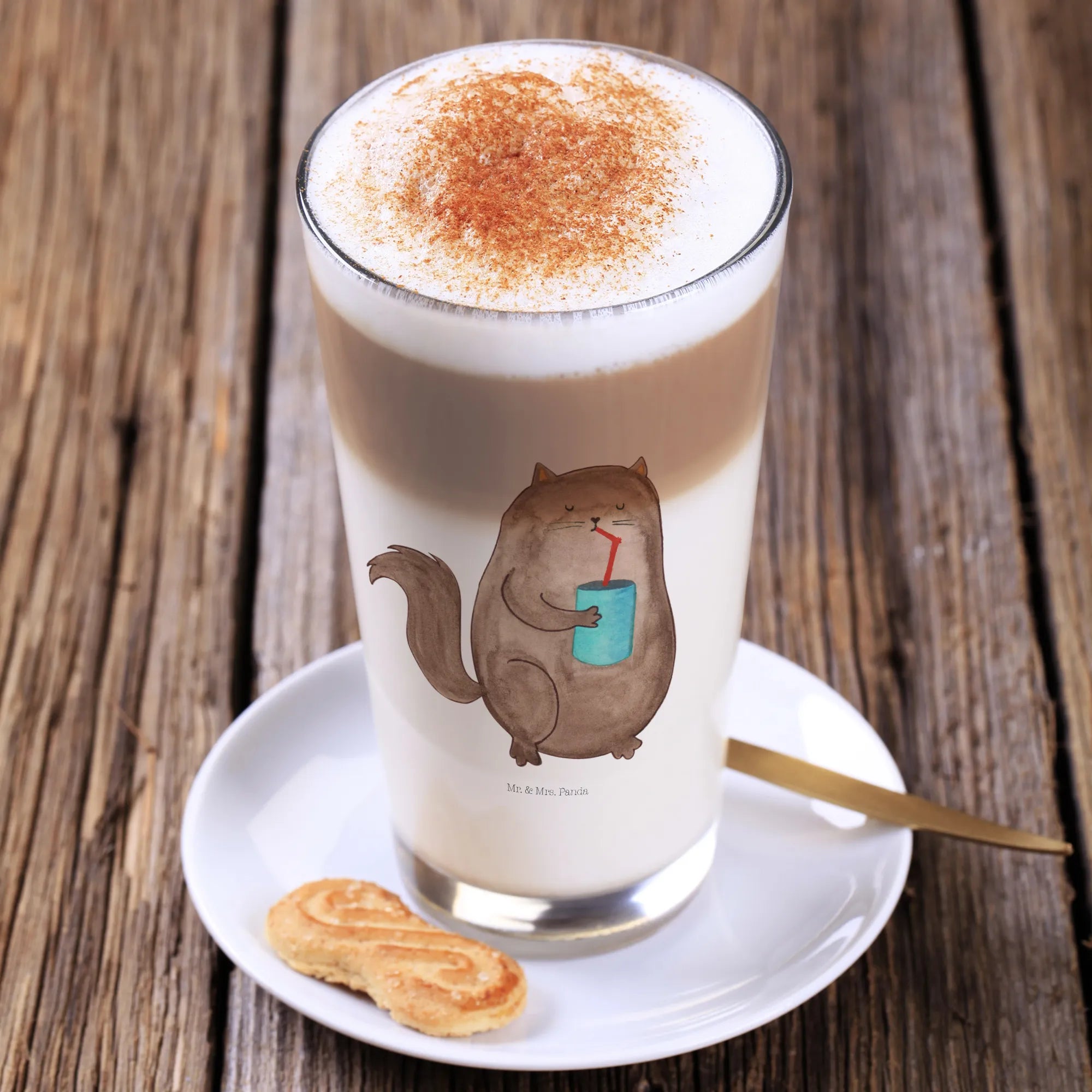 Entdecke unser entzückendes Cappuccino Glas mit dem einzigartigen Katzenmotiv aus der Katzen-Kollektion von Mr. & Mrs. Panda! Dieses wunderschöne Glas ist nicht nur ein echter Hingucker, sondern auch perfekt für alle Katzenliebhaber und Katzenfans. Die handgezeichnete Katze, die begeistert eine Dose in der Hand hält und daraus trinkt, bringt ein wenig Katzenzauber in jedes Zuhause.