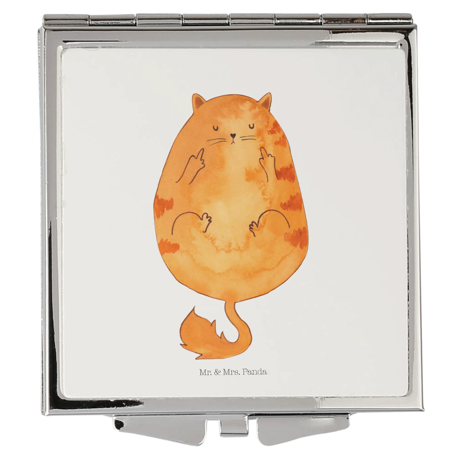 Handtaschenspiegel quadratisch Katze Mittelfinger - ohne Spruch - Weiß