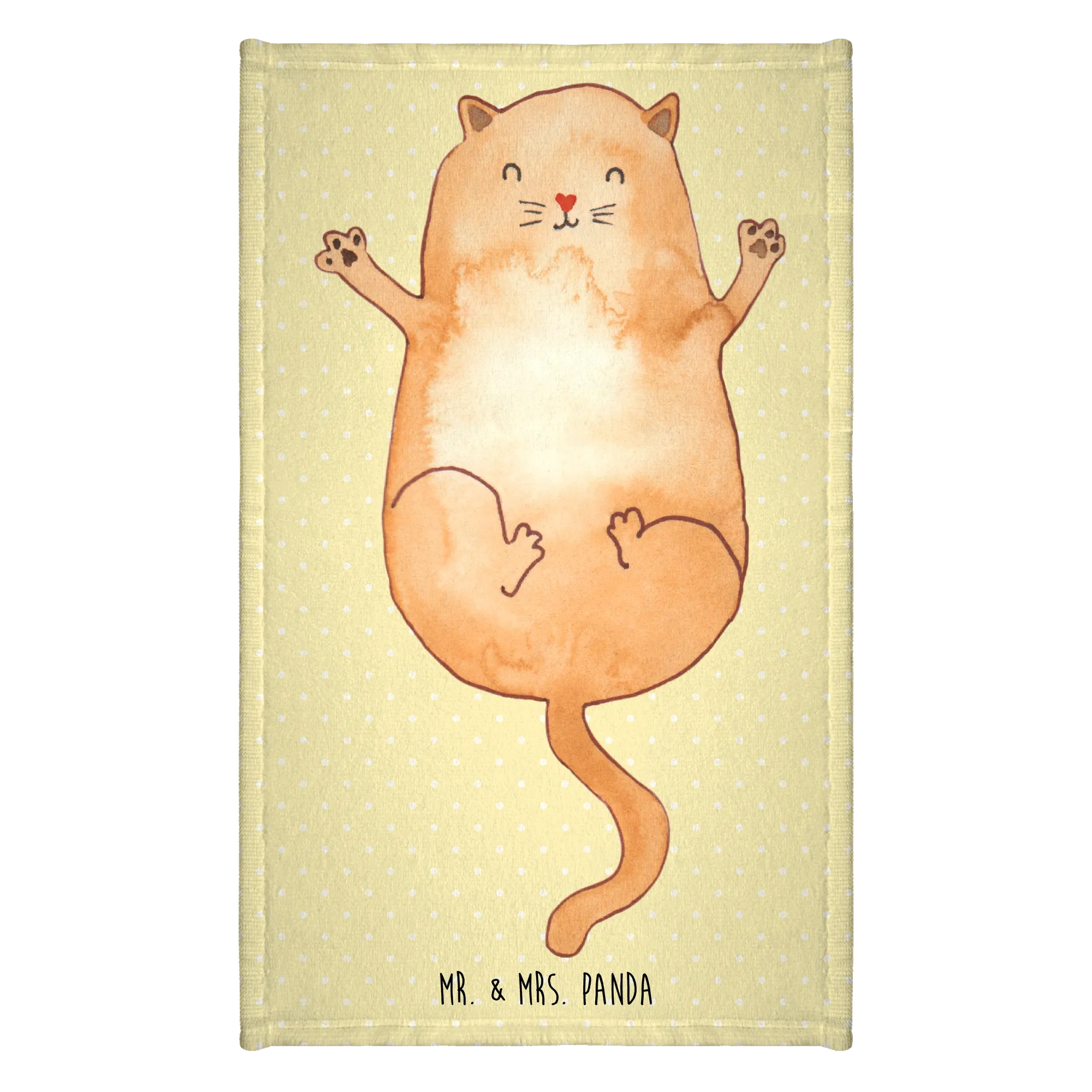 Verliebe dich in dieses fröhliche, bunt bedruckte Handtuch mit dem zuckersüßen Katzenmotiv. Eine auf dem Rücken liegende Katze breitet freudig ihre Pfoten aus und zaubert jedem Katzenfan ein Lächeln ins Gesicht. Perfekt als Wellness Handtuch, Gästehandtuch oder treuer Begleiter für Sport und Reise.
