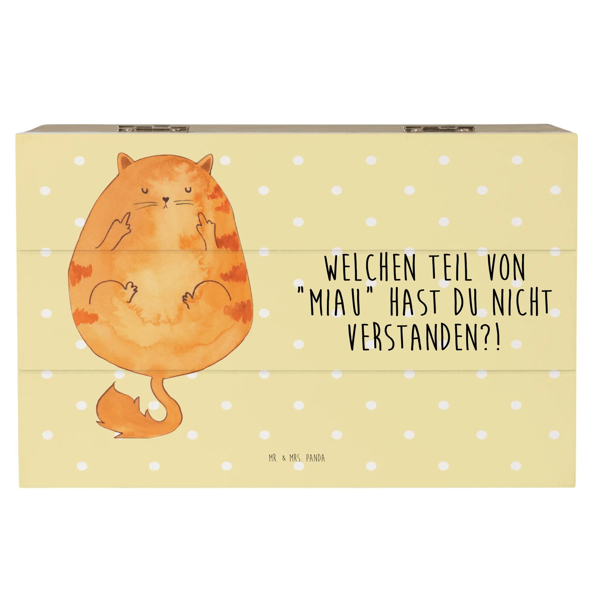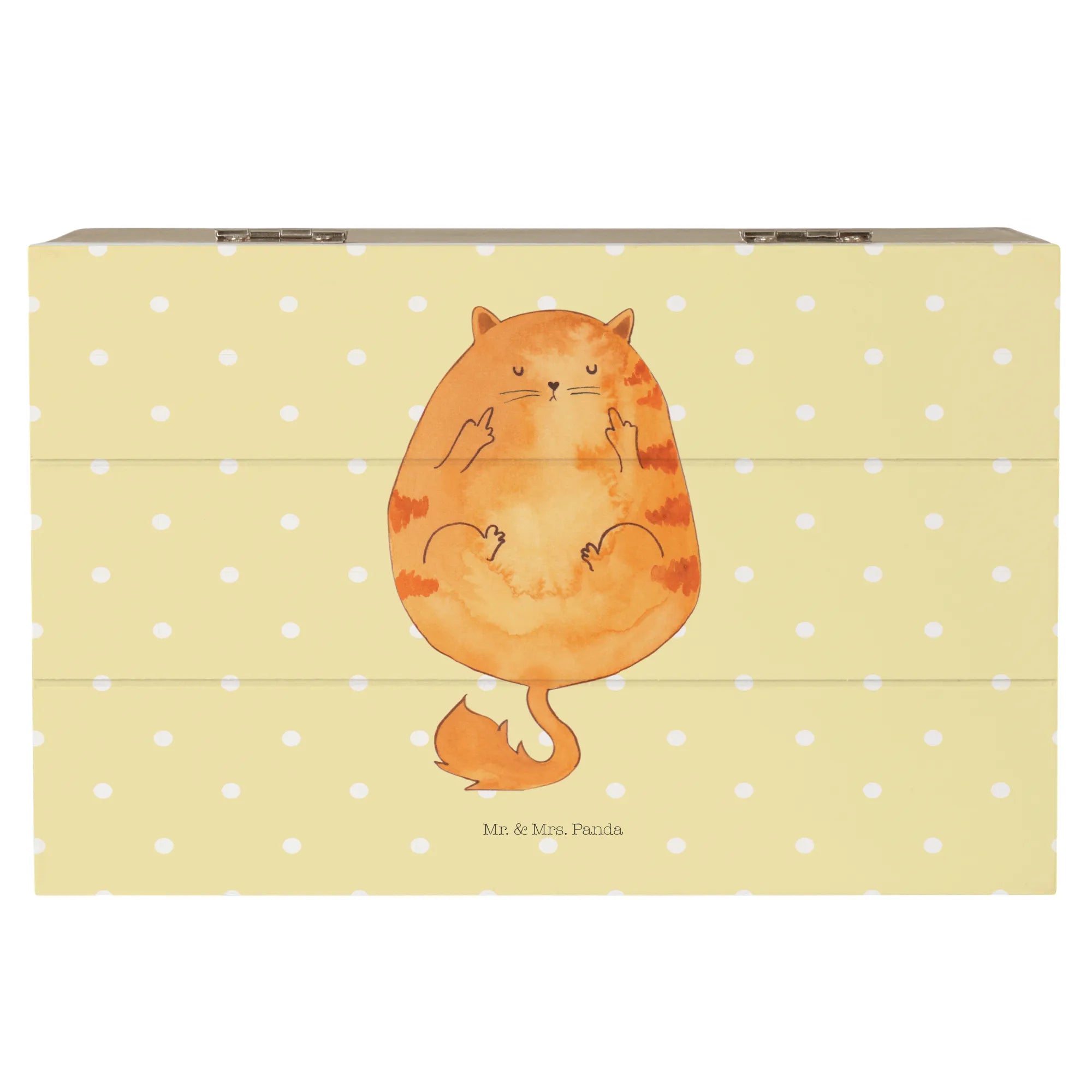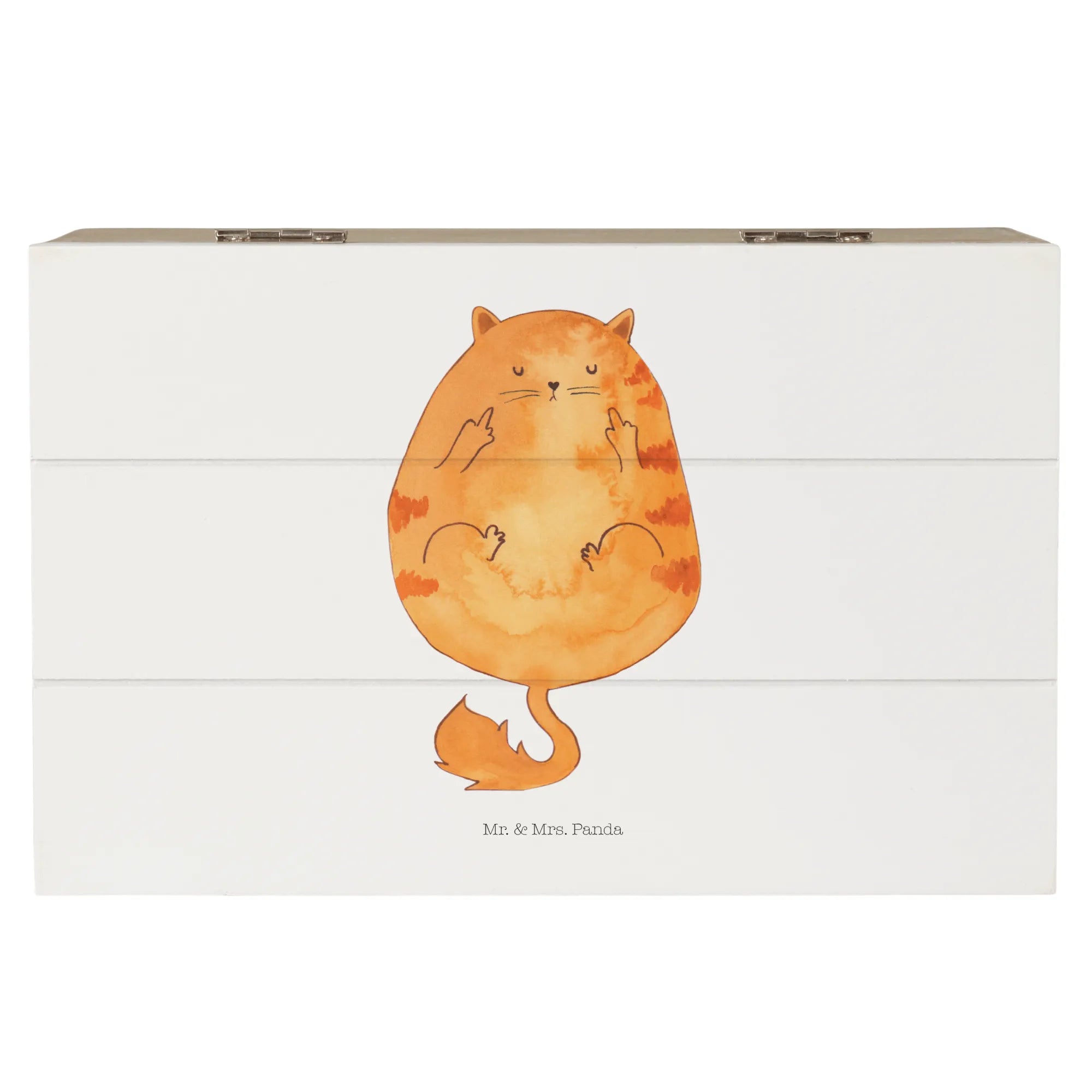 Die wunderschöne Holzkiste mit dem Motiv 'Katze Mittelfinger' aus der einzigartigen Katzen-Kollektion von Mr. & Mrs. Panda ist das perfekte Geschenk für alle Katzenliebhaber und -freunde! Sie ist nicht nur ein echter Hingucker, sondern auch unglaublich praktisch.