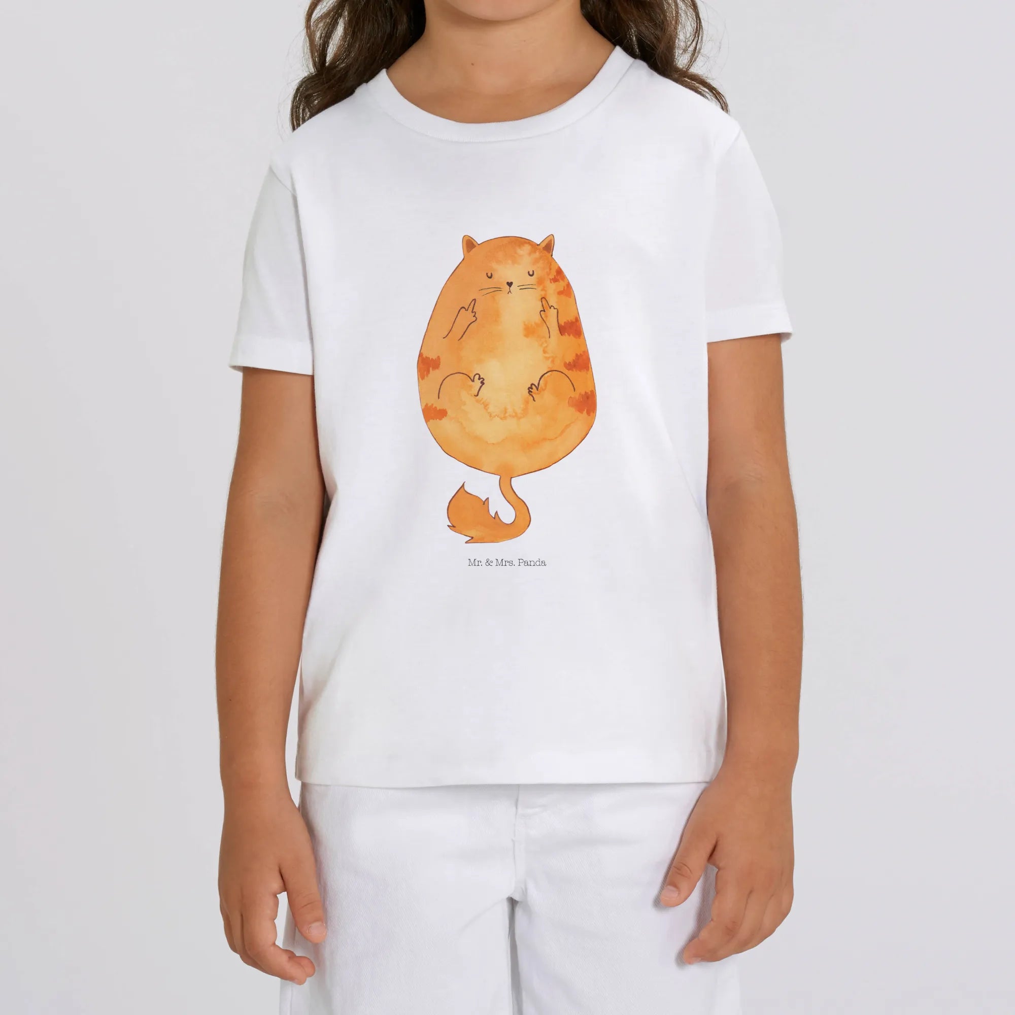 Das frisch bedruckte Organic Kinder T-Shirt Katze Mittelfinger aus der fantastischen Katzen - Kollektion von Mr. & Mrs. Panda ist das perfekte Geschenk für kleine Katzenfans! Hergestellt aus 100% Bio-Baumwolle, ist dieses T-Shirt nicht nur stylish, sondern auch super bequem und hautfreundlich.