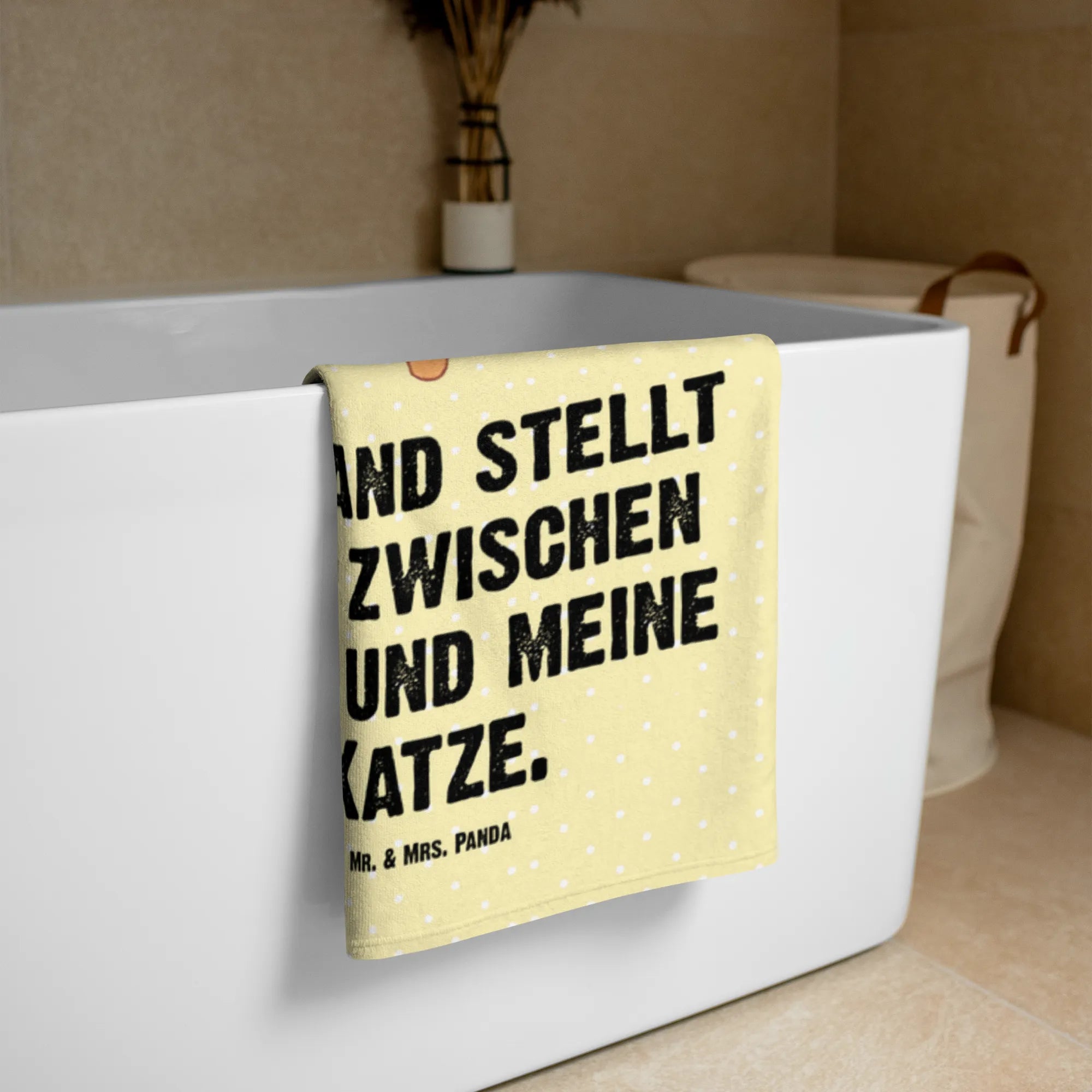 Es verspricht, dich mit seiner weichen Textur und dem freundlichen Design zu verwöhnen. Der liebevolle Slogan "Niemand stellt sich zwischen mich und meine Katze" spricht alle Katzenliebhaber an und macht es zu einem idealen Geschenk für Freunde, Familie oder für dich selbst. Goldige und handgezeichnete Katzenmotive entführen dich in die aufregende Welt von Mr. & Mrs. Panda.
