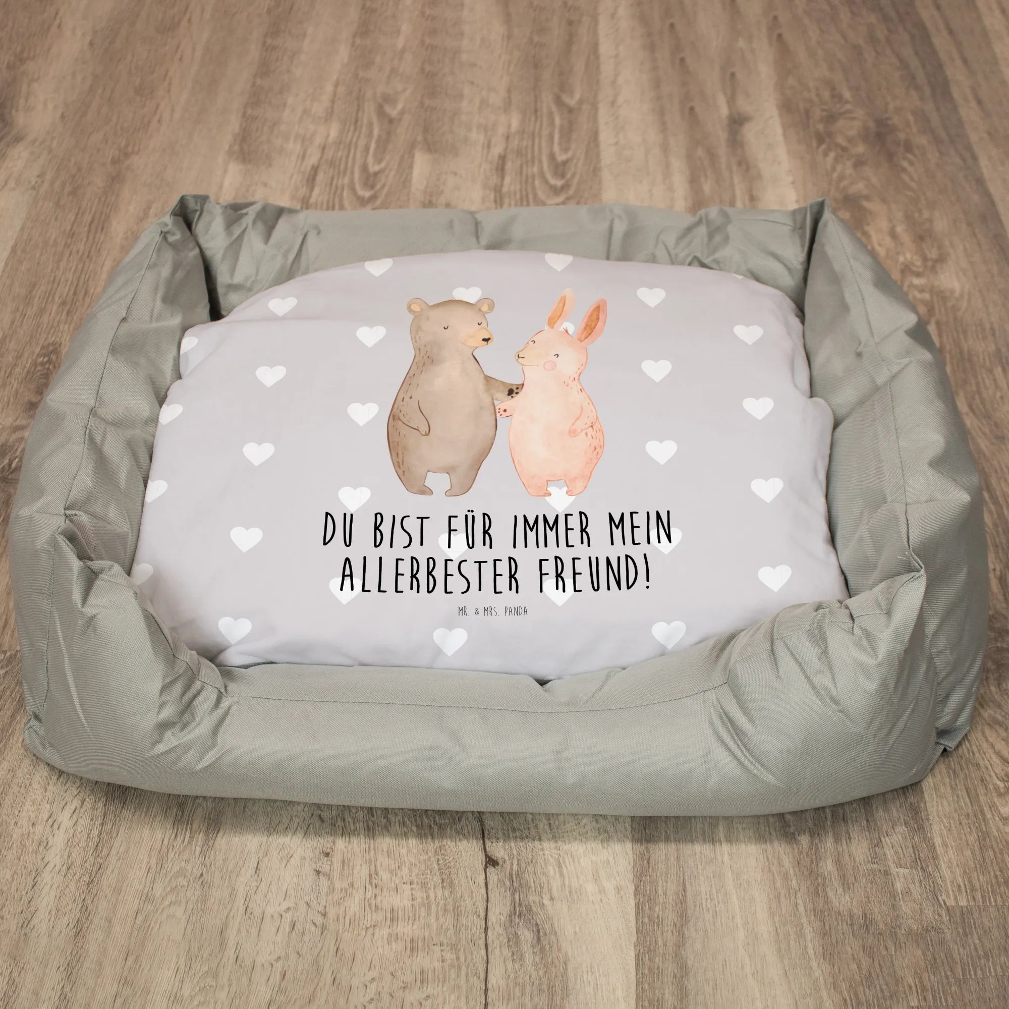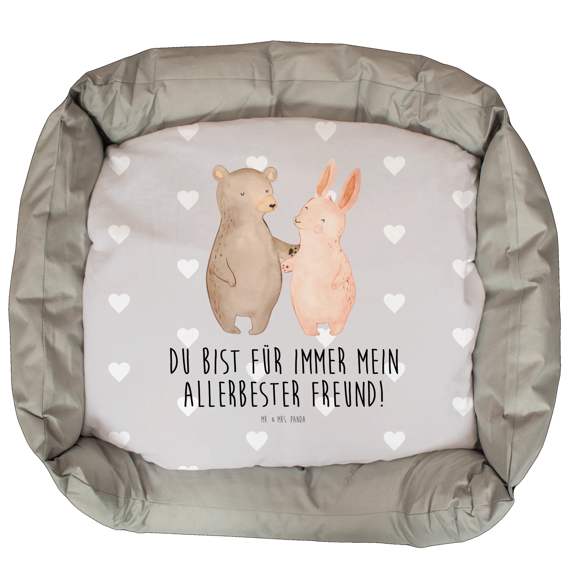 Das Katzenbett "Bär Hase Umarmen" aus der liebevollen Kollektion von Mr. & Mrs. Panda ist das perfekte Geschenk für alle Katzenliebhaber und ihre samtenen Freunde. Mit dem süßen Motiv, das einen Bären zeigt, der einen Hasen umarmt, bringt dieses Katzenbett nicht nur einen Hauch von Wärme in jedes Zuhause, sondern bietet auch Deiner Katze einen komfortablen Rückzugsort.