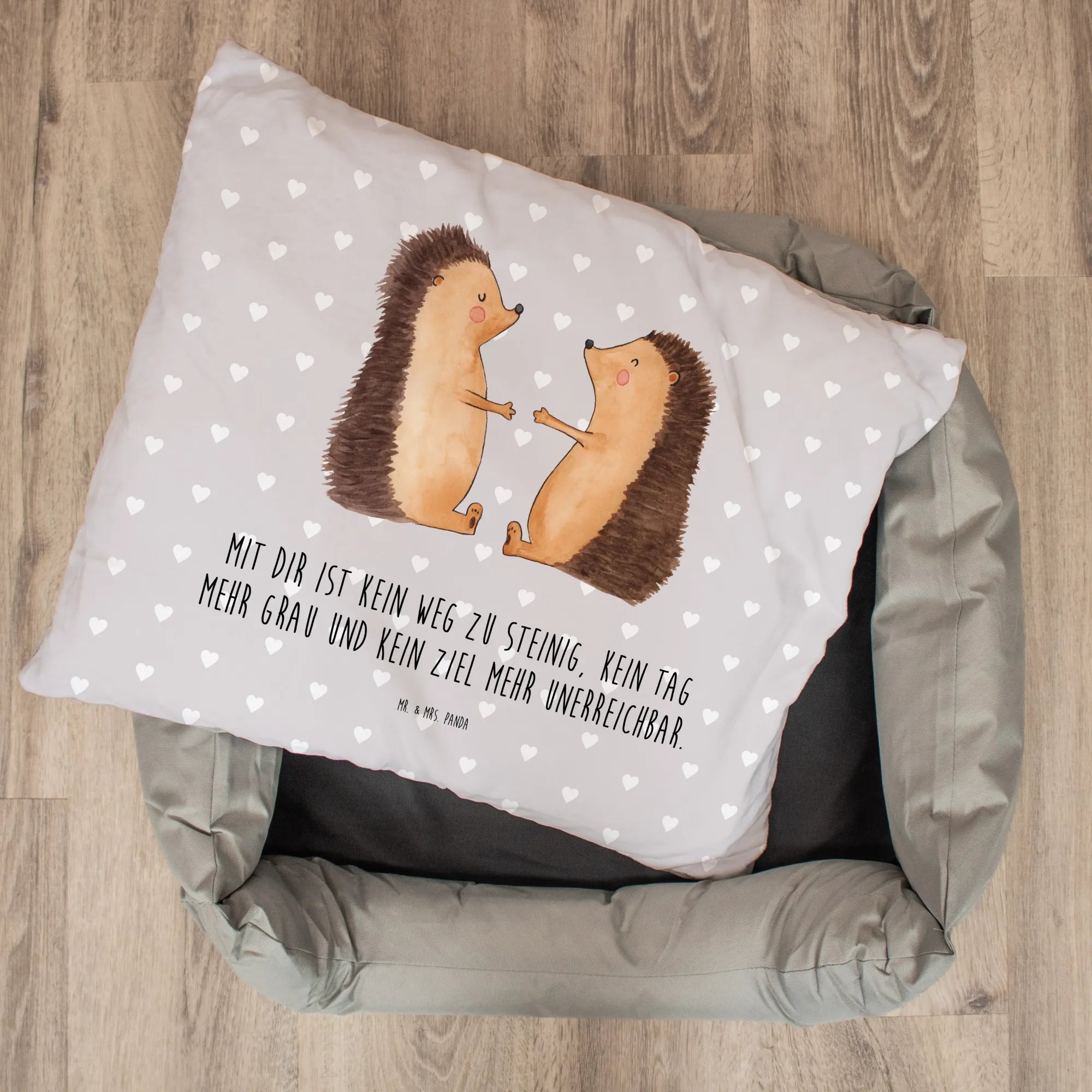 Das Katzenbett Igel Liebe aus der Kollektion Liebe von Mr. & Mrs. Panda ist die perfekte Wahl für deinen kleinen Liebling. Mit einem charmanten Motiv von verliebten Igeln, die sich zärtlich gegenüberstehen, verkörpert dieses Katzenbett nicht nur Stil, sondern auch das Gefühl von Geborgenheit und Zuneigung. Der Slogan "Mit dir ist kein Weg zu steinig, kein Tag mehr grau und kein Ziel mehr unerreichbar" unterstreicht die Botschaft dieser liebevollen Kollektion.