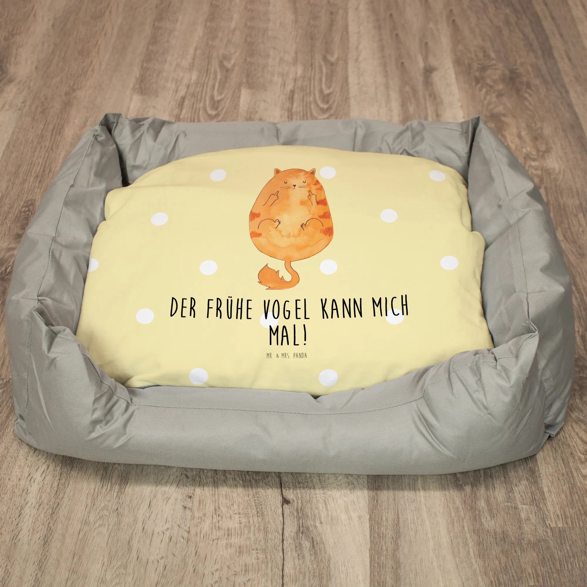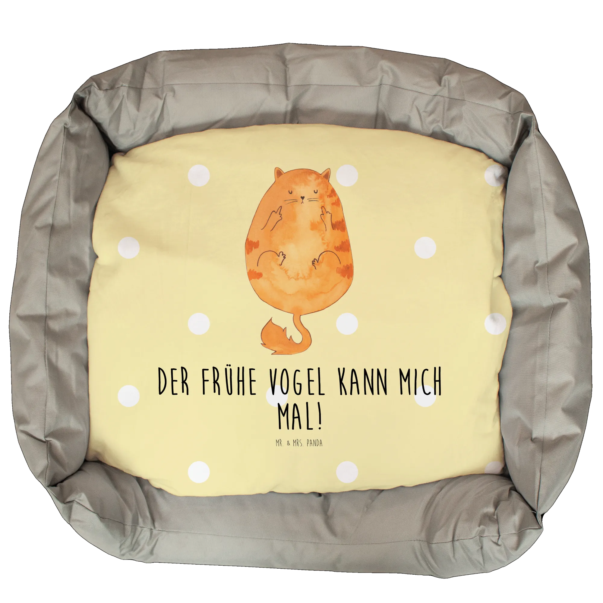 Entdecke das perfekte Katzenbett für deine kleine Mietze, ganz im Zeichen des Spruchs: "Der frühe Vogel kann mich mal!" Unser wunderschönes und kuscheliges Katzenbett von Mr. & Mrs. Panda ist ein wahrer Rückzugsort für jeden Katzenfreund.