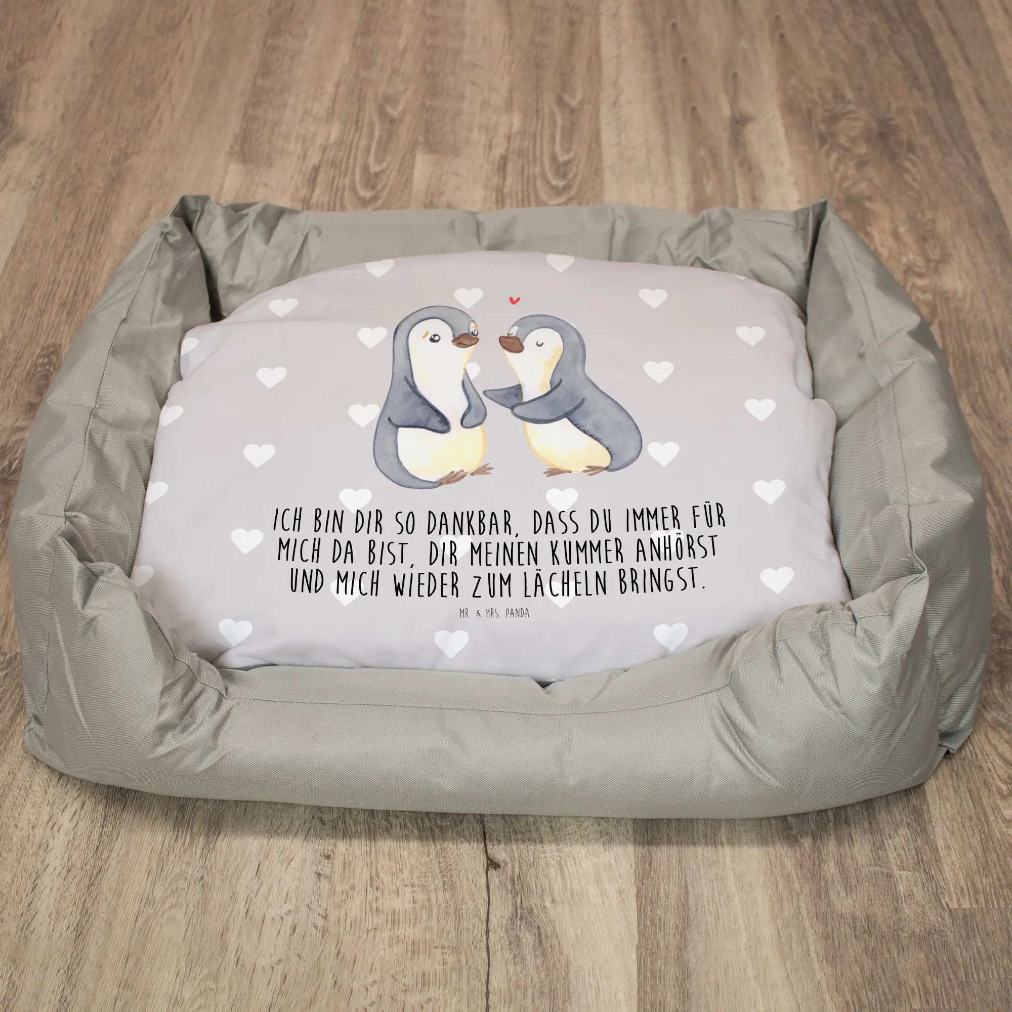 Das Katzenbett "Pinguine trösten" von Mr. & Mrs. Panda ist das perfekte Geschenk für alle Katzenliebhaber. Mit seinem liebevollen Design, das zwei zärtlich zueinander neigende Pinguine zeigt, bringt es nicht nur Freude in dein Zuhause, sondern auch Trost und Geborgenheit für deine kleine Samtpfote.