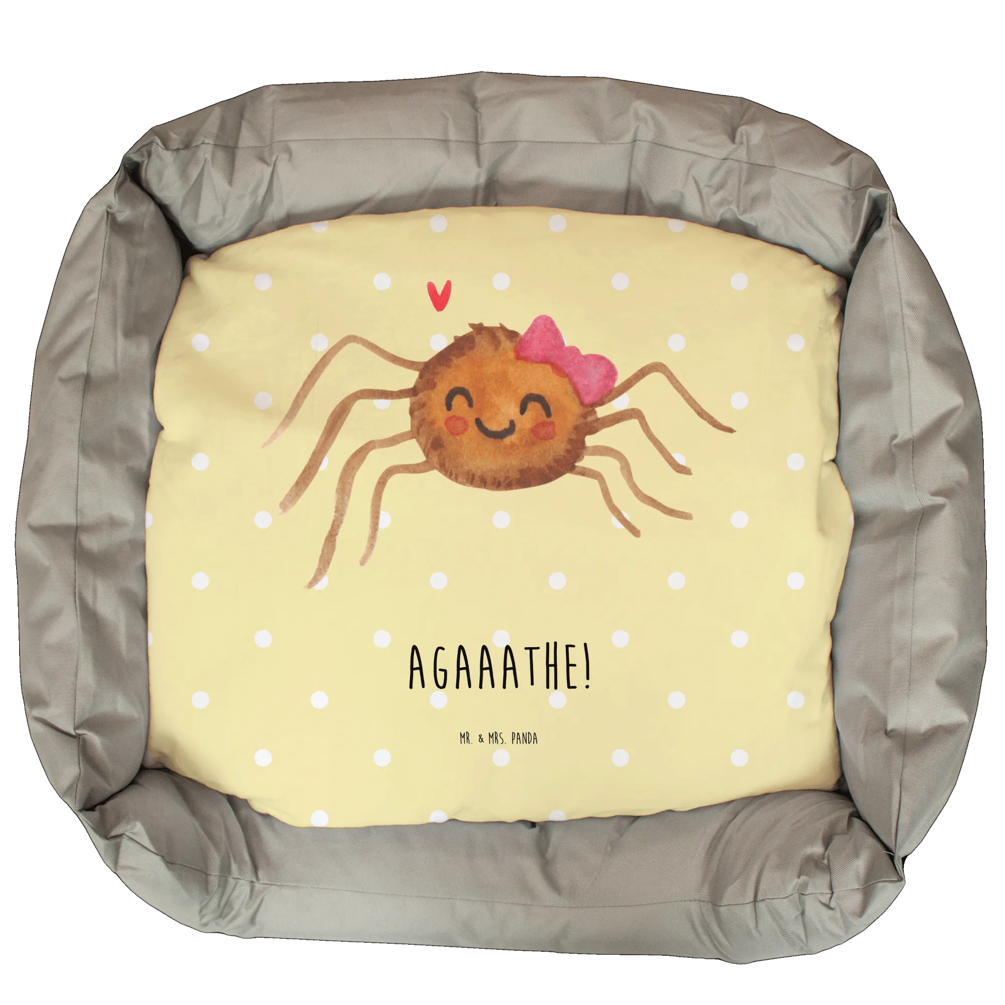 Mit dem zauberhaften Motiv der Spinne Agathe, die von Mrs. Panda liebevoll handgezeichnet wurde, bringt es Freude und Farbe in Dein Zuhause. Die Spinne Agathe lächelt Dich mit ihrem kleinen Schleifchen und dem Herzchen neben sich an und sorgt damit für eine fröhliche Atmosphäre. Dieses Katzenbett bietet deiner Katze den ultimativen Rückzugsort zum Entspannen und Schlafen.