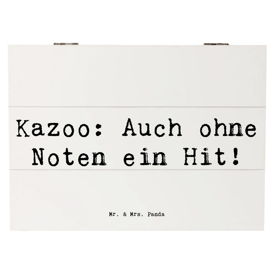 Denn mit dem Spruch 'Kazoo: Auch ohne Noten ein Hit!' wird jeder, der diese Kiste öffnet, sofort an die fröhlichen Klänge und die unbeschwerte Zeit erinnert, die er mit seinen Musikinstrumenten verbringen kann. Die Holzkiste ist das ideale Geschenk für Musiker, Musikliebhaber und alle, die die Freude an der Musik teilen möchten.