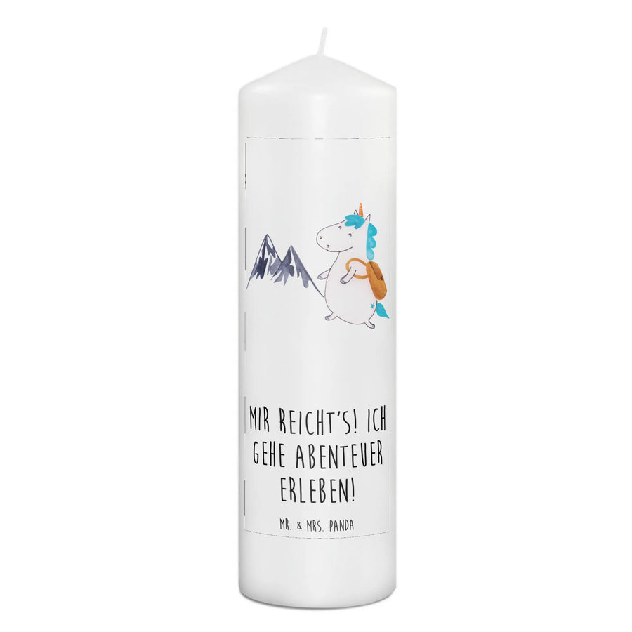 Das niedliche Einhorn, das mit seinem Rucksack auf Abenteuerreise geht, weckt den Entdeckergeist in jedem Herzen. Der hübsche Spruch 'Mir reicht's! Ich gehe Abenteuer erleben!' unterstreicht den Abenteurer in uns und macht die Kerze zu einem unverwechselbaren Geschenk.