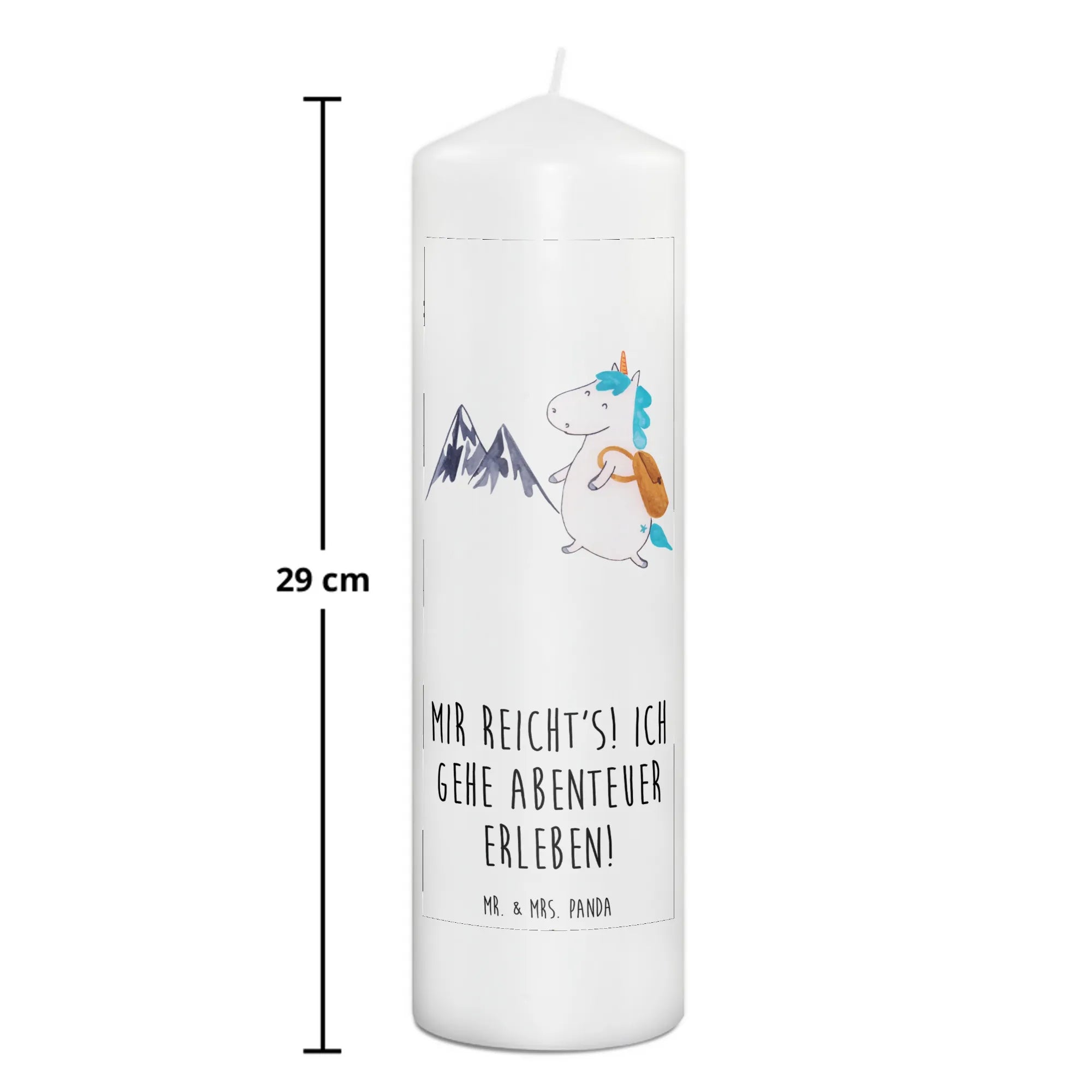 Diese edle Kerze ist nicht nur ein wunderschönes Wohnaccessoire, sondern auch ein perfektes Geschenk für jeden Anlass, sei es Geburtstag, Taufe oder Kommunion. Sie wurde mit viel Liebe und Hingabe gestaltet, sodass das niedliche Einhorn mit seinem Rucksack, das in die Berge wandert, Dein Herz im Sturm erobern wird. Der Spruch "Mir reicht's! Ich gehe Abenteuer erleben!" gibt der Kerze noch den letzten Schliff und sorgt dafür, dass beim Anzünden sofort gute Laune aufkommt.