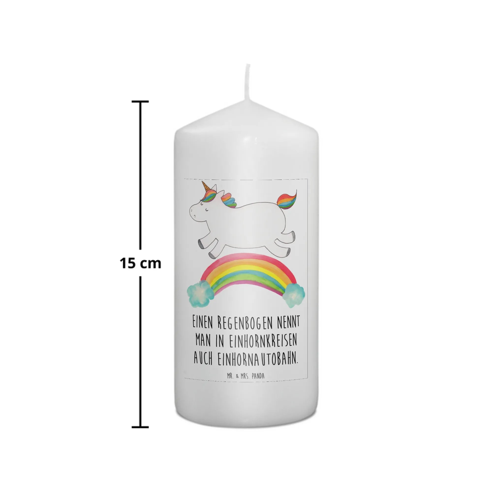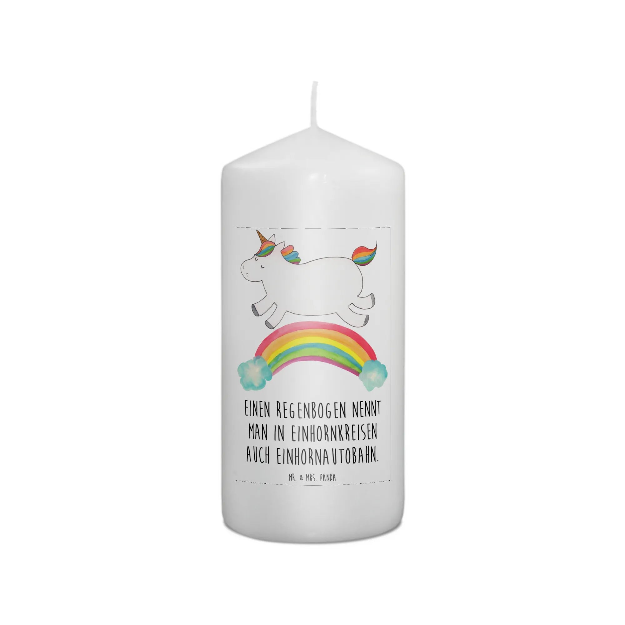 Die zauberhafte Einhorn Kerze von Mr. & Mrs. Panda ist das perfekte Geschenk für liebevoll Kinder, die die magische Welt der Einhörner lieben! Ob als Taufkerze, Kommunionskerze oder einfach nur für einen unvergesslichen Geburtstag, diese besondere Kerze bringt Freude und Farbe in jeden Raum. Mit ihrem fröhlichen Regenbogen-Motiv und dem liebevollen Spruch "Einen Regenbogen nennt man in Einhornkreisen auch Einhornautobahn", sorgt sie für ein Lächeln auf jedem Gesicht.